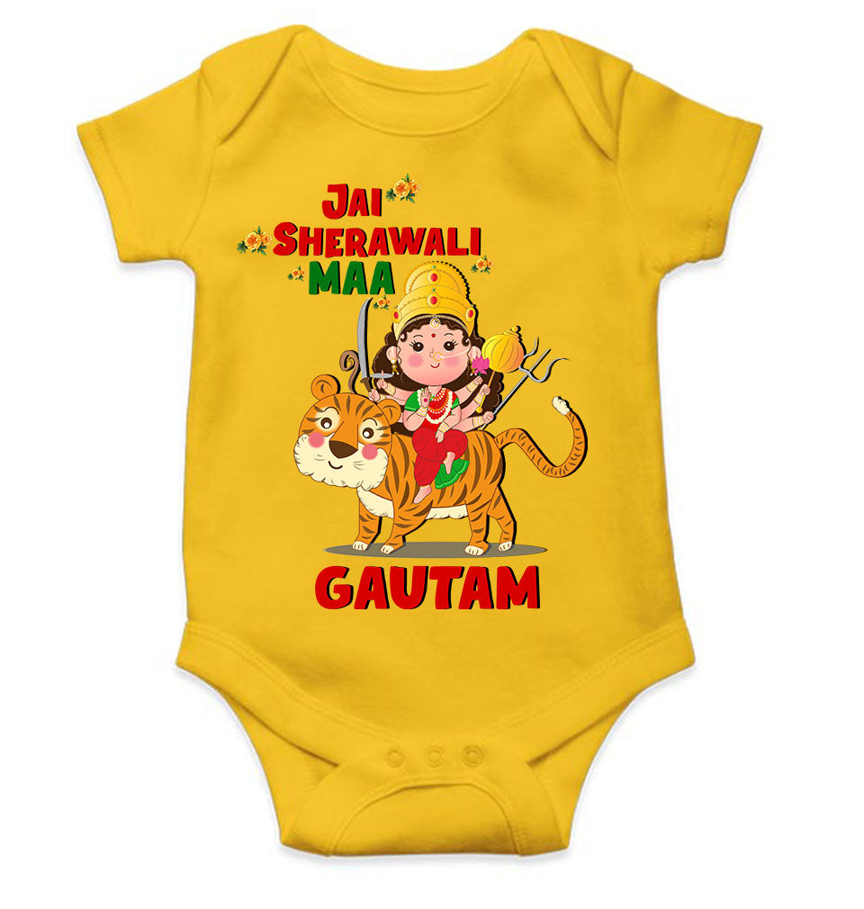 Custom Name Jai Sherawali Maa Navratri Rompers for Baby Boy- FashionRazor