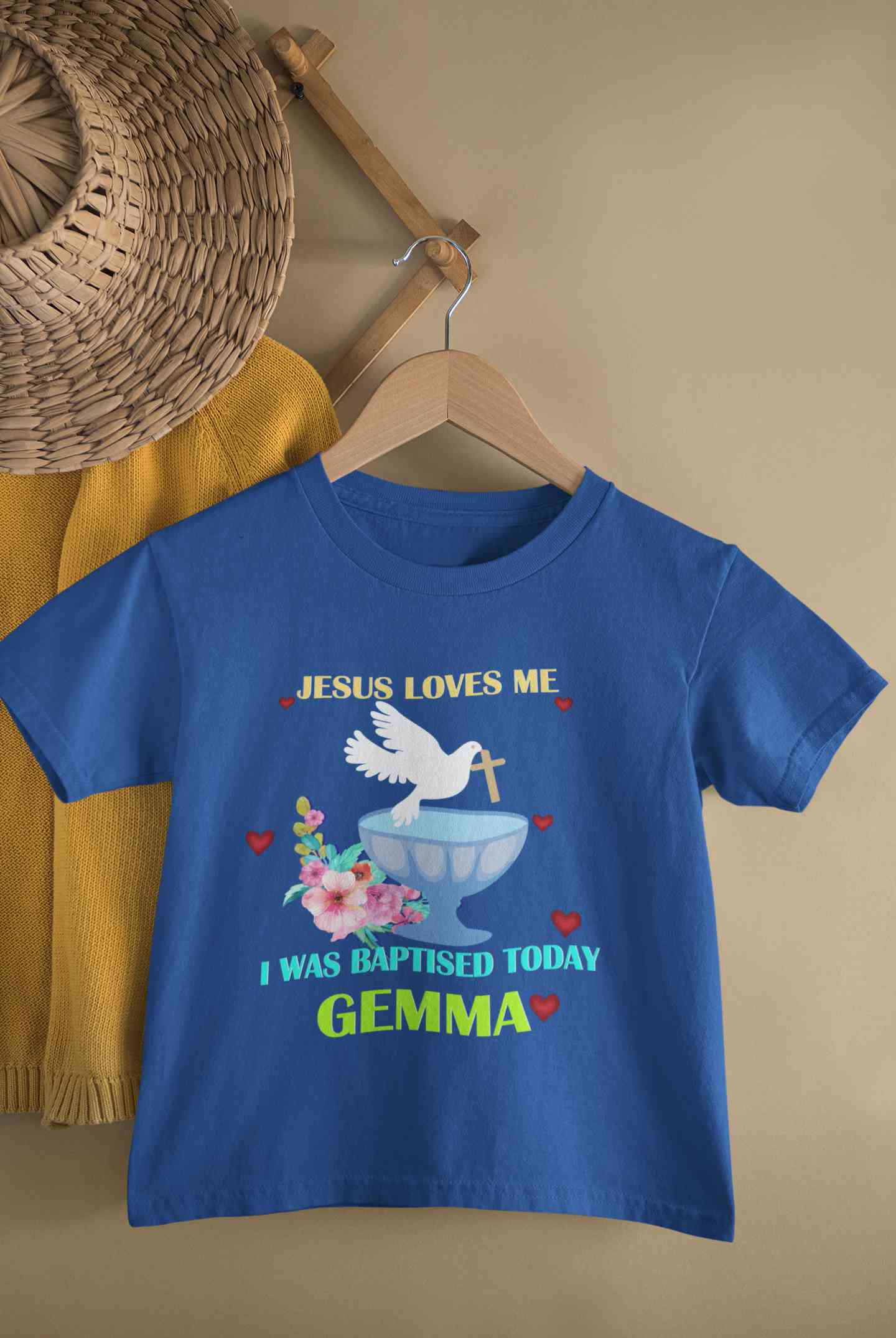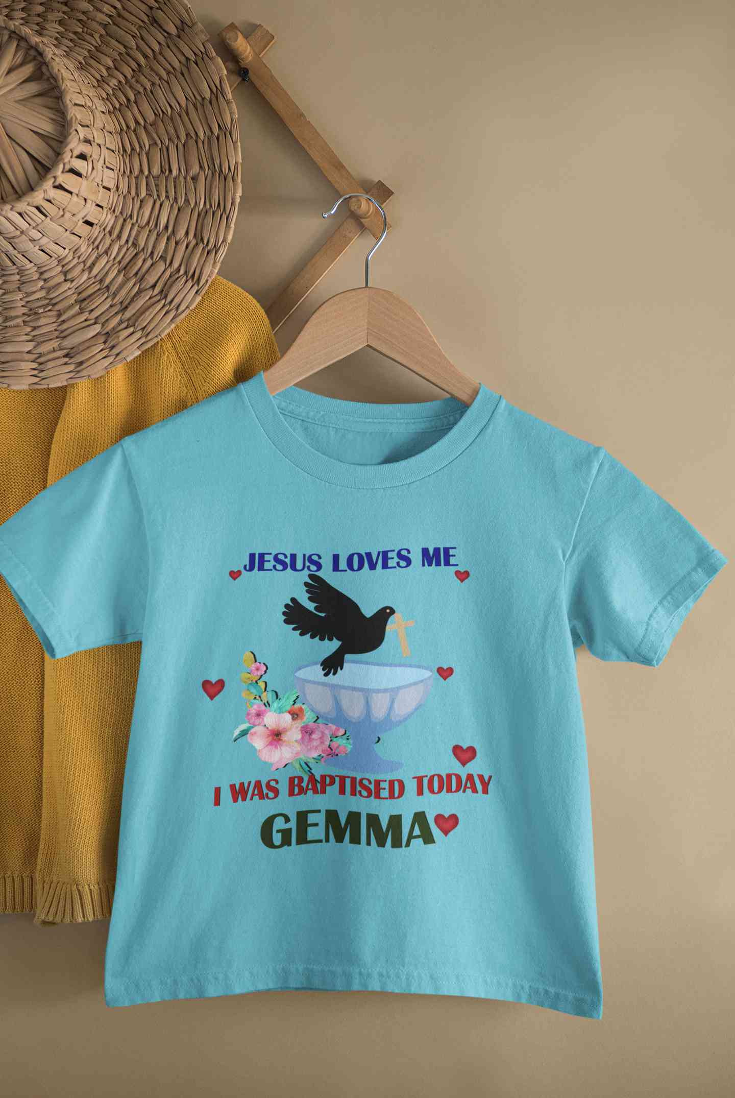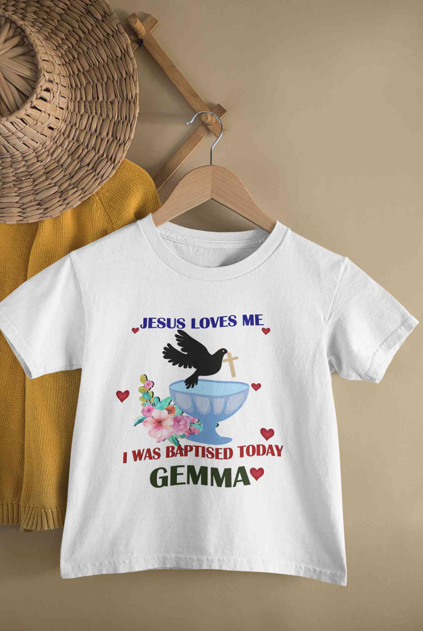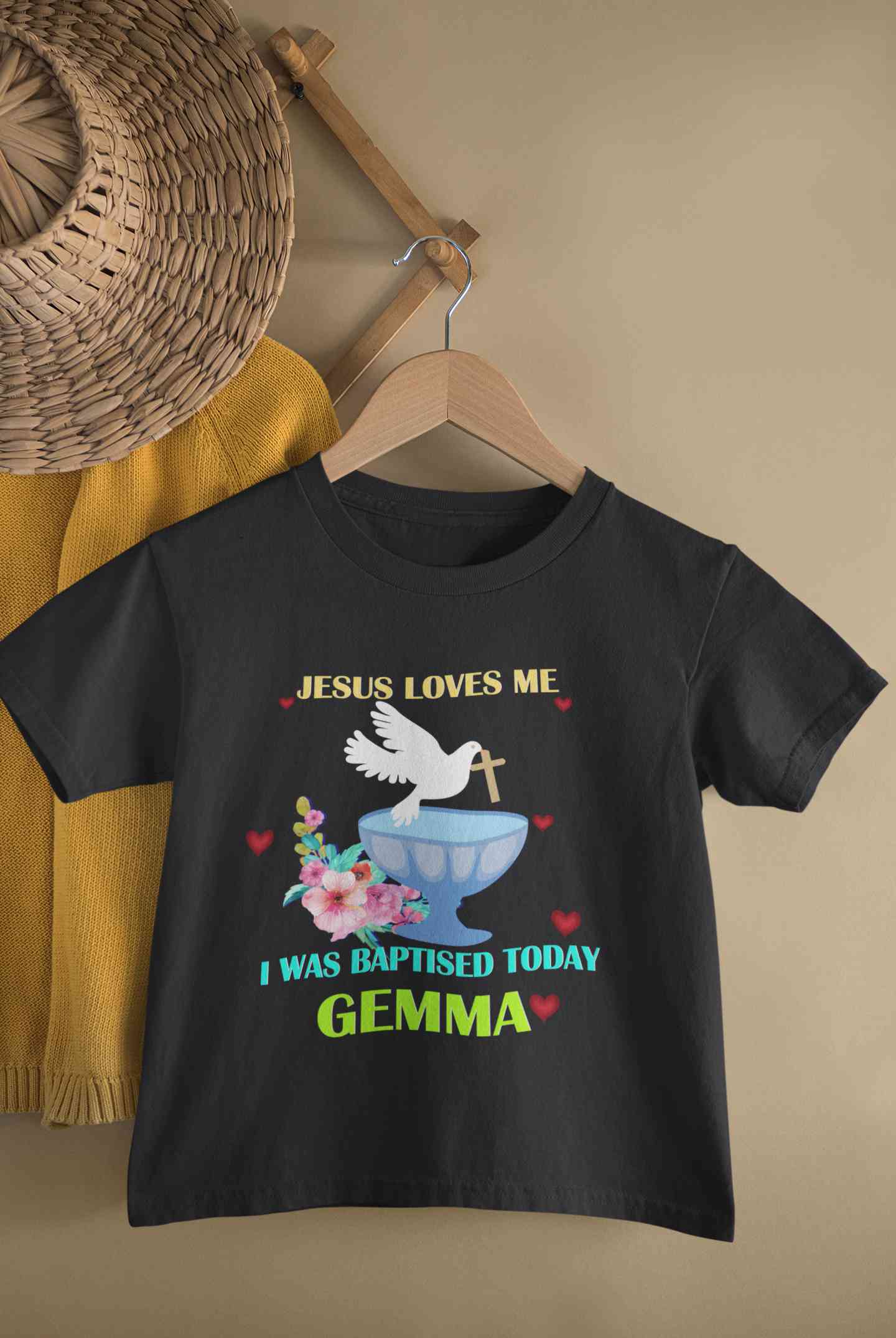 Custom Name Jesus Loves Me Baptism Christening Day Half Sleeves T-Shirt for Boy-FashionRazor