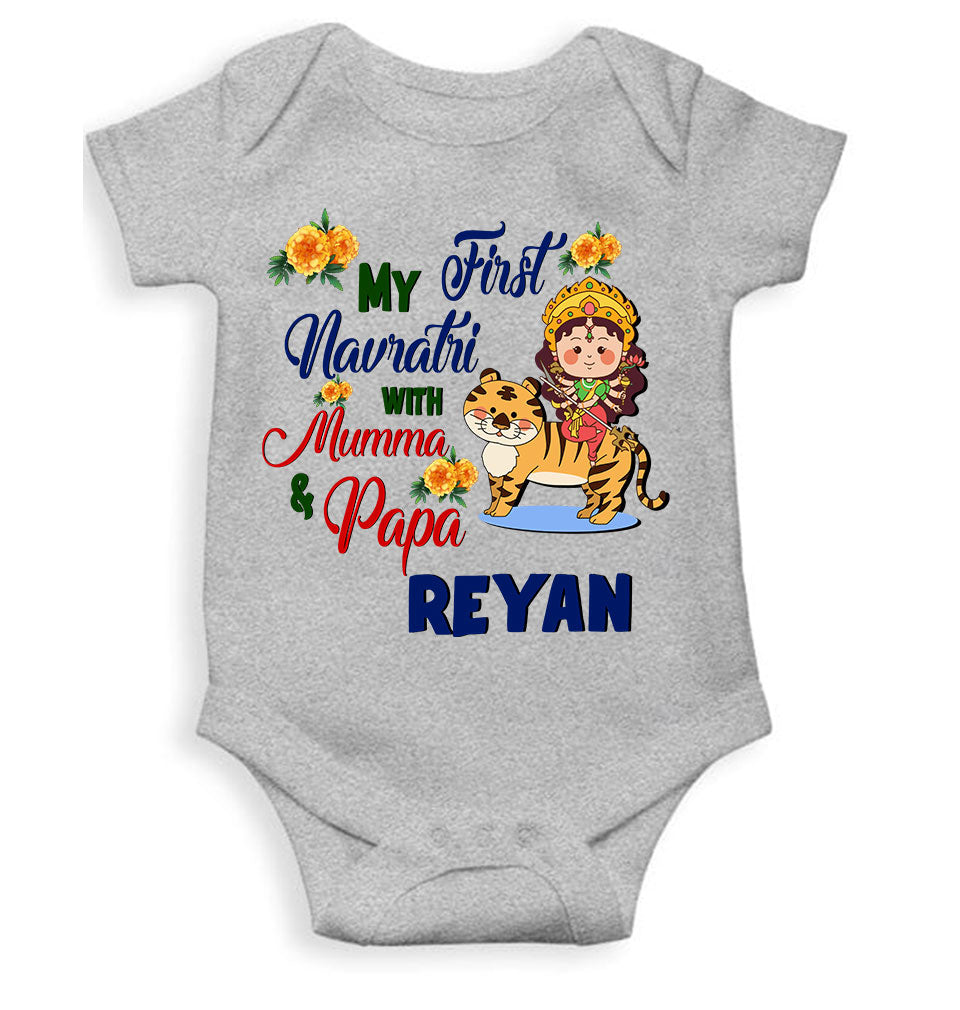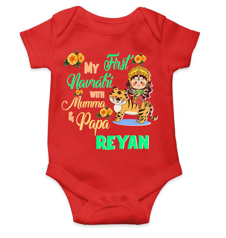 Custom Name My First Navratri With Mumma And Papa Rompers for Baby Boy- FashionRazor