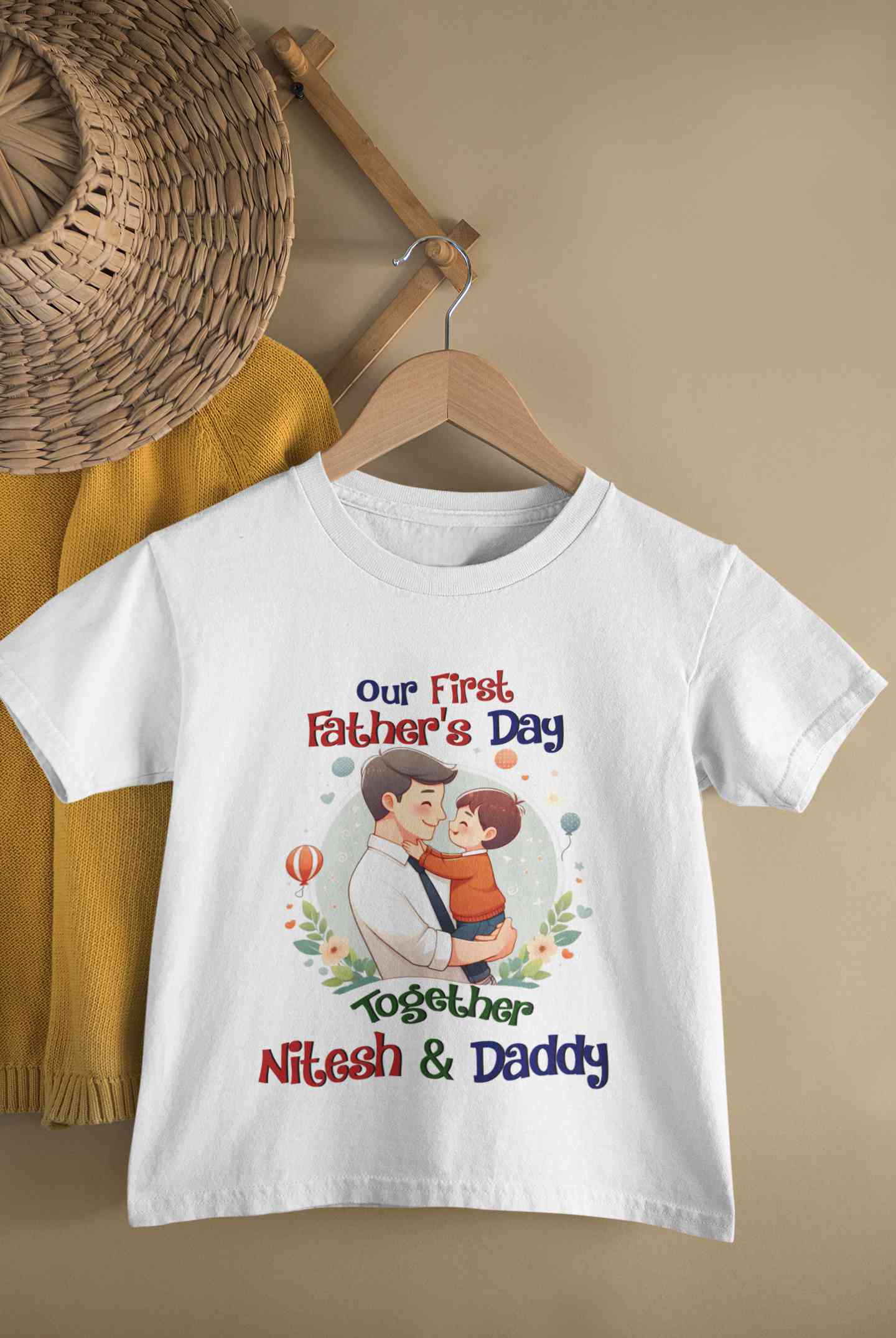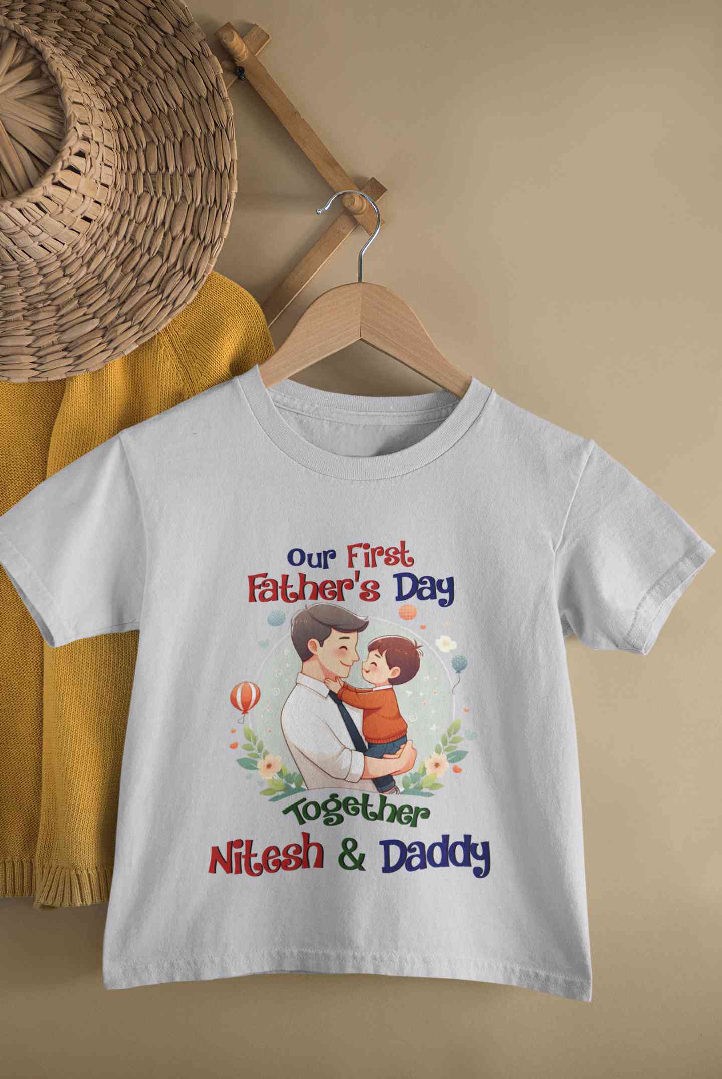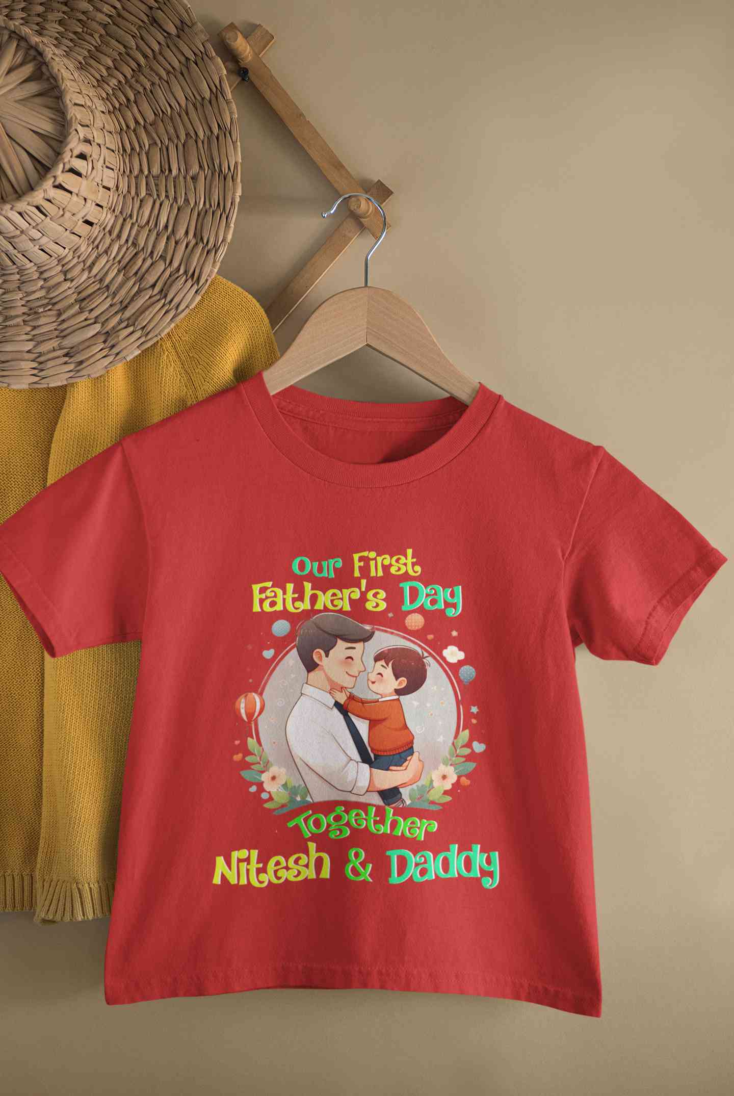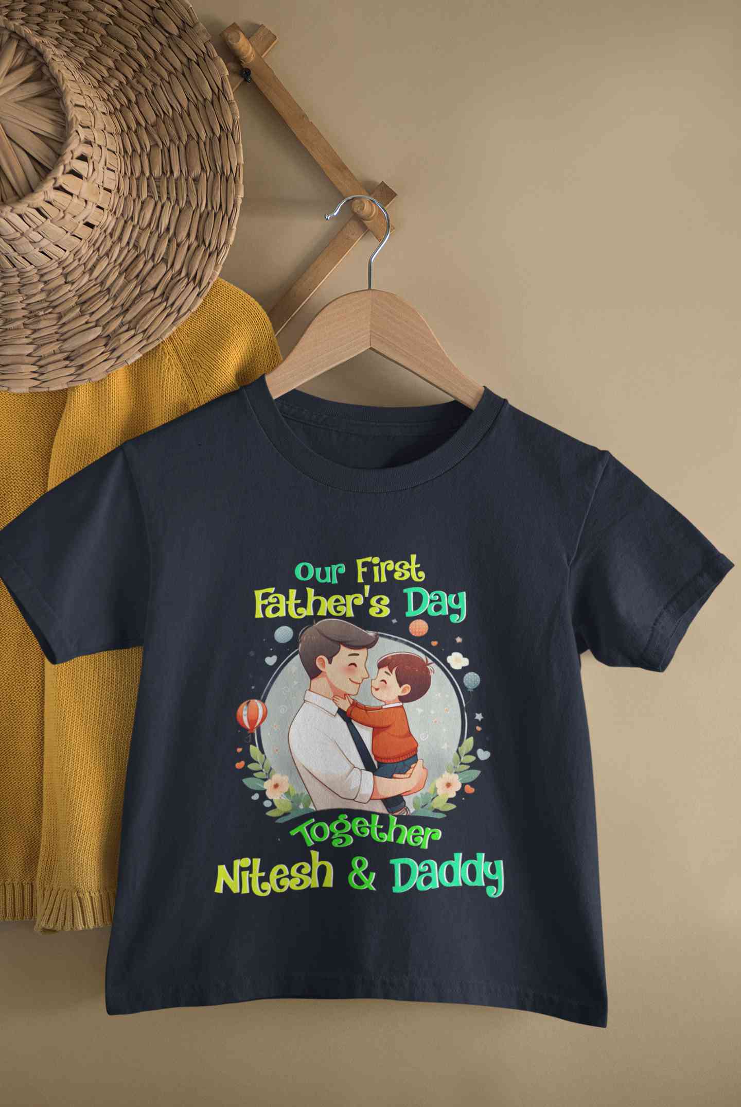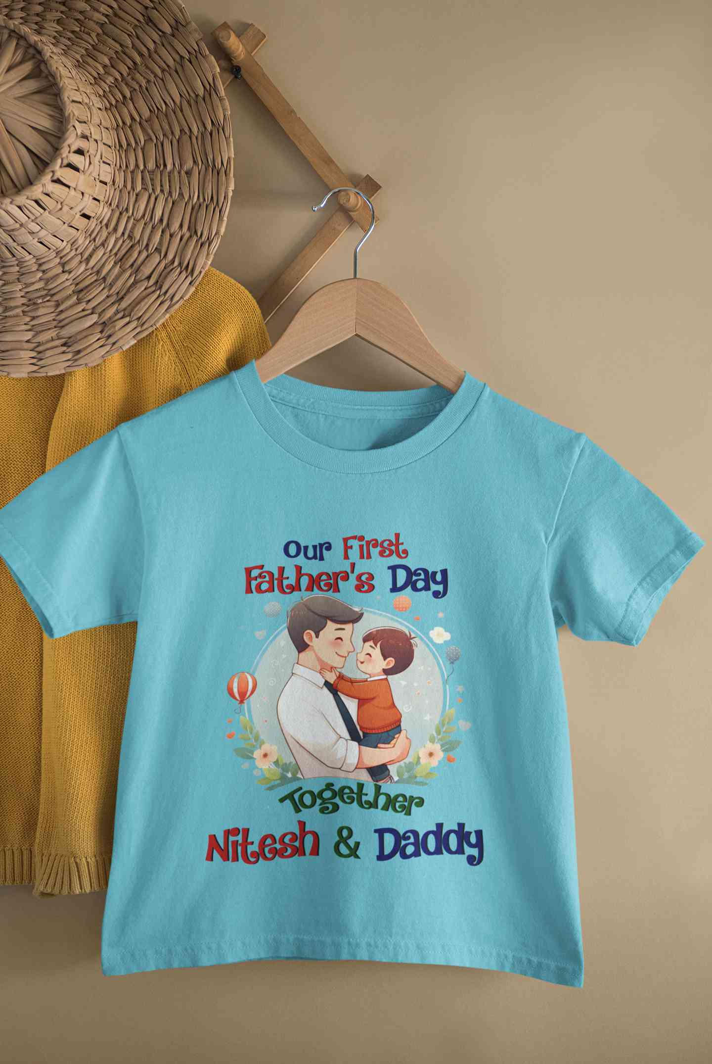 Custom Name Our First Father Day Half Sleeves T-Shirt for Boy-FashionRazor