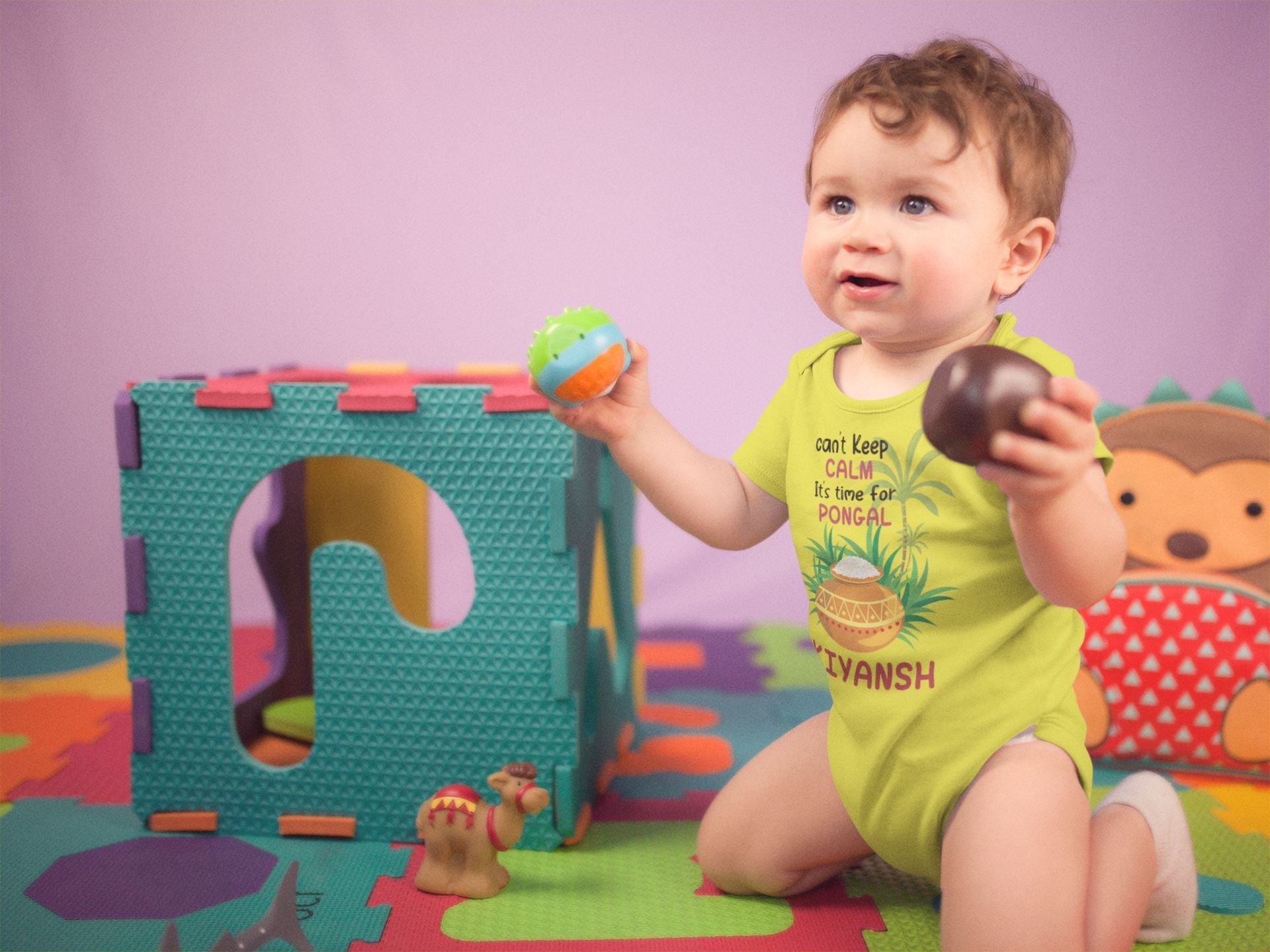 Custom Name Time For Pongal Makar Sankranti Rompers for Baby Boy- FashionRazor