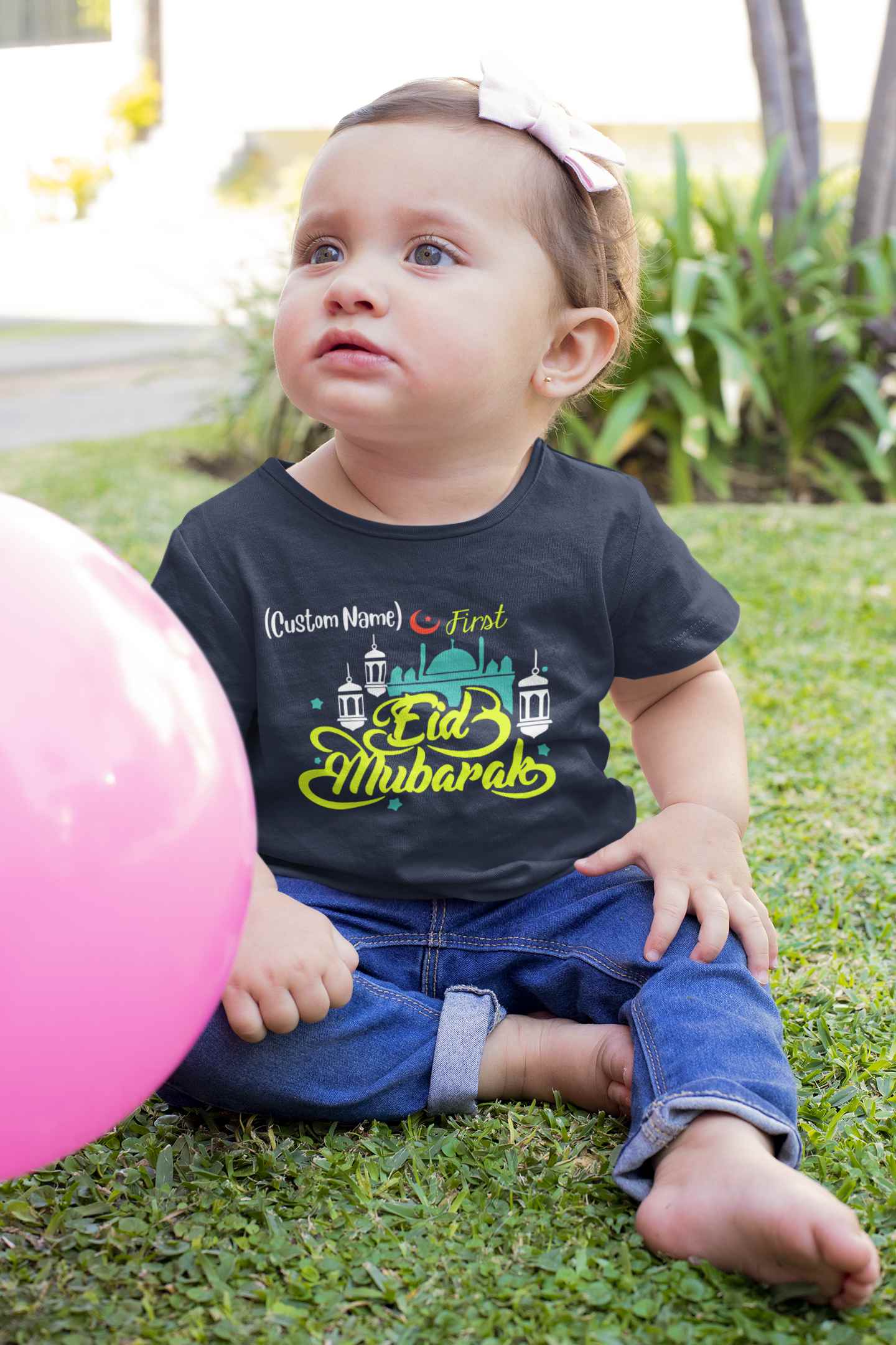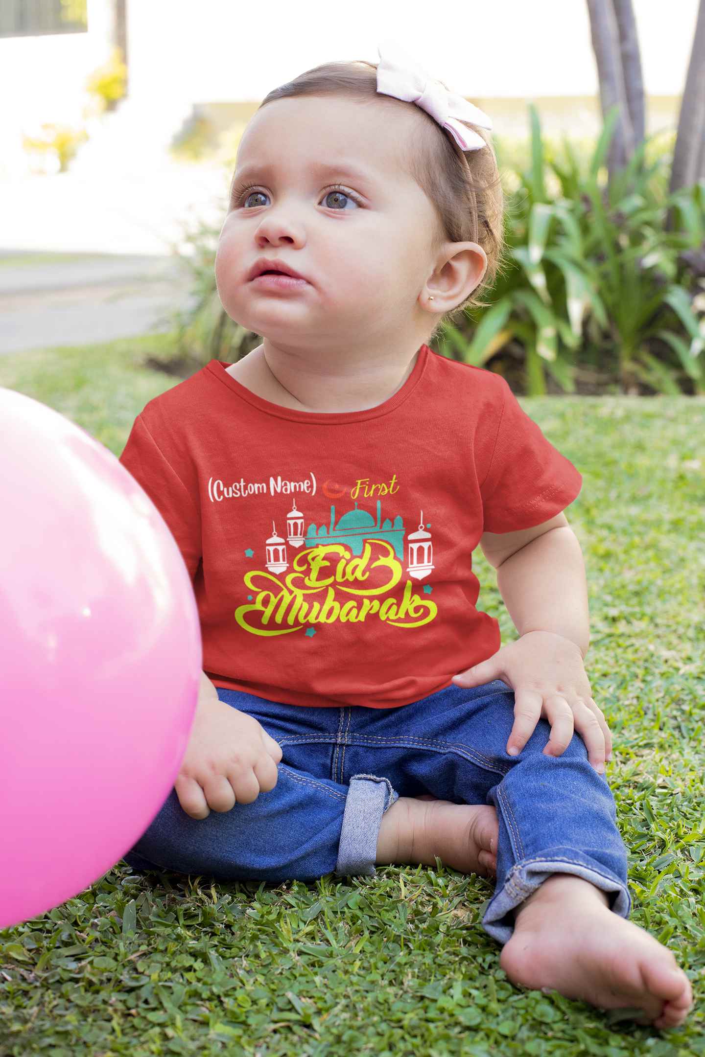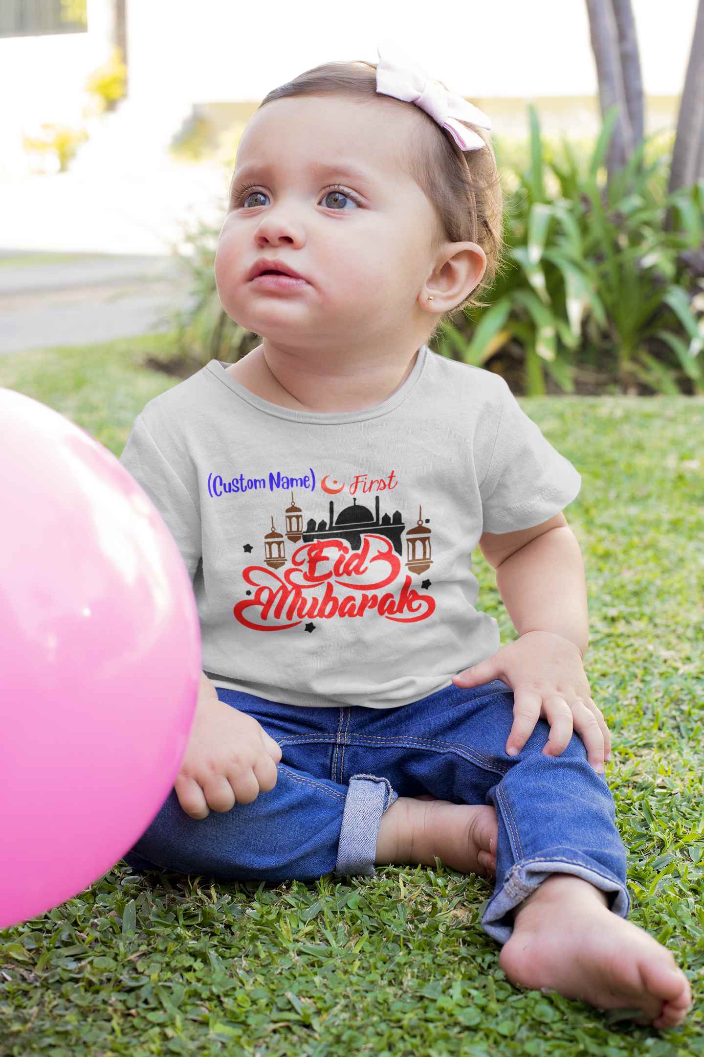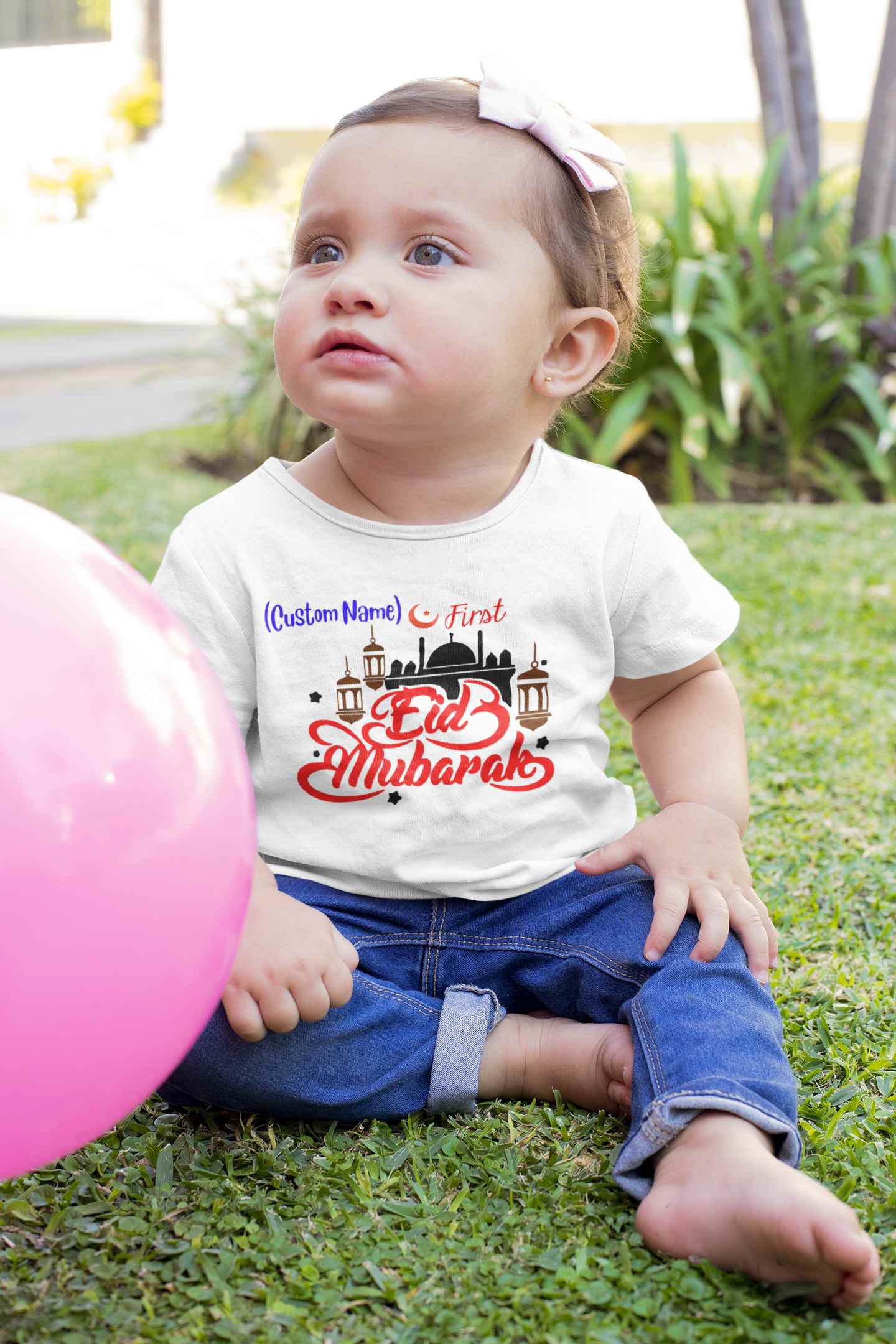 Customize Name First Eid Half Sleeves T-Shirt For Girls -FashionRazor