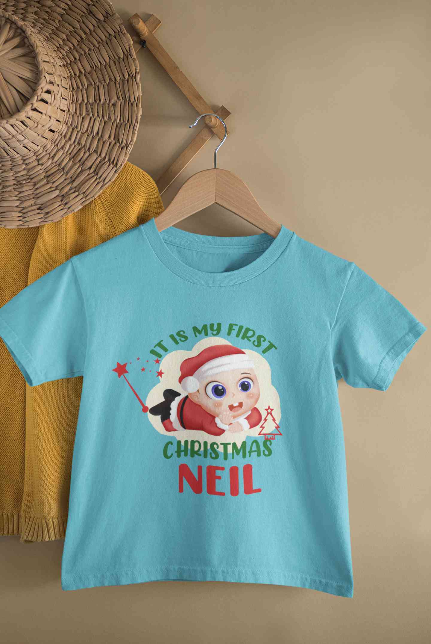 Buy Customized Name It Is My First Christmas Half Sleeves T-Shirt for Boy-FashionRazor