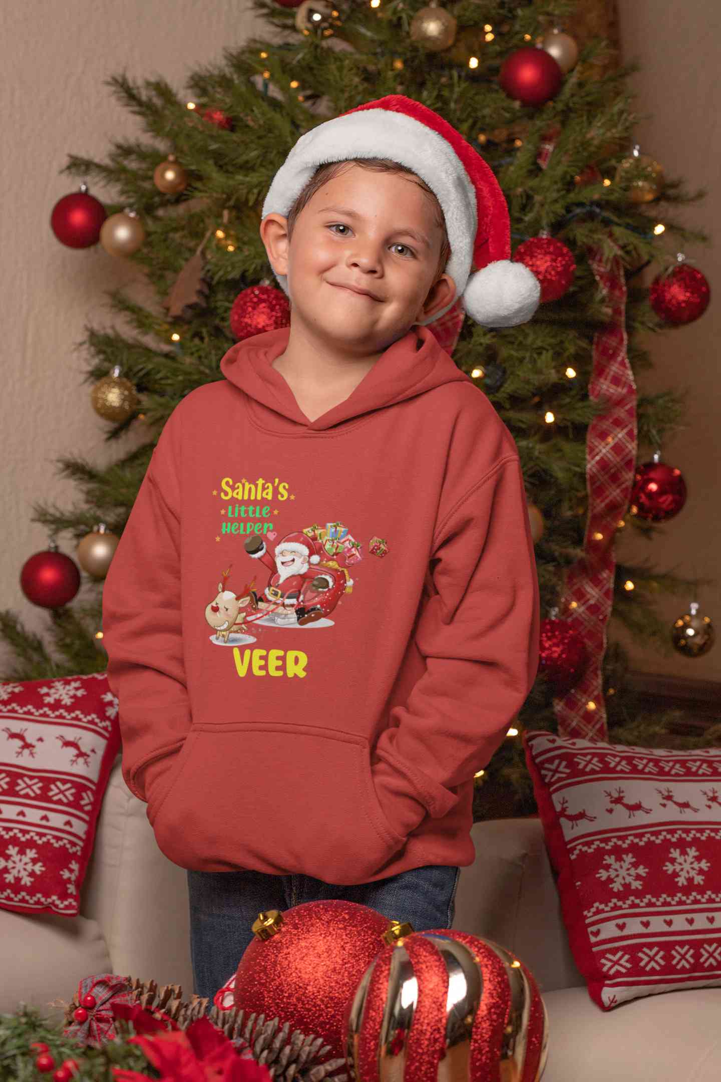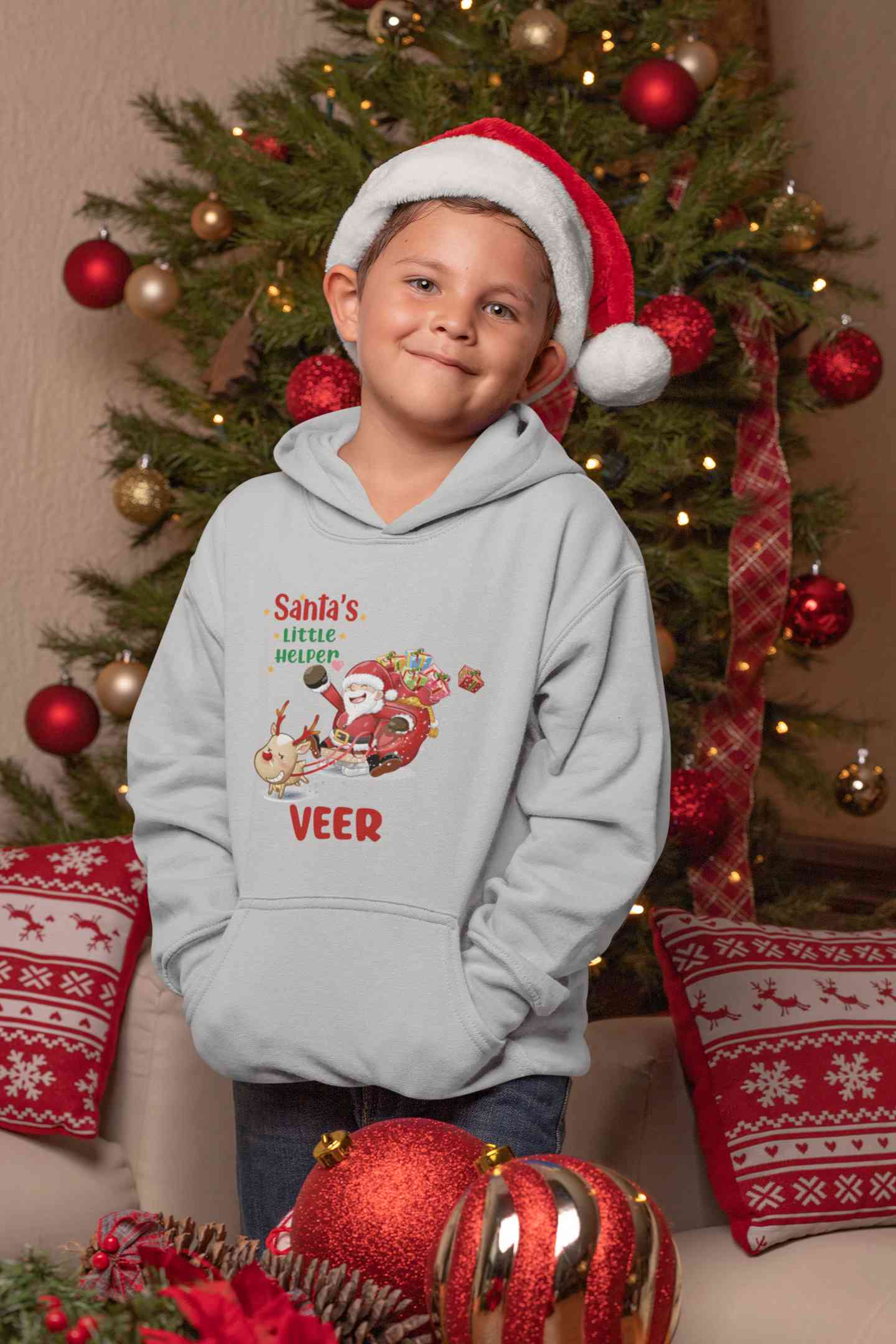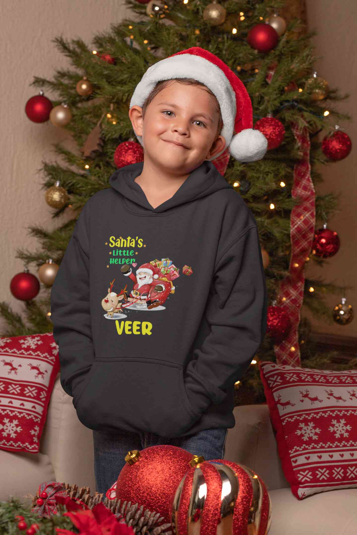 Customized Name Santas Little Helper Christmas Boy Hoodies-FashionRazor