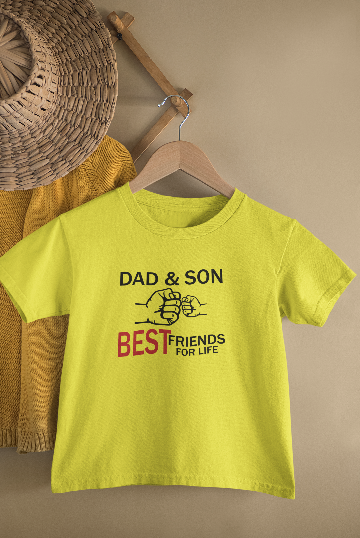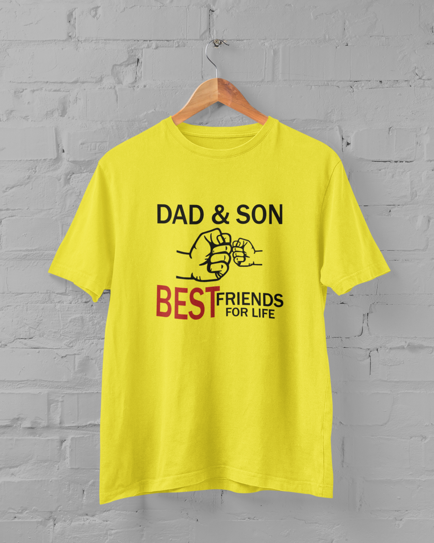 Dad And Son Best Friends For Life Father and Son Yellow Matching T-Shirt- FashionRazor