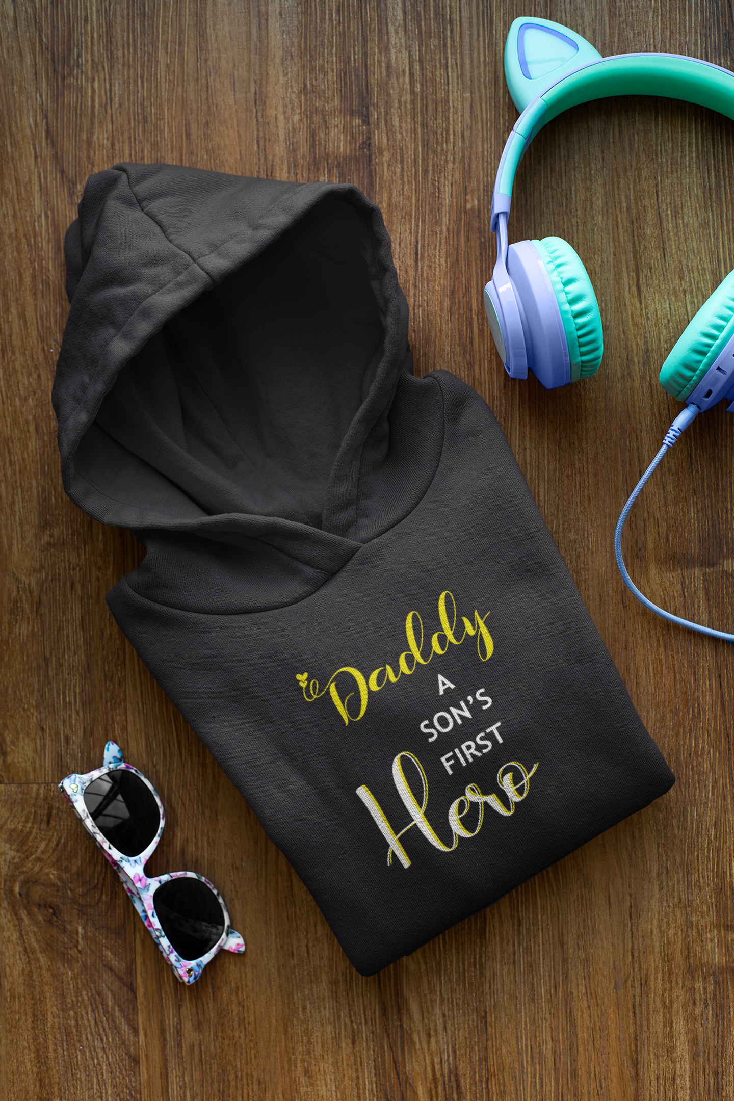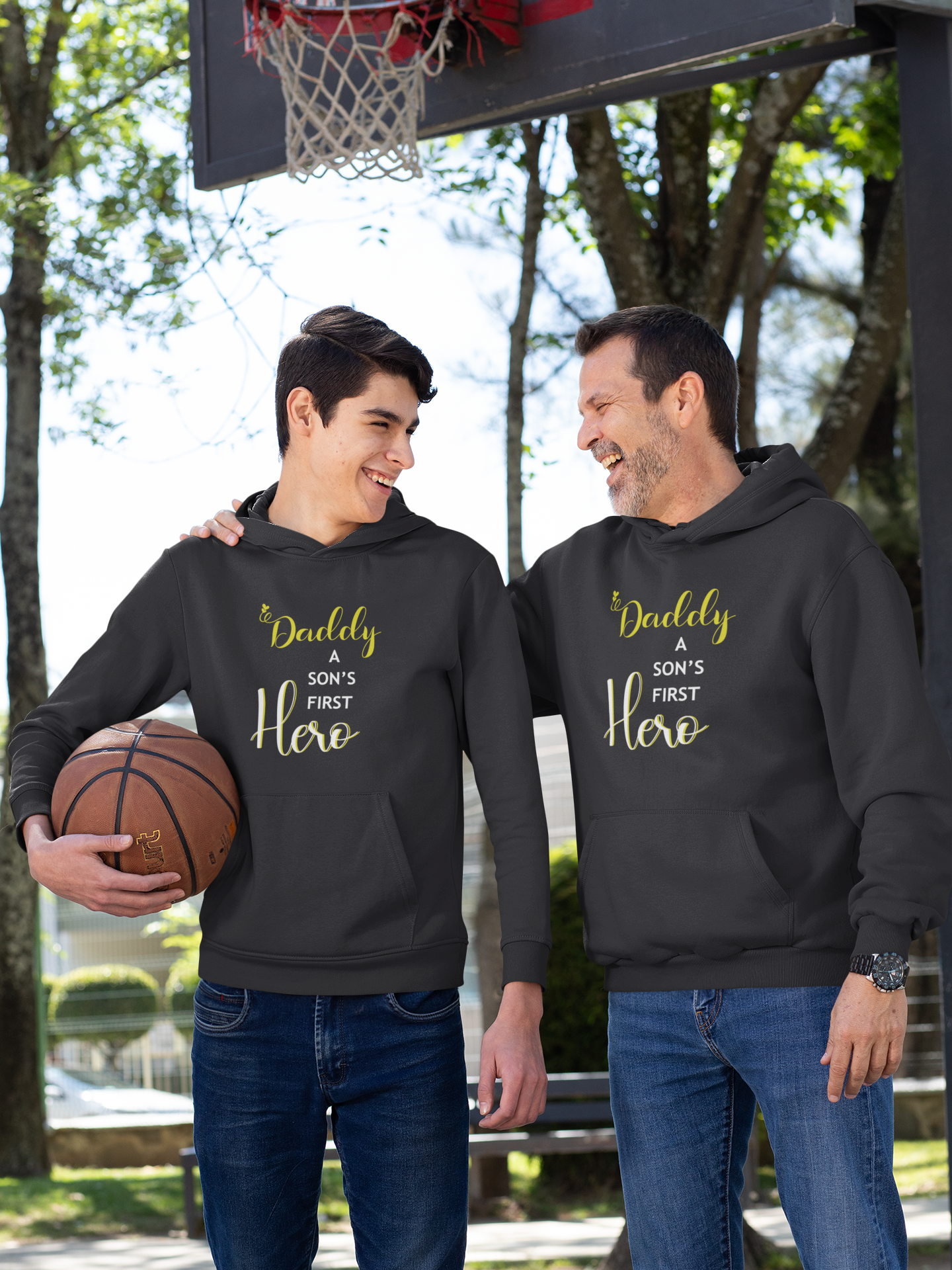 Daddy A Sons First Hero Father and Son Black Matching Hoodies- FashionRazor