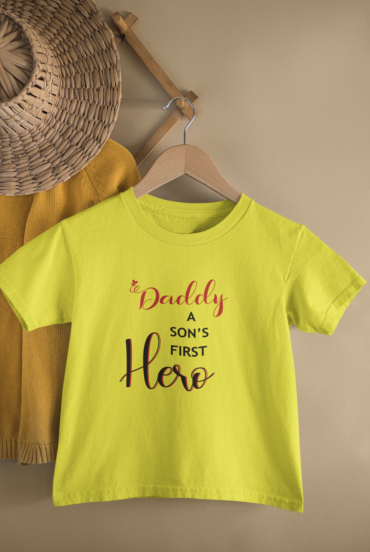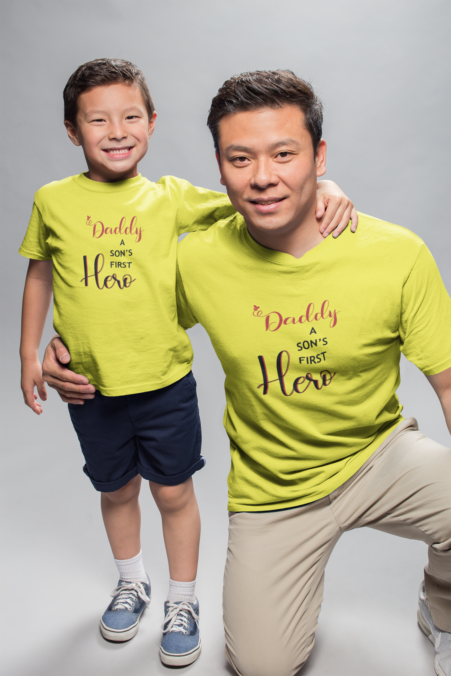 Daddy A Sons First Hero Father and Son Yellow Matching T-Shirt- FashionRazor