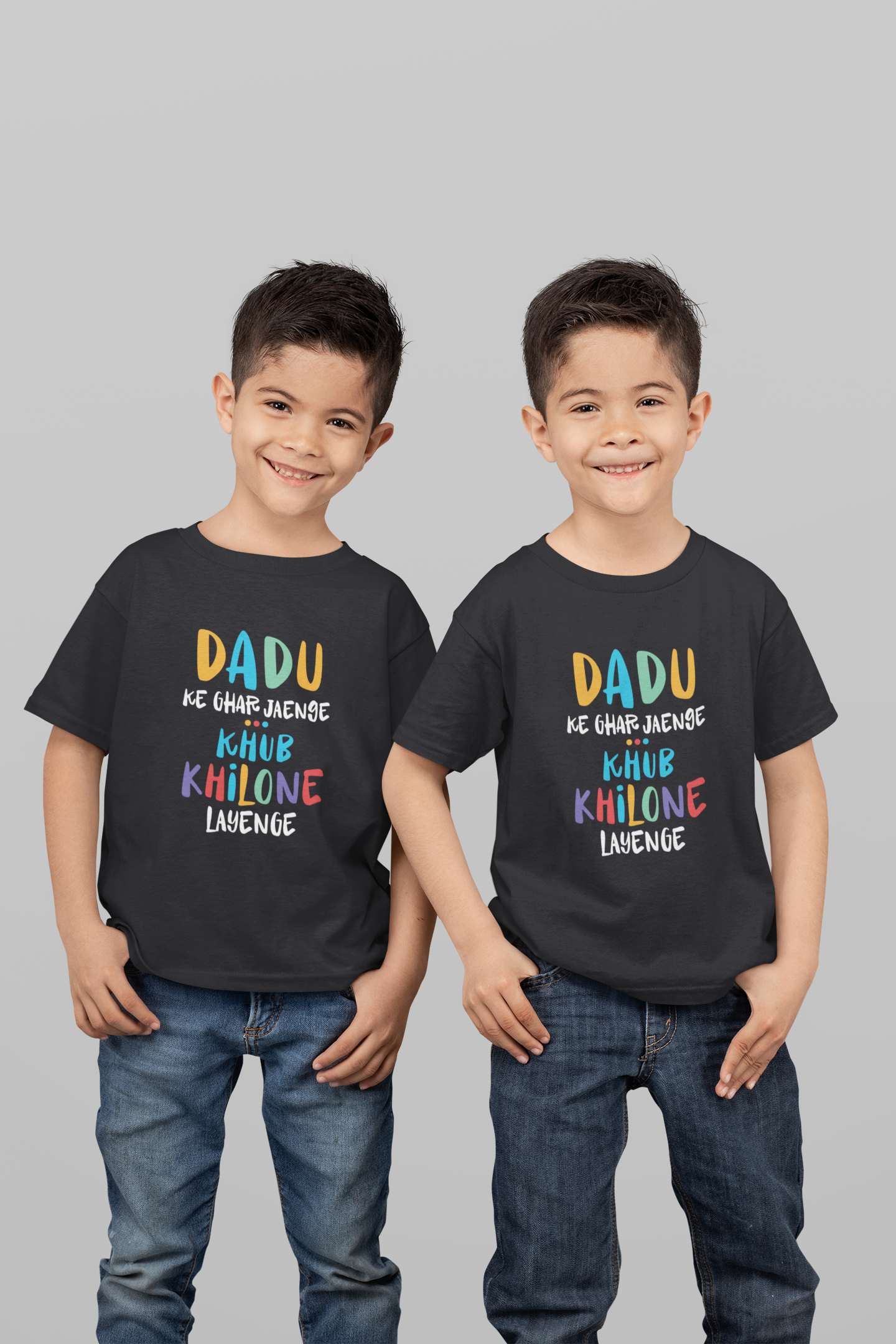 Dadu Ke Ghar Jayenge Matching Brother-Brother Kids Half Sleeves T-Shirts -FashionRazor