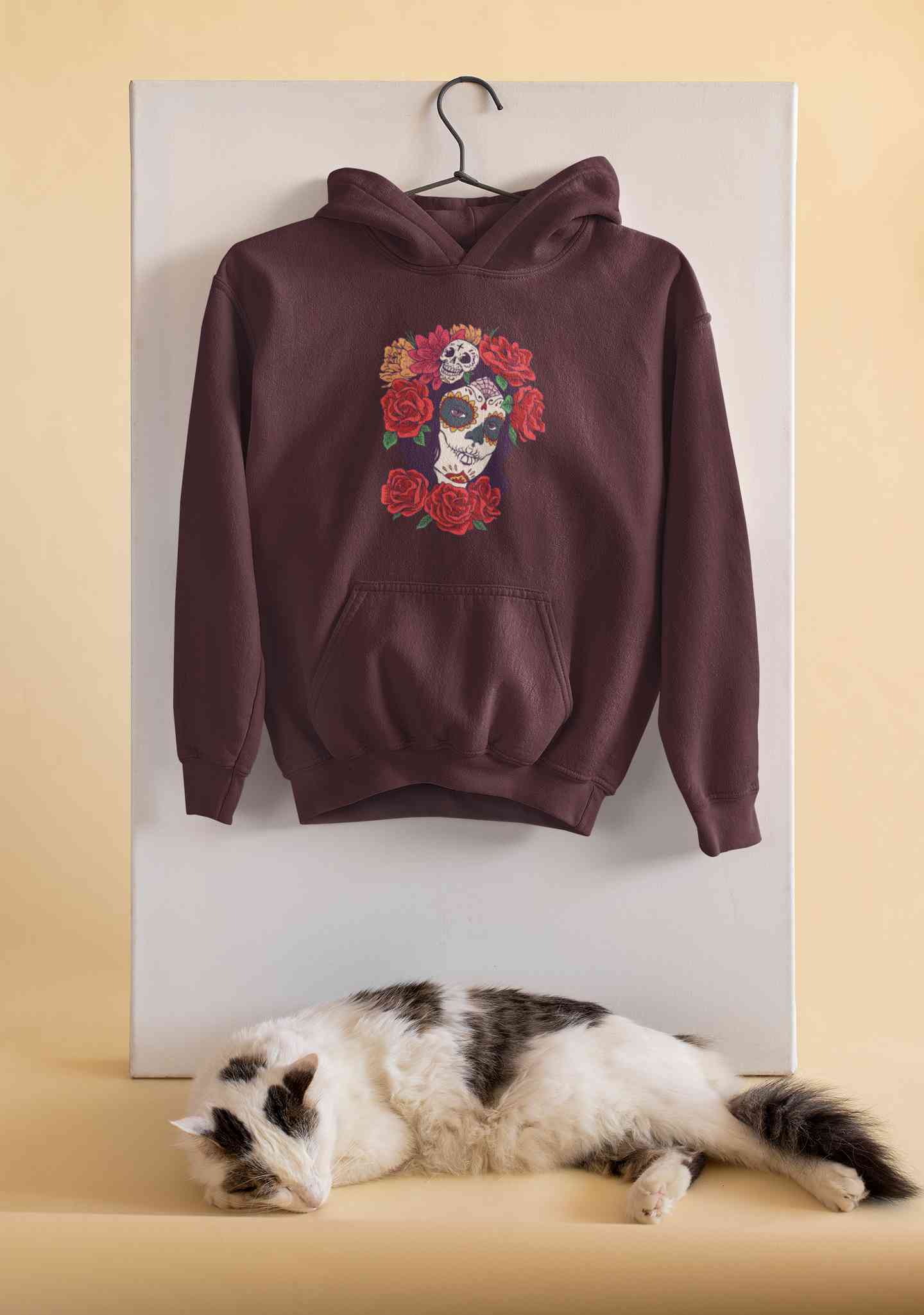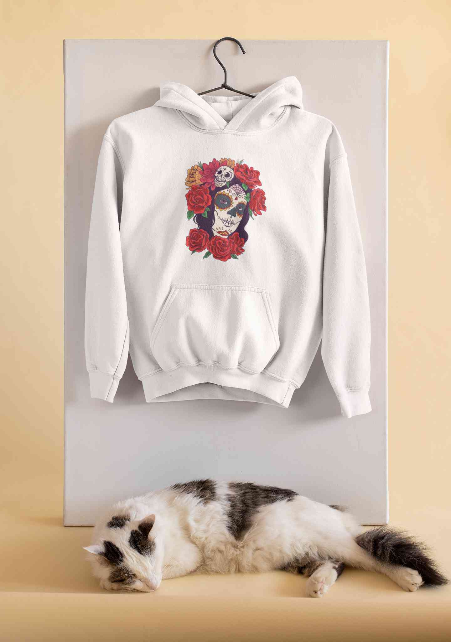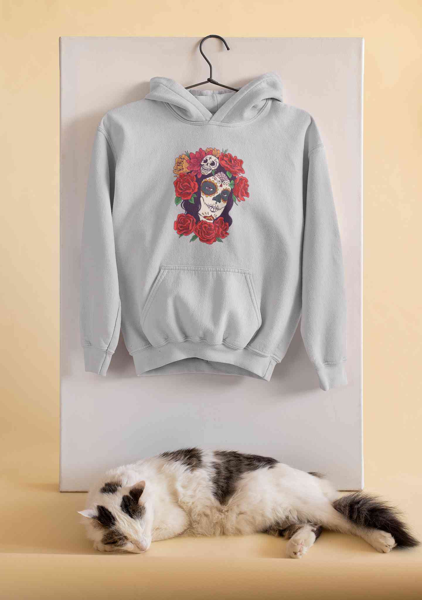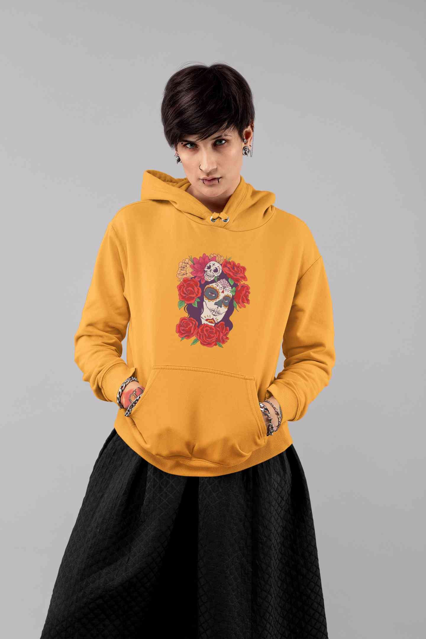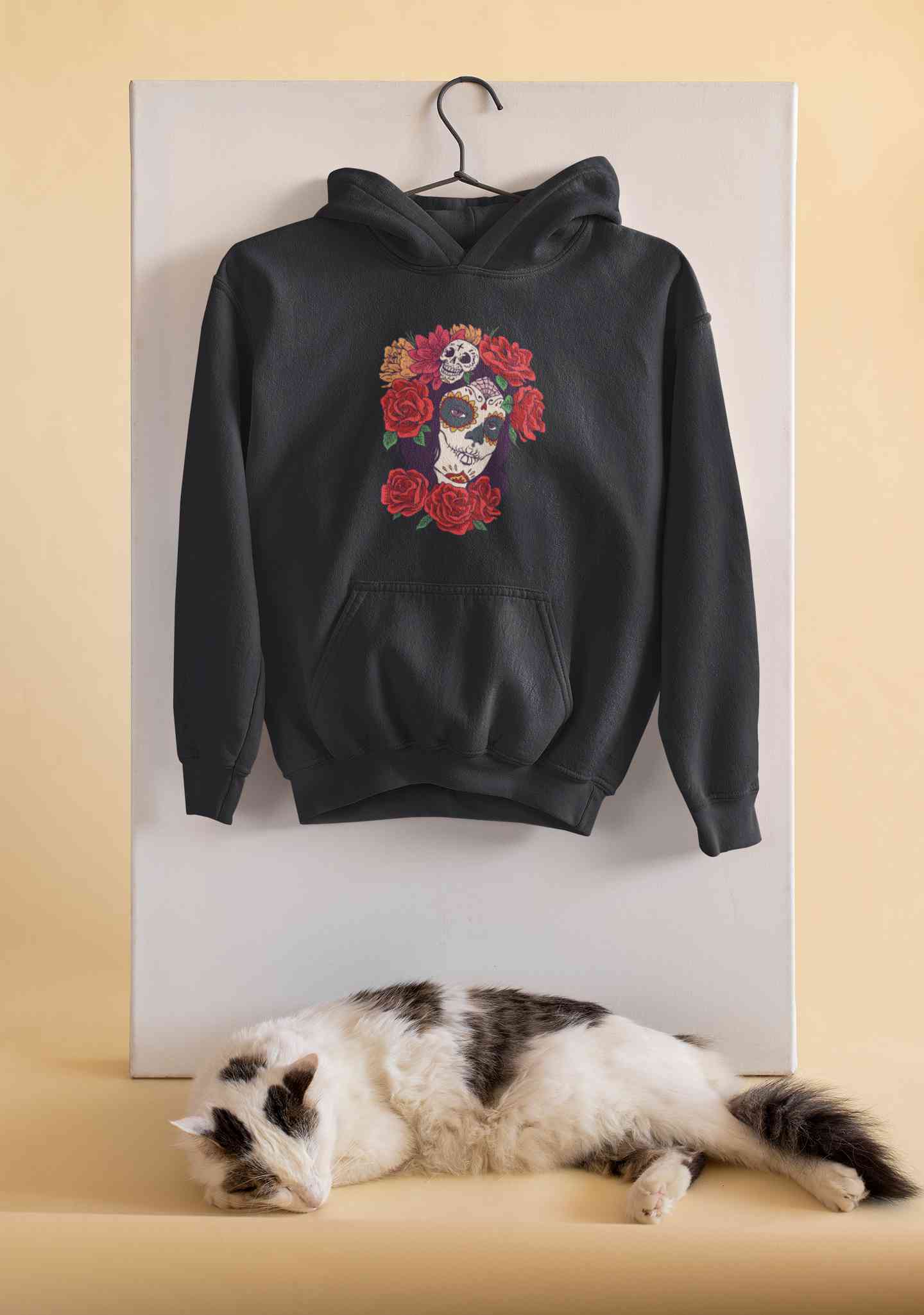 Day Of The Dead Floral Skull Illustration Hoodies for Women-FashionRazor
