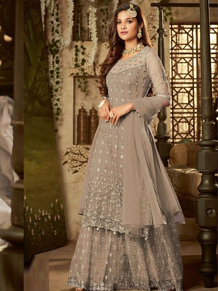 For A Bold And Beautiful Look, Grab This New And Designer Patterned Indo-Western Suit. Its Top, Bottom And Dupatta Are Fabricated On Georgette Beautified With Heavy Embroidery.