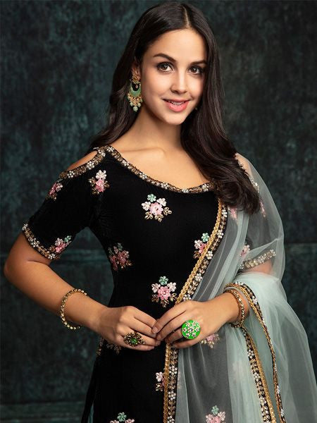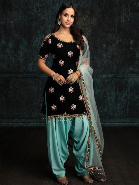 Designer Velvet Black Semi-Stitched Patiala Suit-FashionRazor