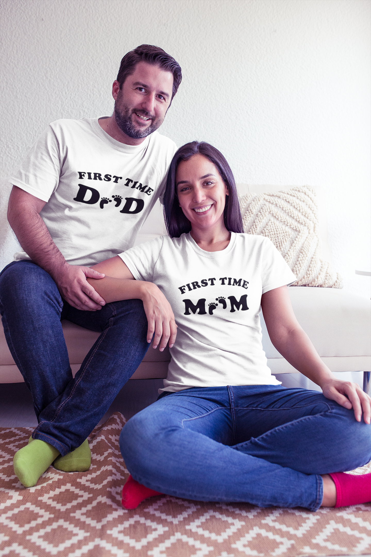 First Time Mom And First Time Dad Pregnancy Announcement Maternity Couple Half Sleeves T-Shirts -FashionRazor