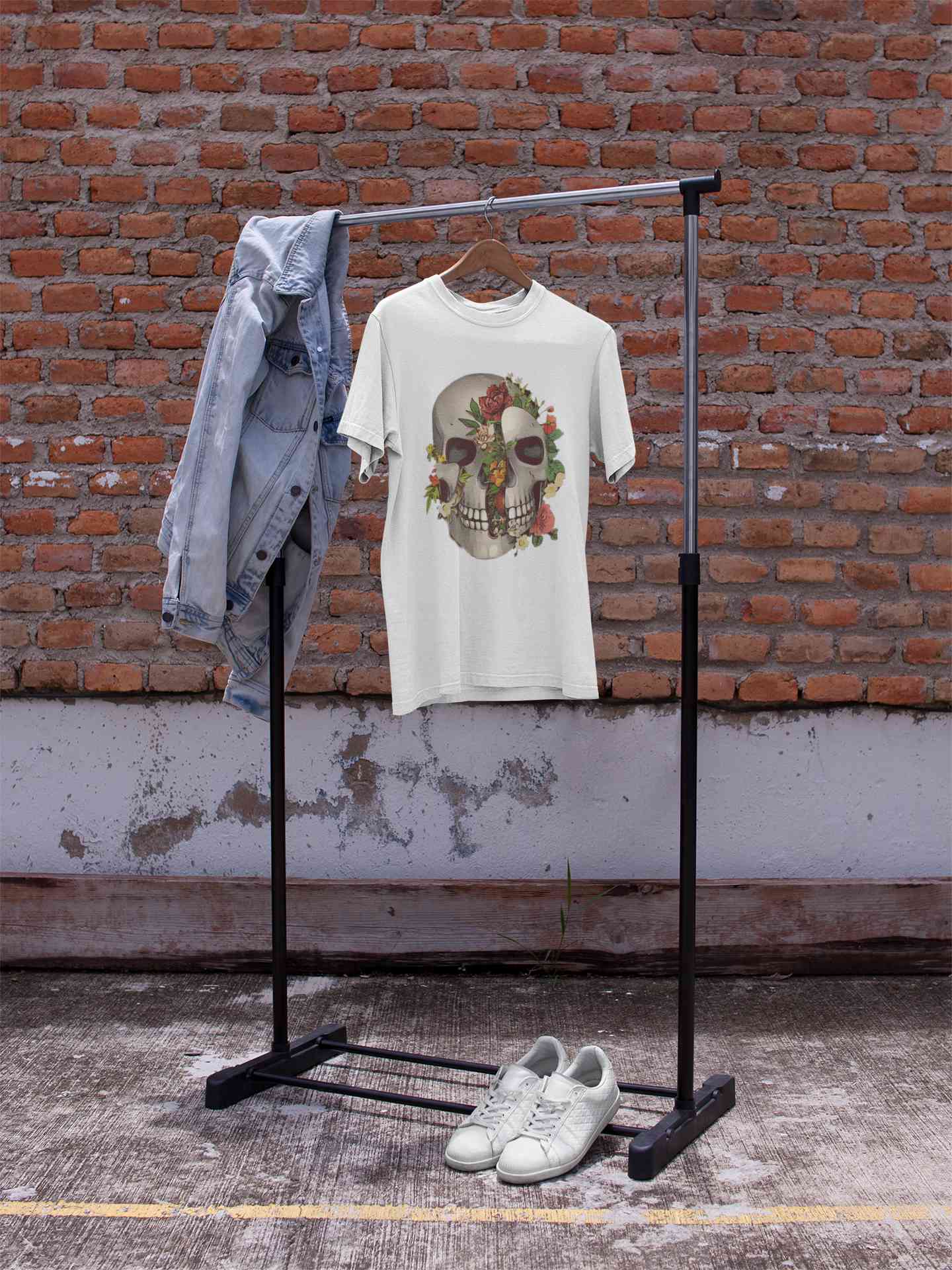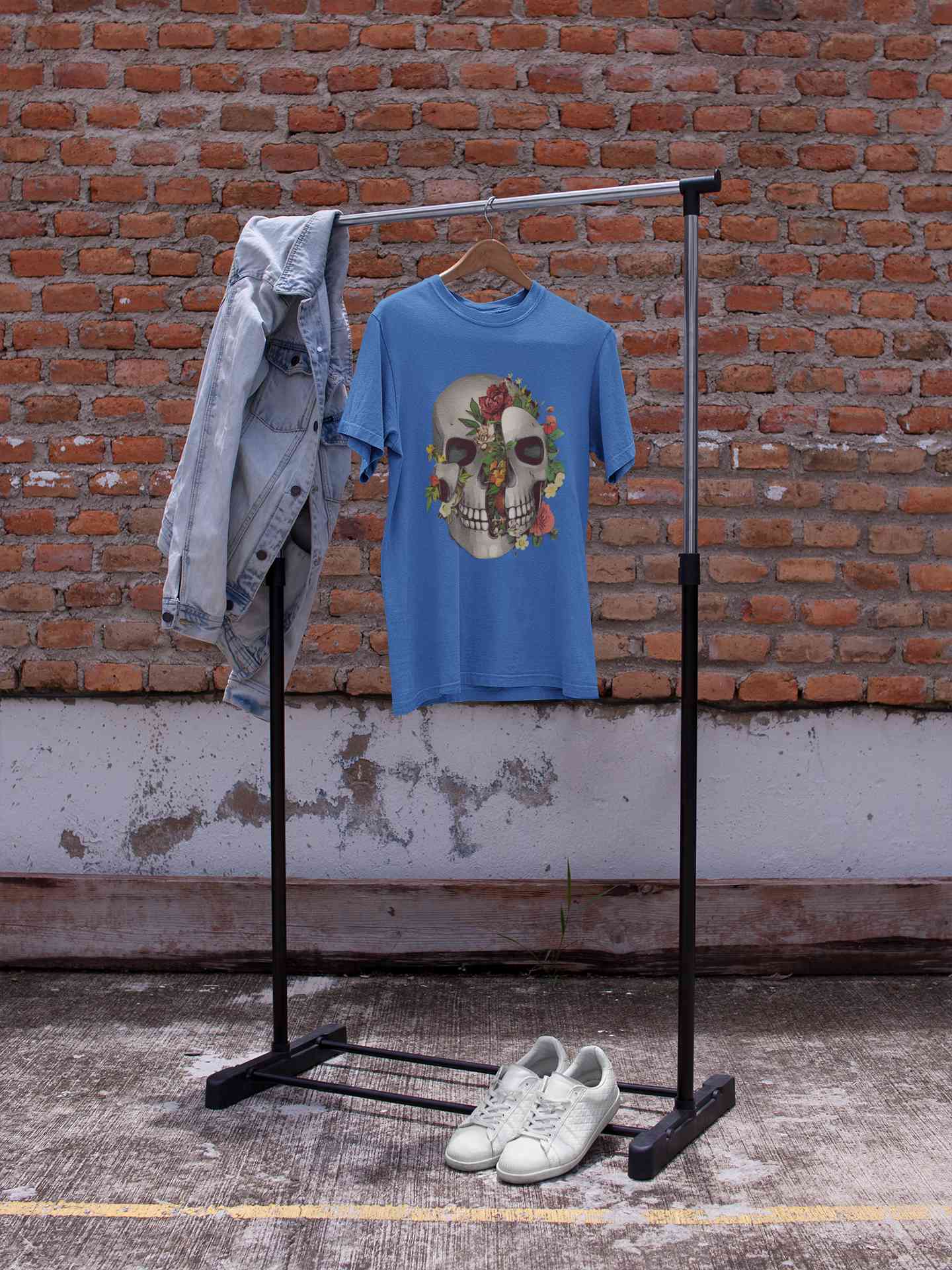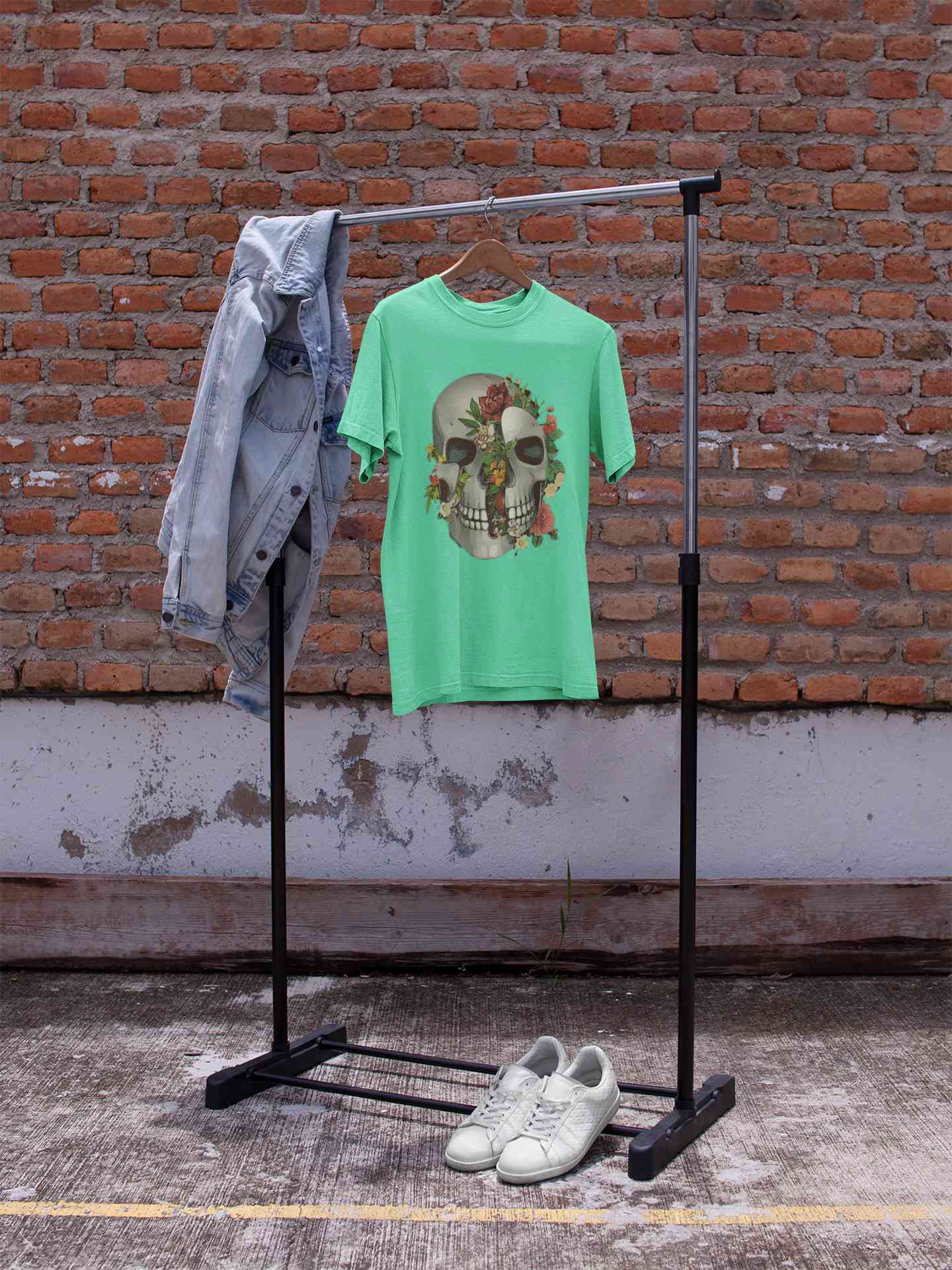Floral And Skull Print Mens Half Sleeves T-shirt- FashionRazor