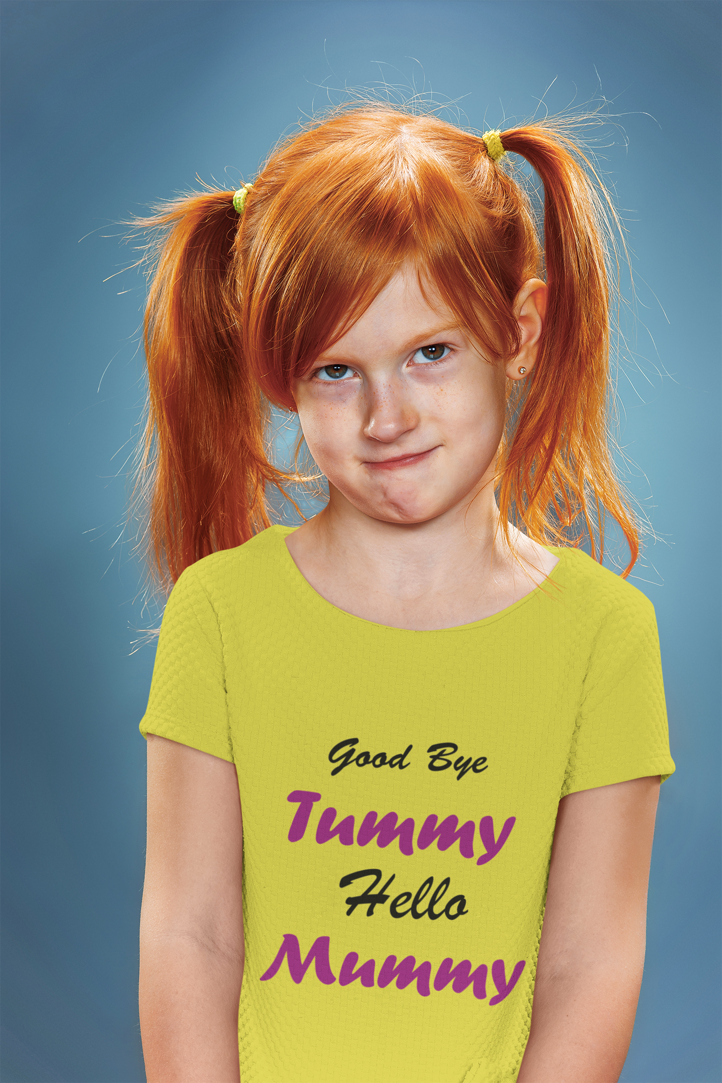 Good Bye Tummy Hello Mummy Half Sleeves T-Shirt For Girls -FashionRazor