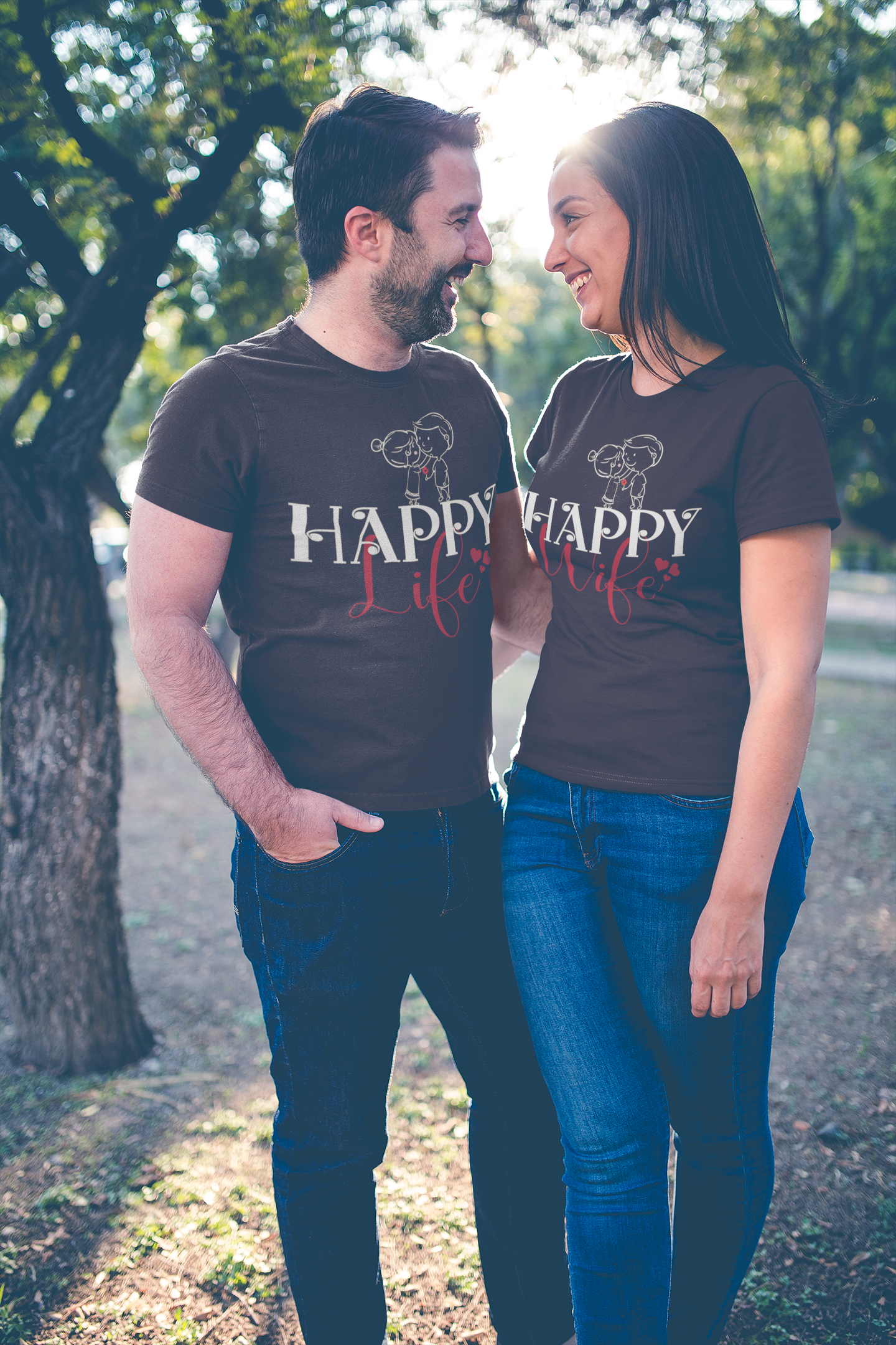Happy Life Happy Wife Couple Half Sleeves T-Shirts -FashionRazor