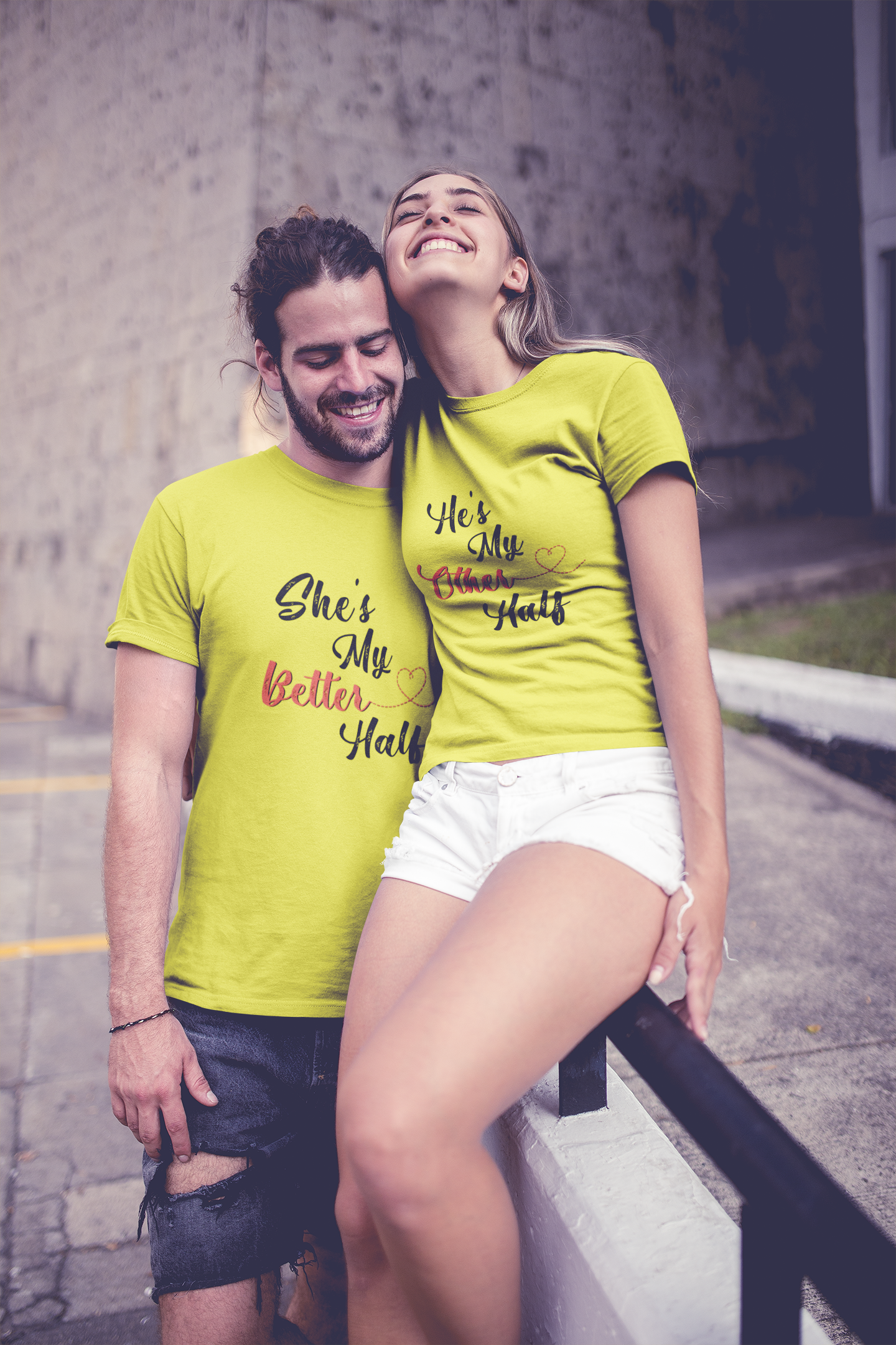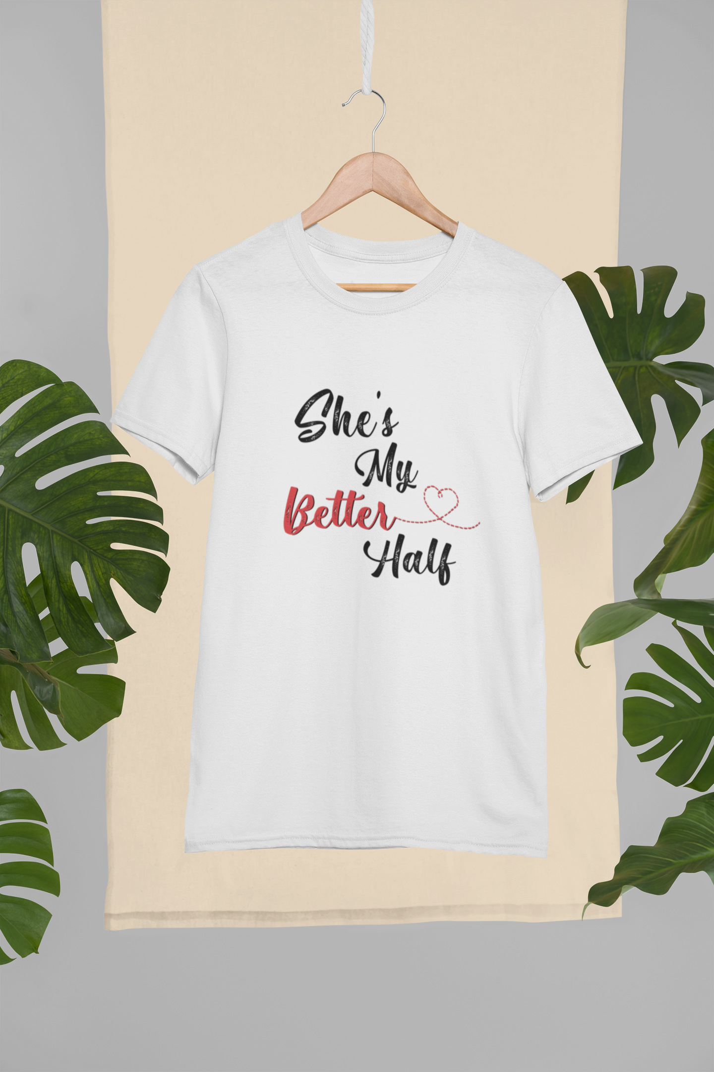 He Is My Better Half Couple Half Sleeves T-Shirts -FashionRazor