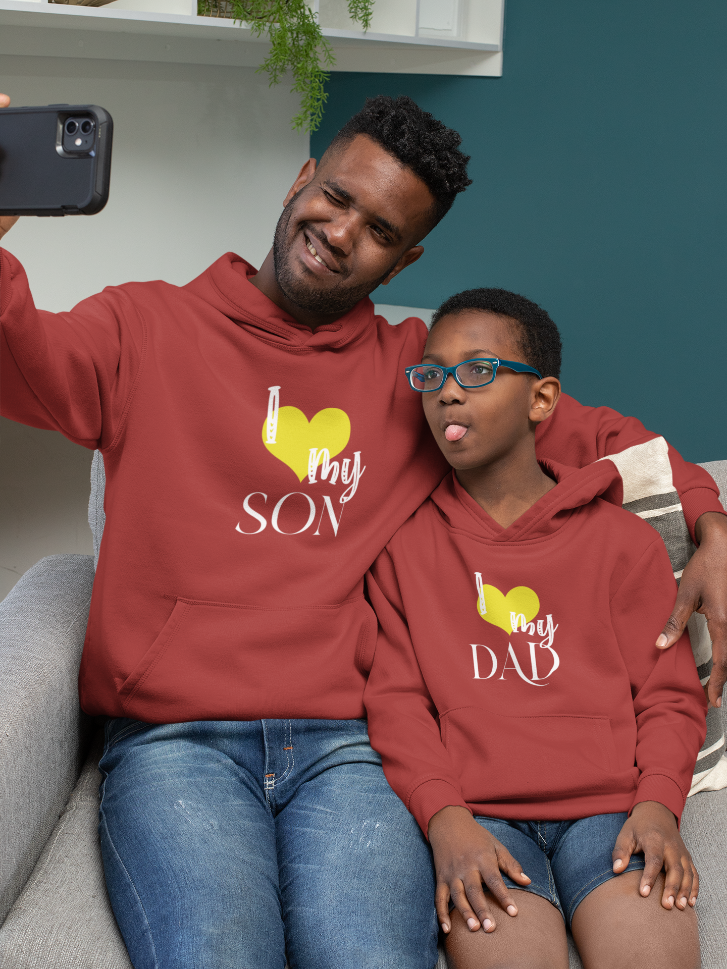 I Love My Dad Father and Son Red Matching Hoodies- FashionRazor