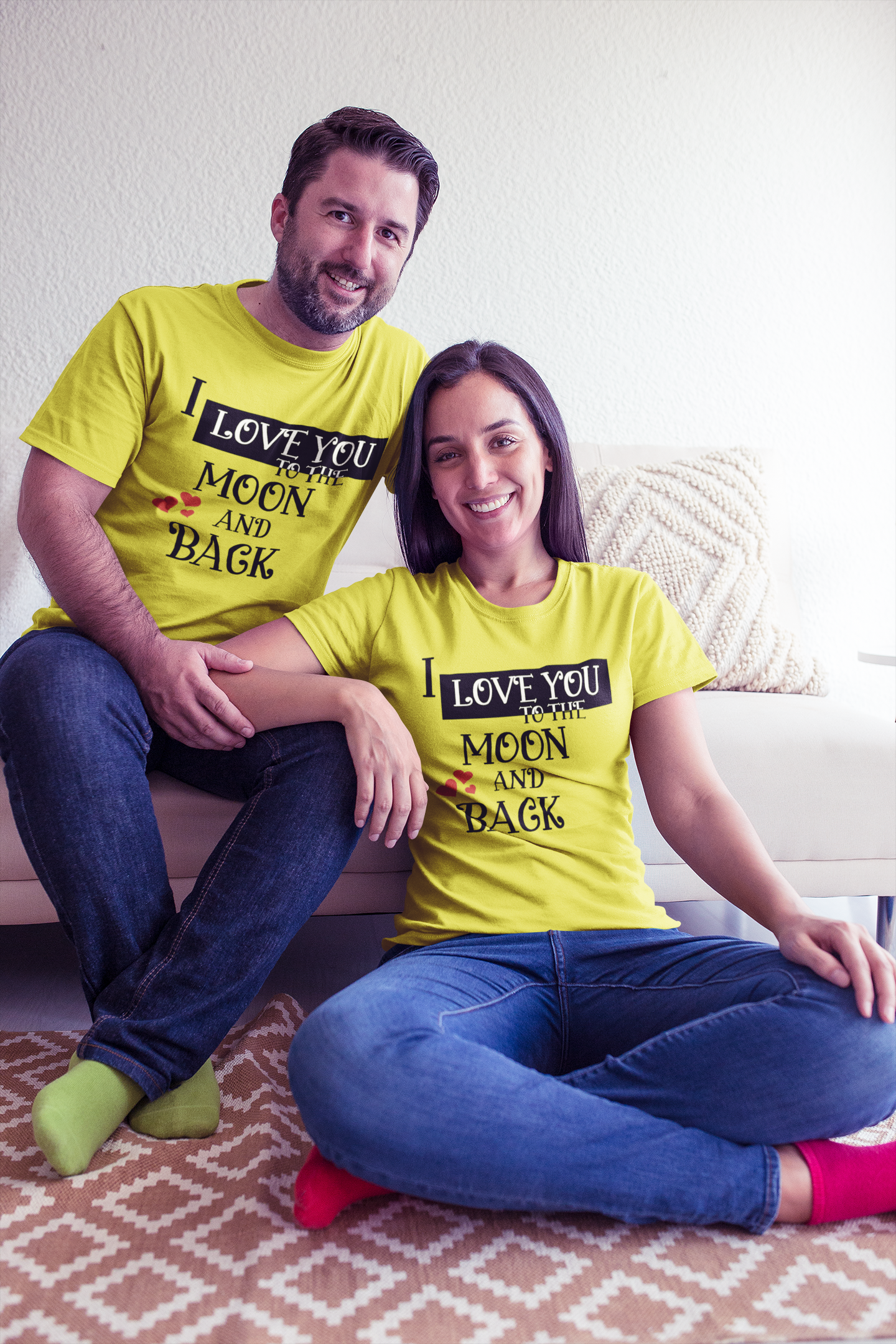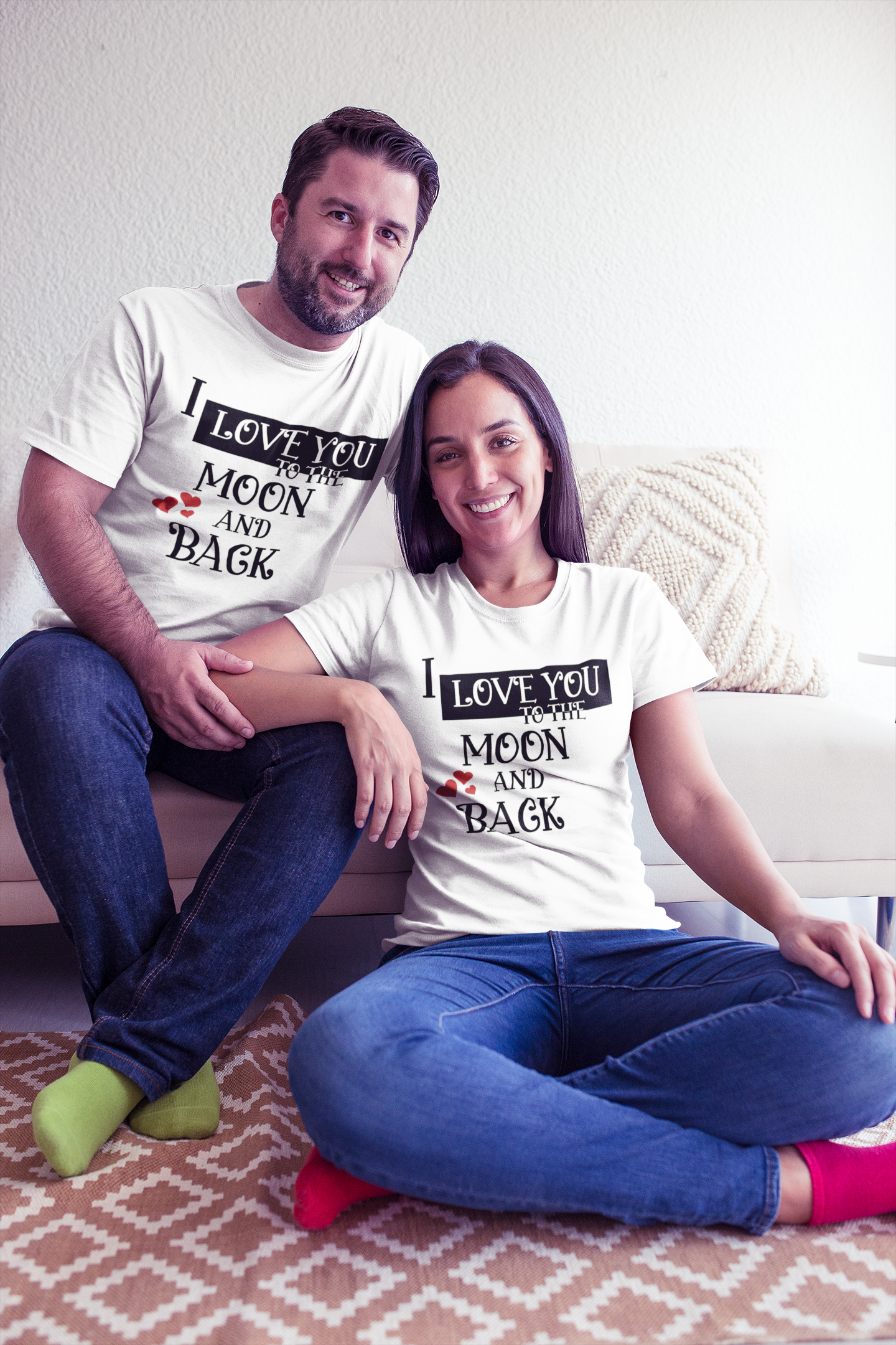 I Love U To The Moon And Back Couple Half Sleeves T-Shirts -FashionRazor
