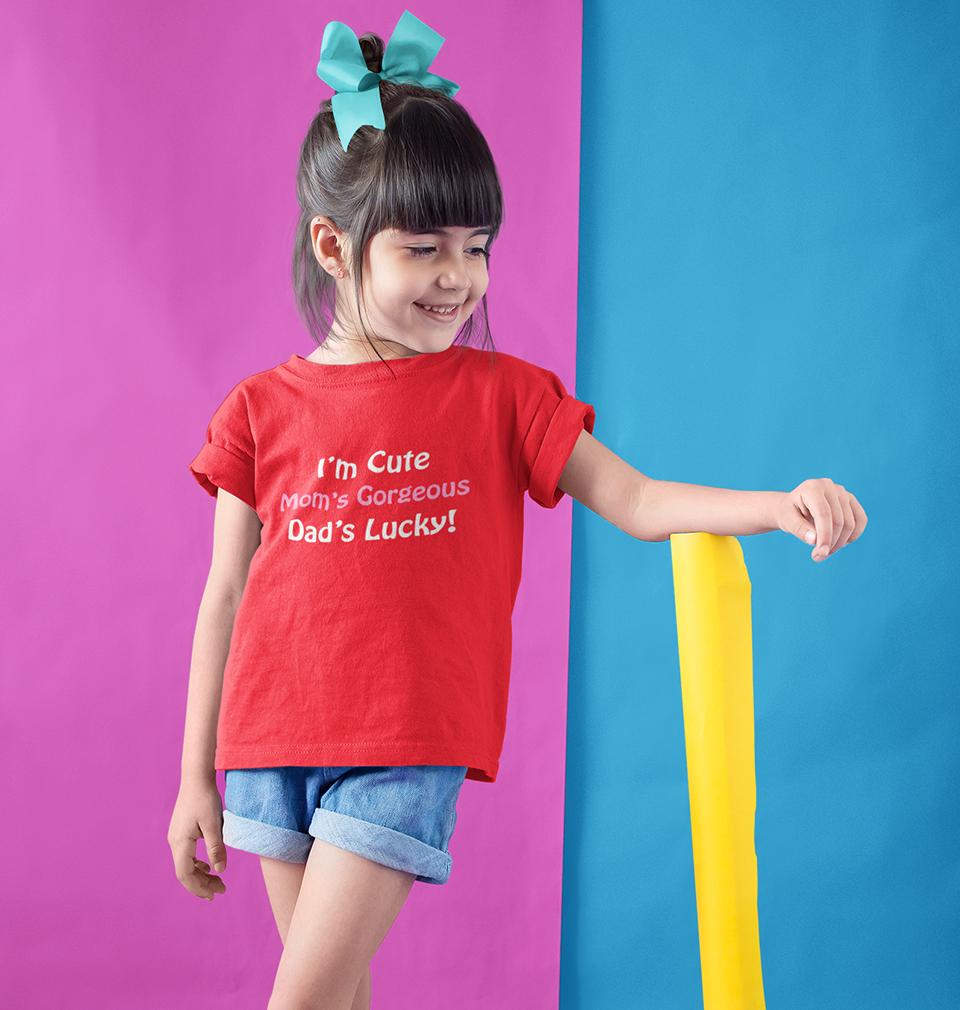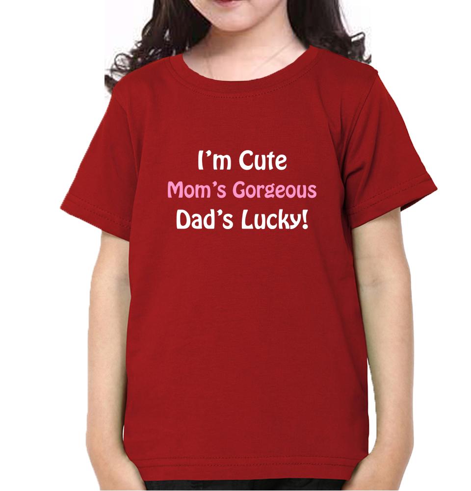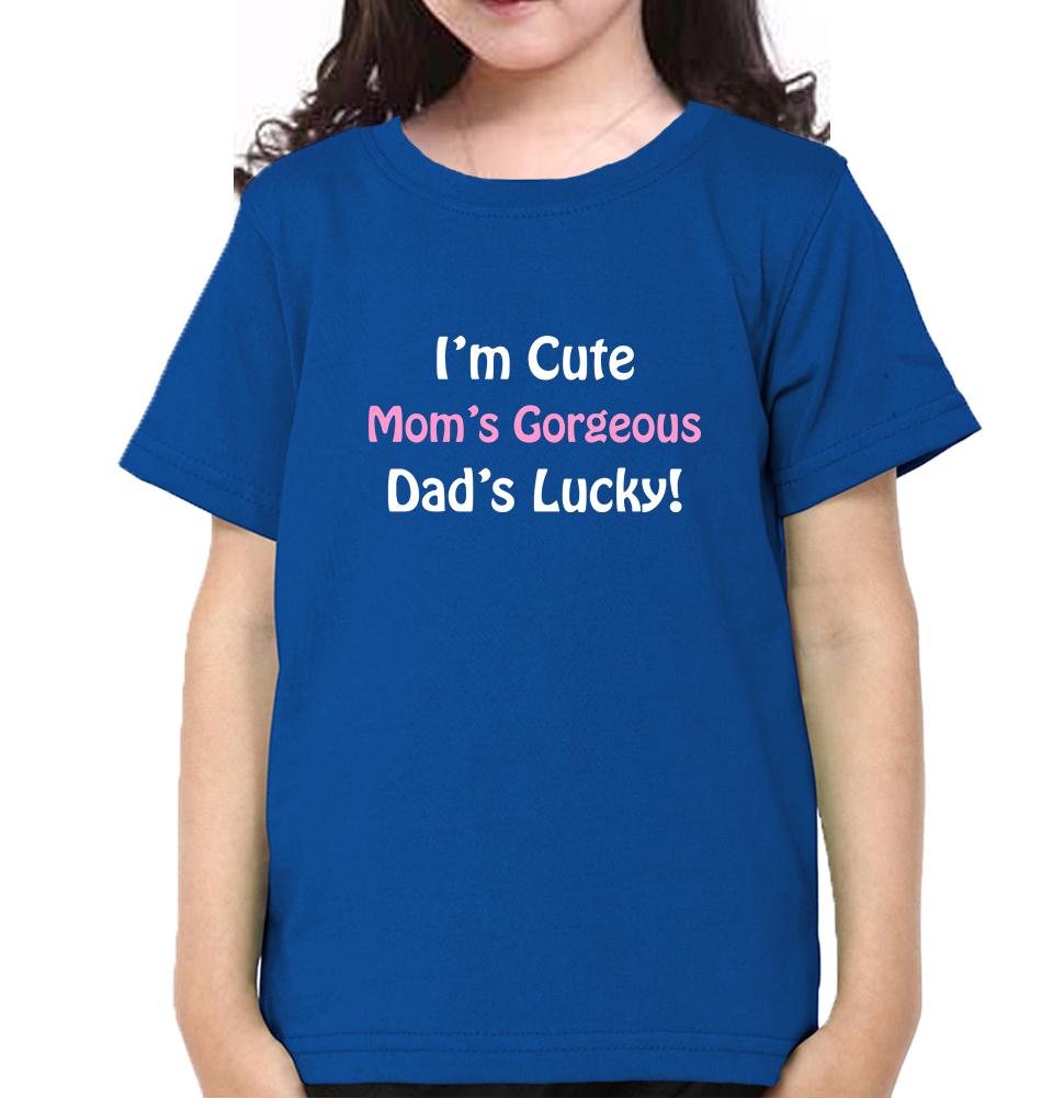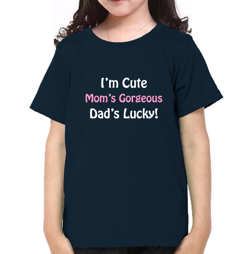 I'm Cute Mom's Gorgeous Dad's Lucky Half Sleeves T-Shirt For Girls -FashionRazor