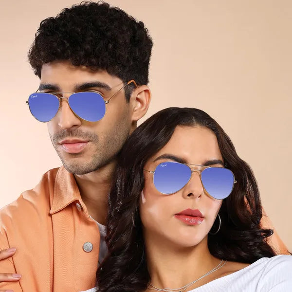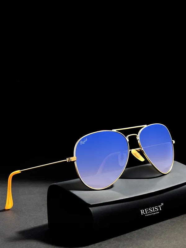 Add a touch of sophistication to your look with the UV-Protected Gold Blue Reflector Gradient Aviator Sunglasses by Resist Eyewear. These stylish aviators are crafted with high-quality glass lenses that offer superior clarity and scratch resistance, ideal for both daily wear and outdoor activities. The stunning gold frame and blue reflector gradient lenses deliver a bold look while reducing glare and enhancing visual comfort. Built for all-day wear, these sunglasses offer 100% UV protection, shielding your eyes from harmful UVA and UVB rays. Perfect for men and women, these aviators blend timeless design with advanced lens technology for a natural and clear viewing experience.