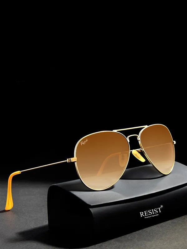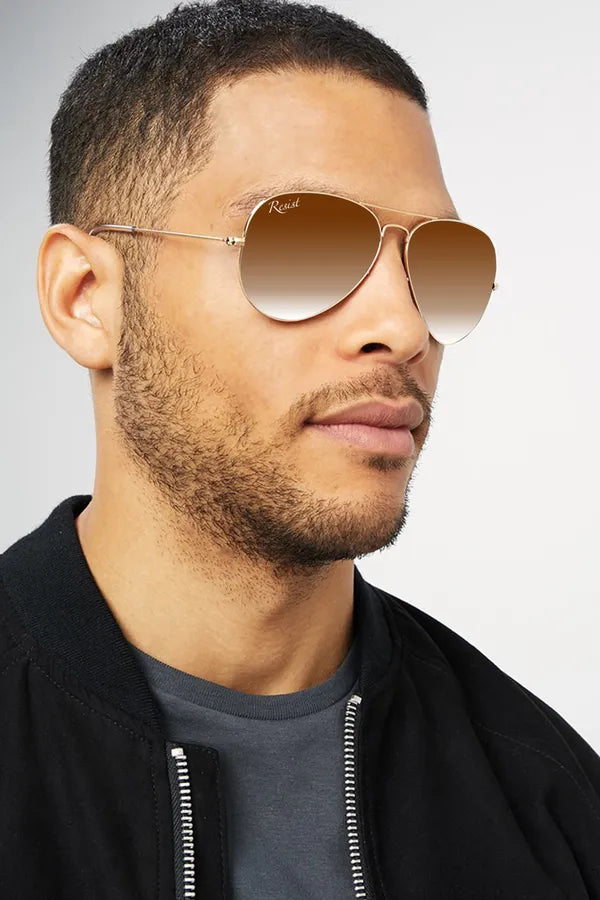 With Resist Eyewear’s Gold Brown Gradient Aviator Sunglasses, enjoy a combination of elegance, durability, and essential eye protection. Whether on an adventure or making a style statement, these aviators are your go-to choice for performance and fashion.