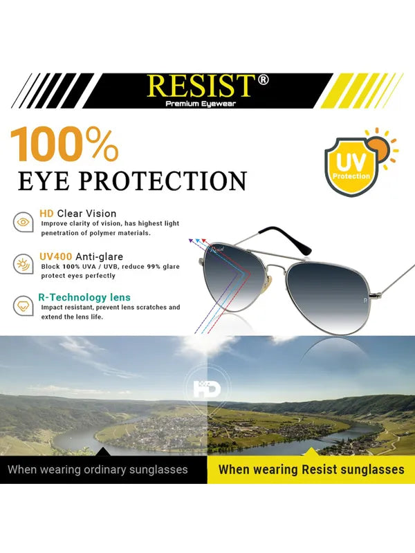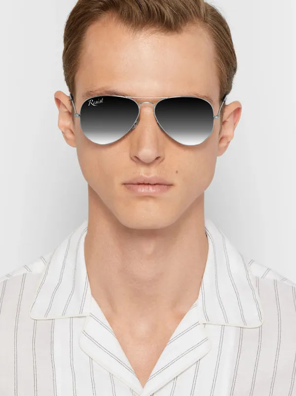 UV Protected Silver Black Gradient Aviator Sunglasses for Men and Women- FashionRazor