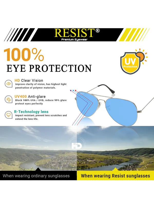 Experience a blend of style and functionality with our UV Protected Silver & Blue Night Vision Aviator Sunglasses, tailored for both men and women. Featuring high-quality glass lenses, these sunglasses deliver unparalleled clarity and are scratch-resistant for lasting performance. The sleek silver frame is complemented by striking blue lenses that enhance your vision while reducing glare, making them ideal for any outdoor adventure. Whether you're hiking, fishing, or just enjoying a day out, these sunglasses provide 100% UV protection, ensuring your eyes are shielded from harmful rays while keeping you stylish.