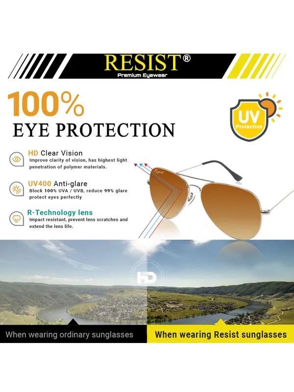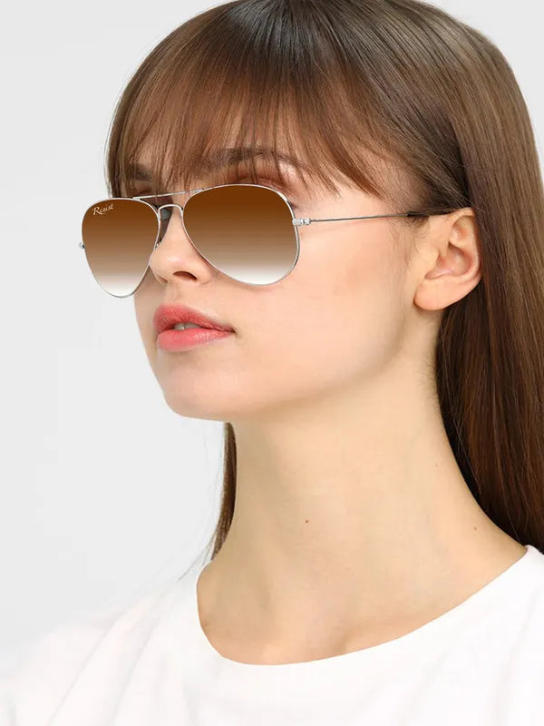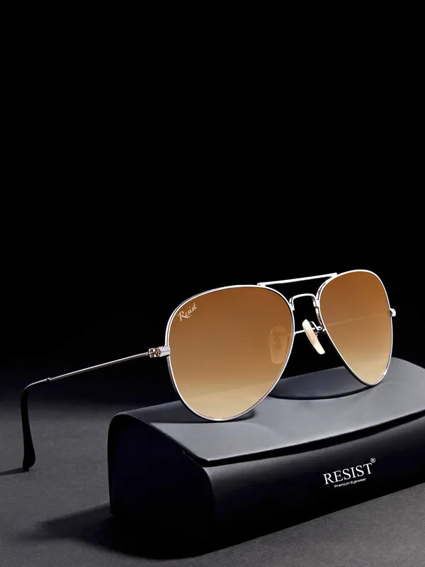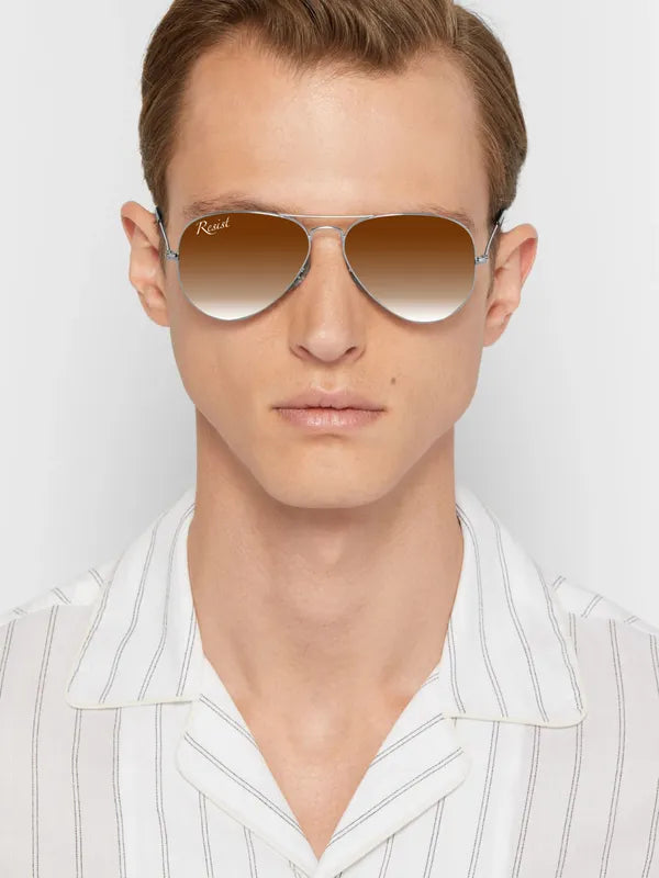 Elevate your eyewear collection with our UV Protected Silver & Brown Gradient Aviator Sunglasses, expertly designed for both men and women. These stylish sunglasses feature premium glass lenses that offer exceptional clarity, scratch resistance, and a multi-layer reflection coating to minimize glare. The chic silver frame seamlessly complements the gradient brown lenses, providing a fashionable look while ensuring 100% UV protection against harmful rays. Whether you're embarking on outdoor adventures or simply enjoying a sunny day out, these aviators deliver both comfort and style.