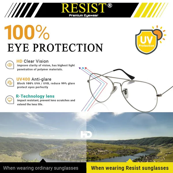 Description: Add sophistication and ultimate eye protection to your look with these UV Protected Silver Aviator Sunglasses for Men and Women. Designed with premium glass lenses, these aviators offer sharper clarity, scratch resistance, and a multi-layer reflection coating to minimize glare and make cleaning easier. The durable silver metal frame provides a stable, comfortable fit for any adventure, whether you're hiking, fishing, or simply enjoying a day out. With 100% UVA/UVB protection and high-definition lenses that maintain color integrity, these sunglasses offer both style and safety in one perfect accessory.
