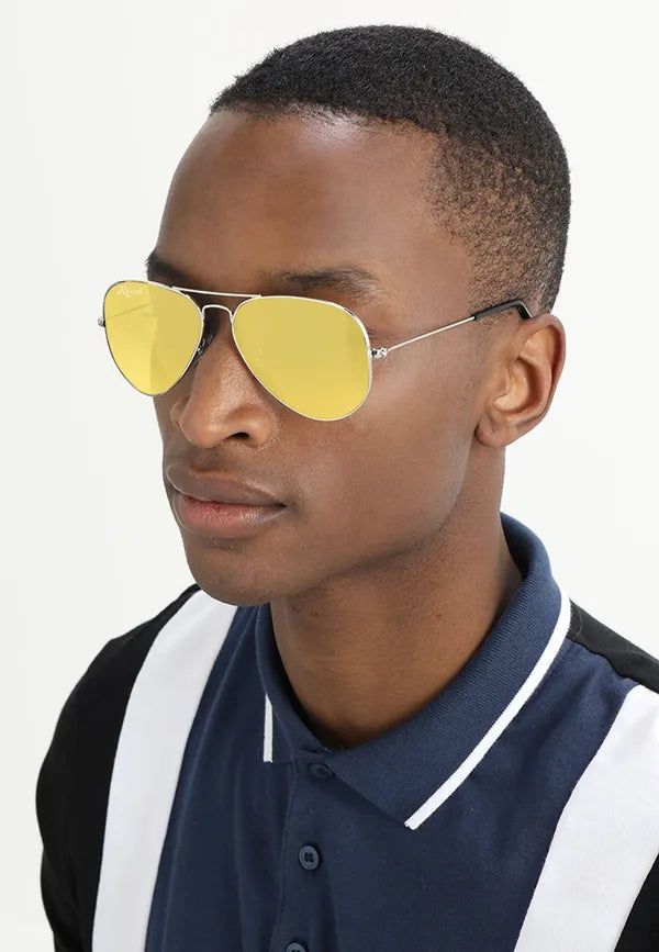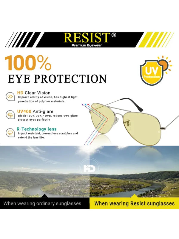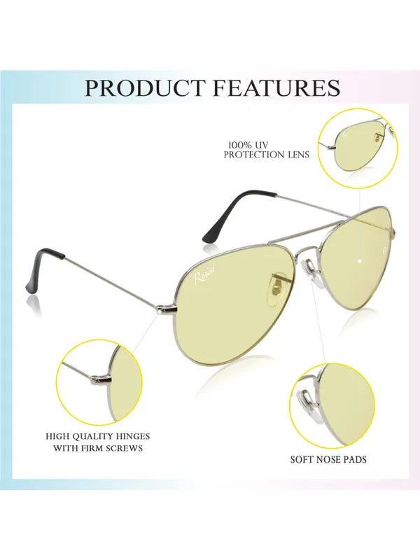 Description: Elevate your outdoor experience with these UV Protected Silver & Yellow Night Vision Aviator Sunglasses for Men and Women. Designed with high-quality glass lenses, these aviators provide superior clarity, scratch resistance, and a multi-layer reflection coating that reduces glare and simplifies cleaning. The sleek silver metal frame ensures stability and comfort for everyday wear, whether you’re hiking, fishing, or enjoying a casual outing. With 100% protection against UVA/UVB rays and high-definition lenses for natural vision, these sunglasses are the perfect blend of style, functionality, and protection for any adventure.