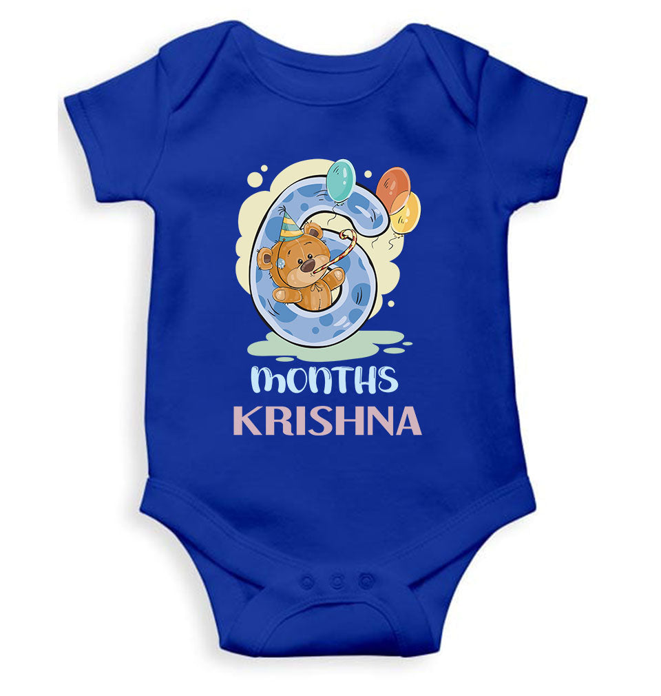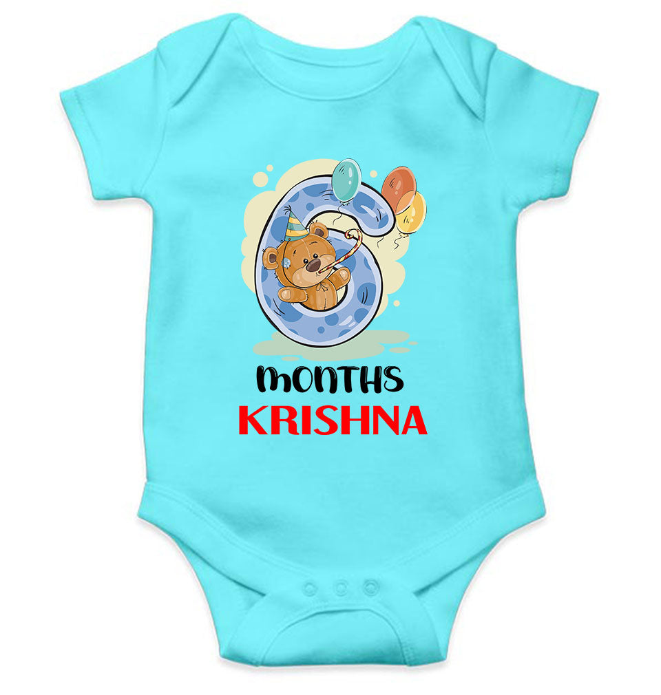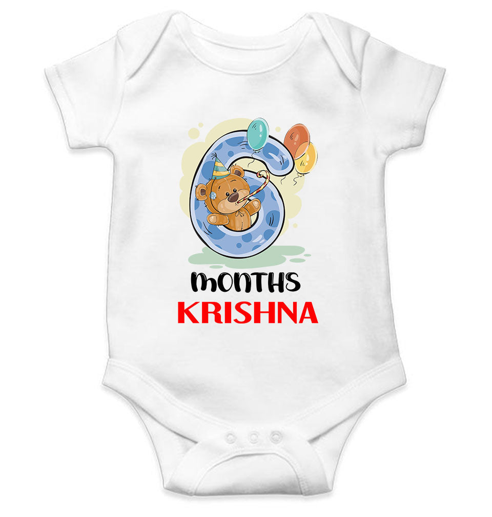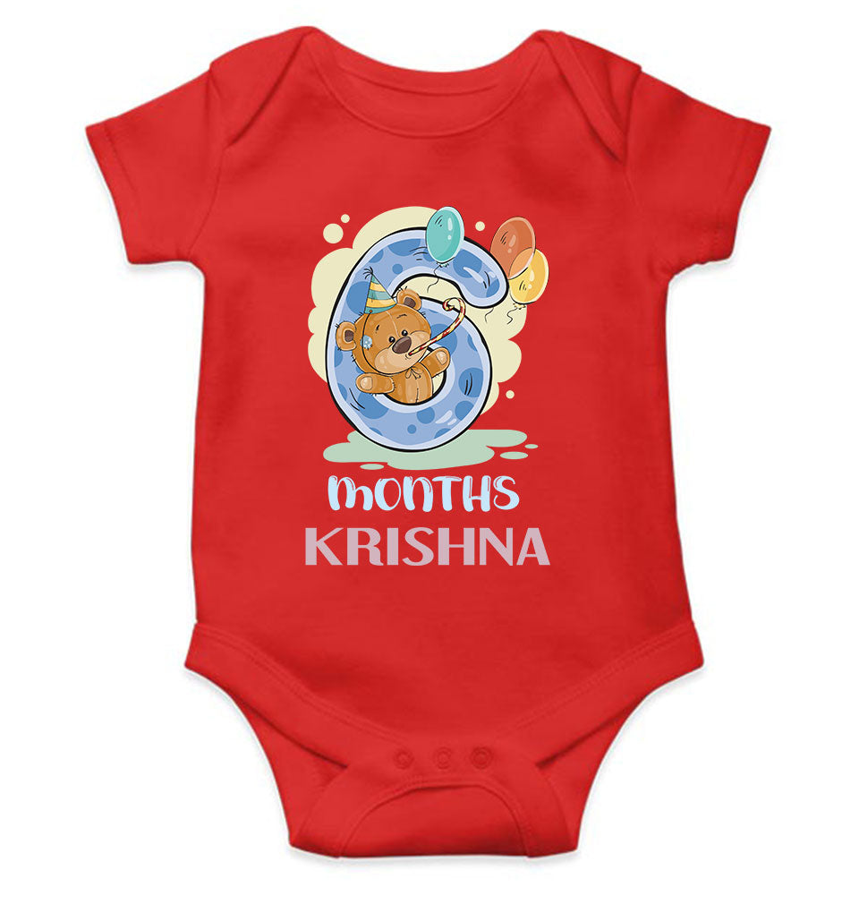 Custom Name 6 Month Birthday Teddy Design Rompers for Baby Boy- FashionRazor