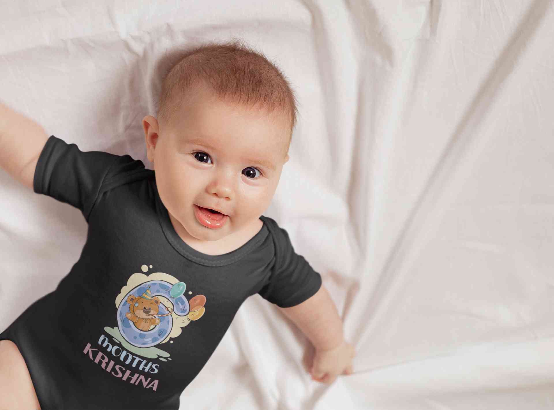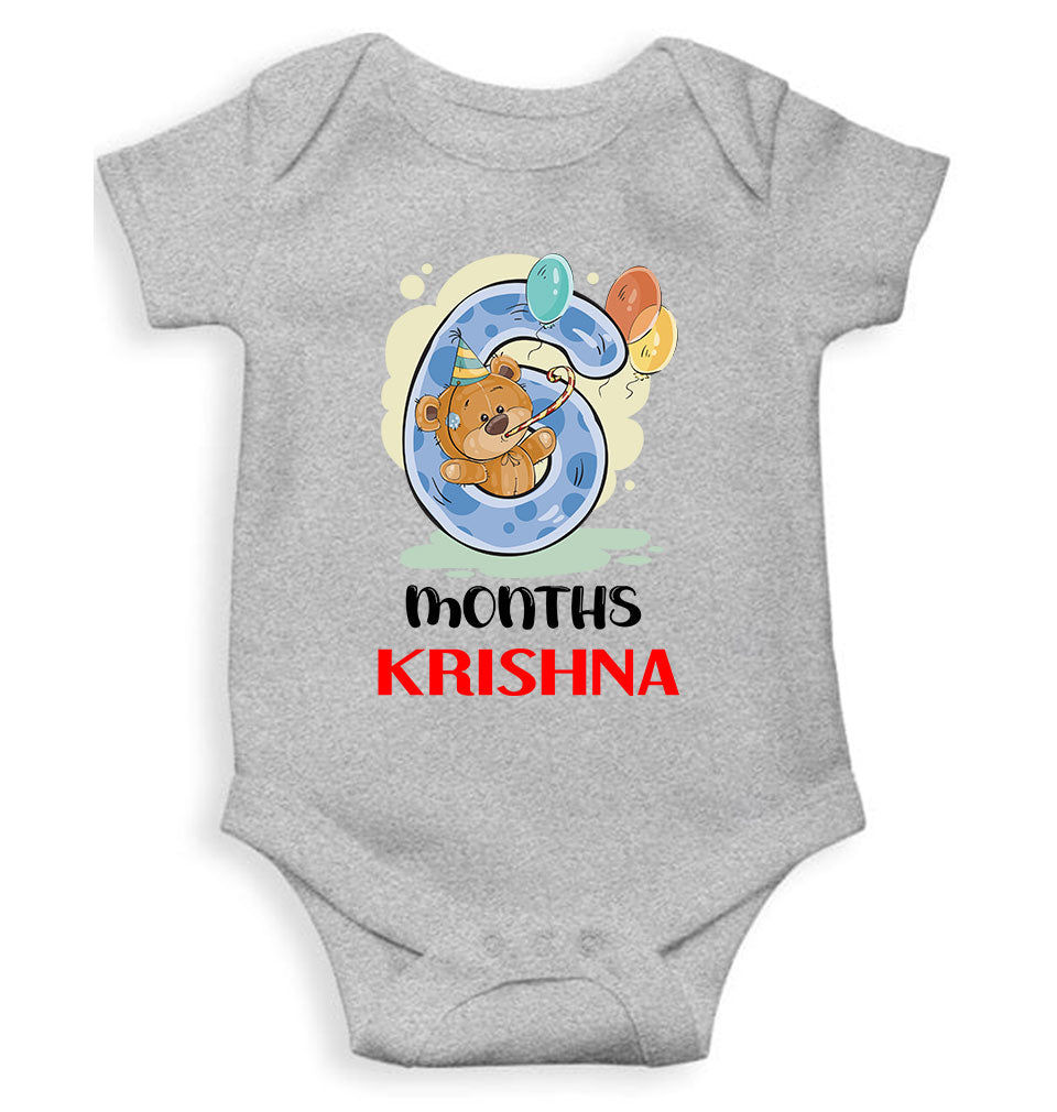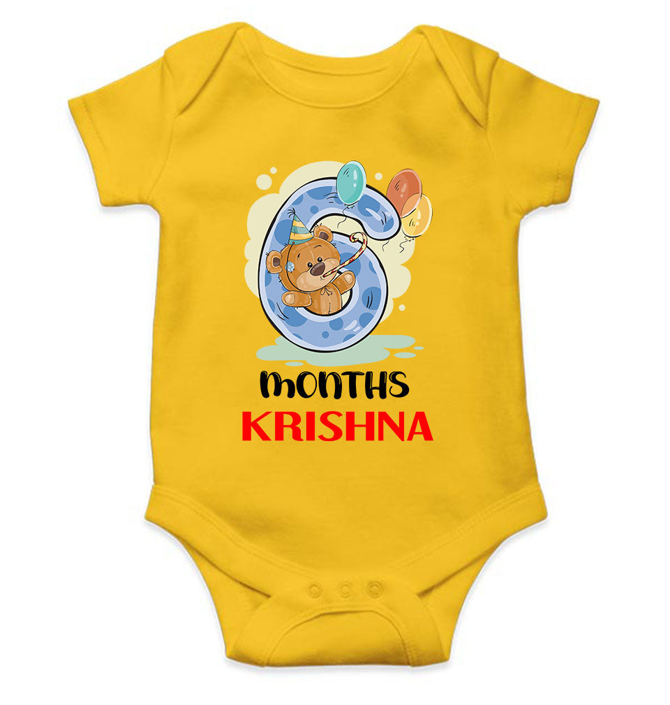 Custom Name 6 Month Birthday Teddy Design Rompers for Baby Boy- FashionRazor