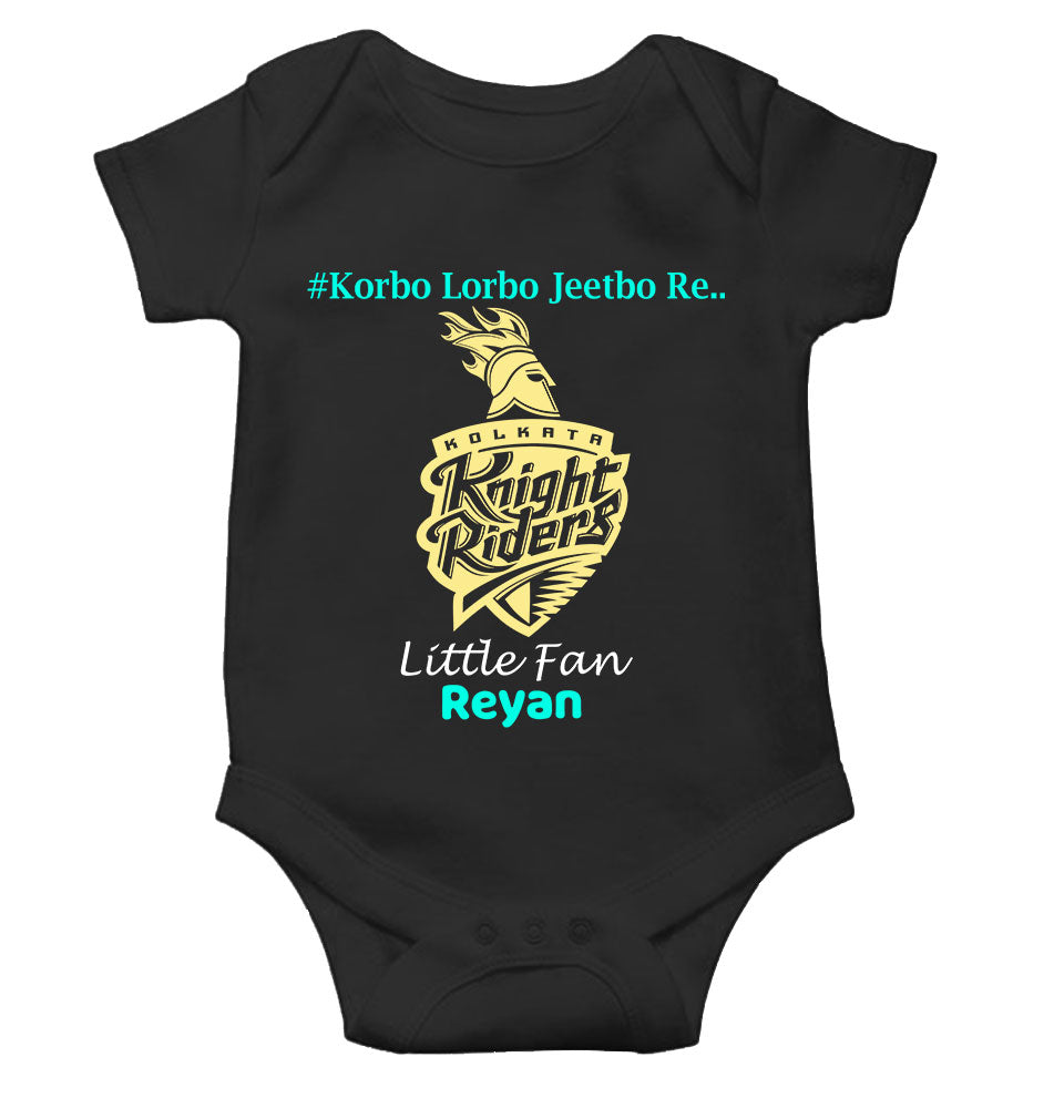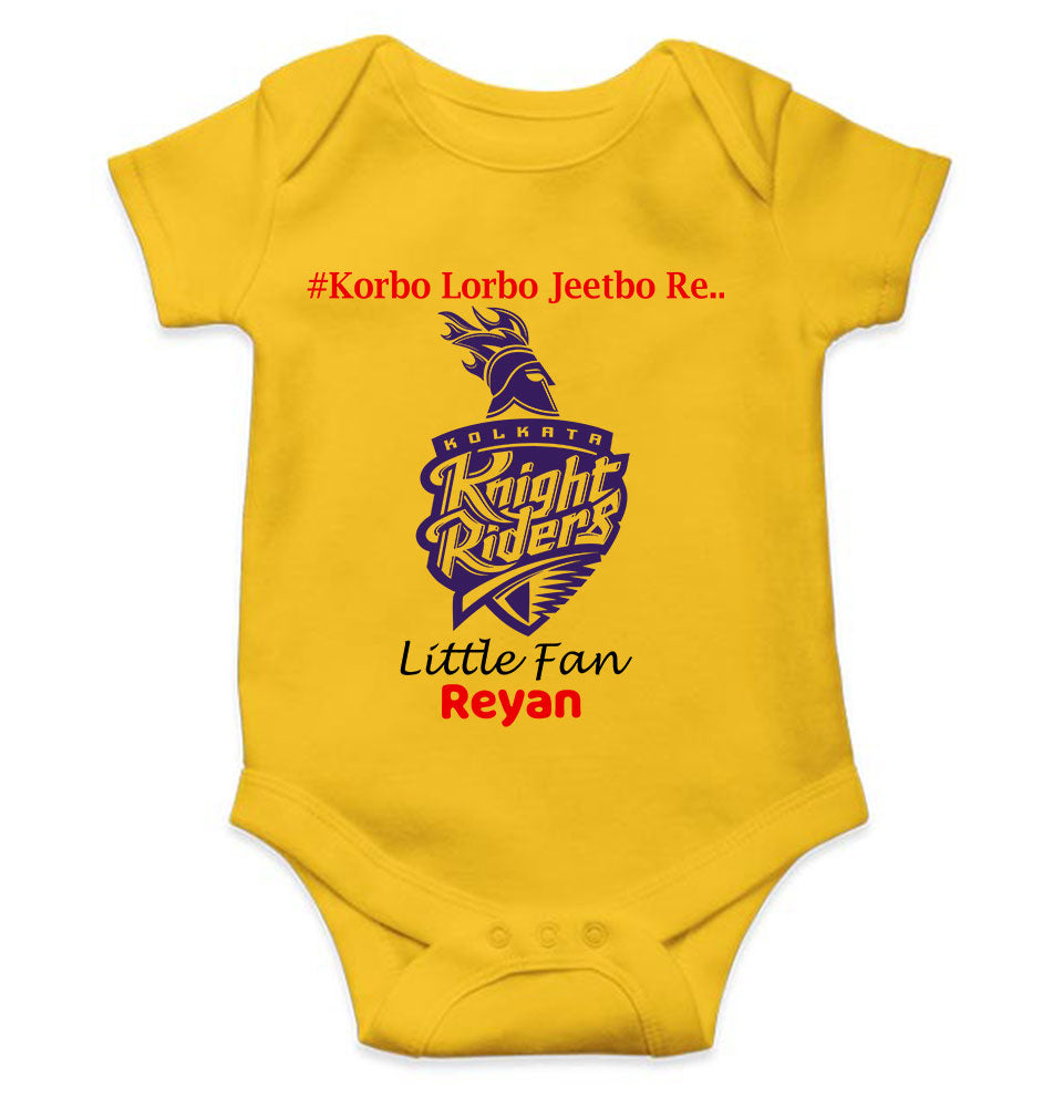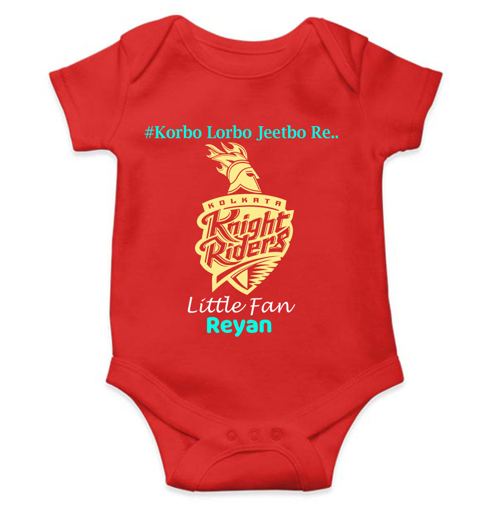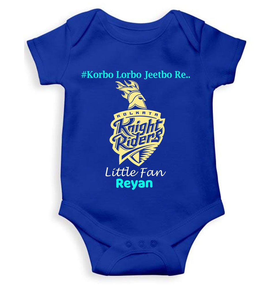 Custom Name IPL KKR Kolkata Knight Riders Korbo Lorbo Jeetbo Re Rompers for Baby Boy- FashionRazor