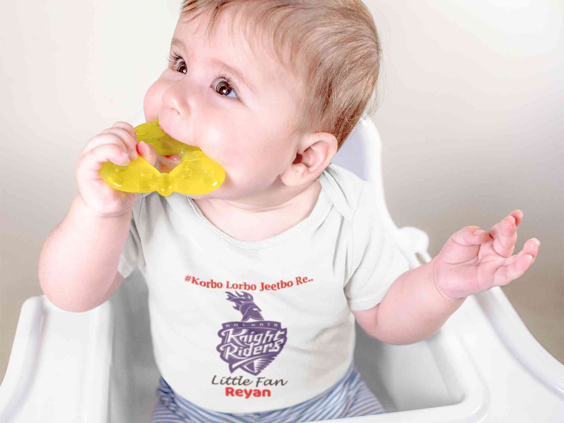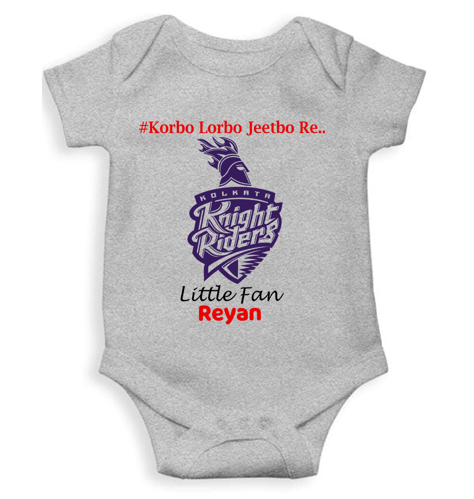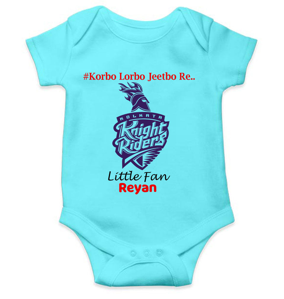 Custom Name IPL KKR Kolkata Knight Riders Korbo Lorbo Jeetbo Re Rompers for Baby Boy- FashionRazor