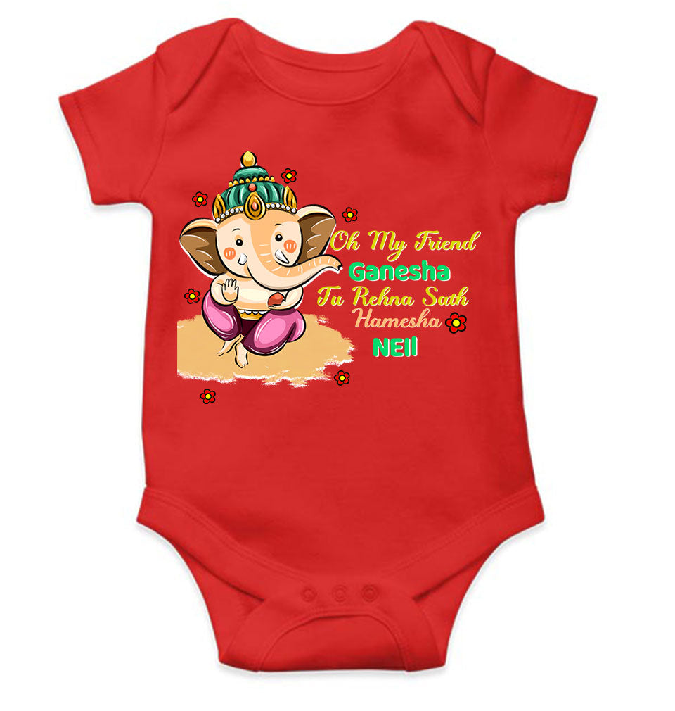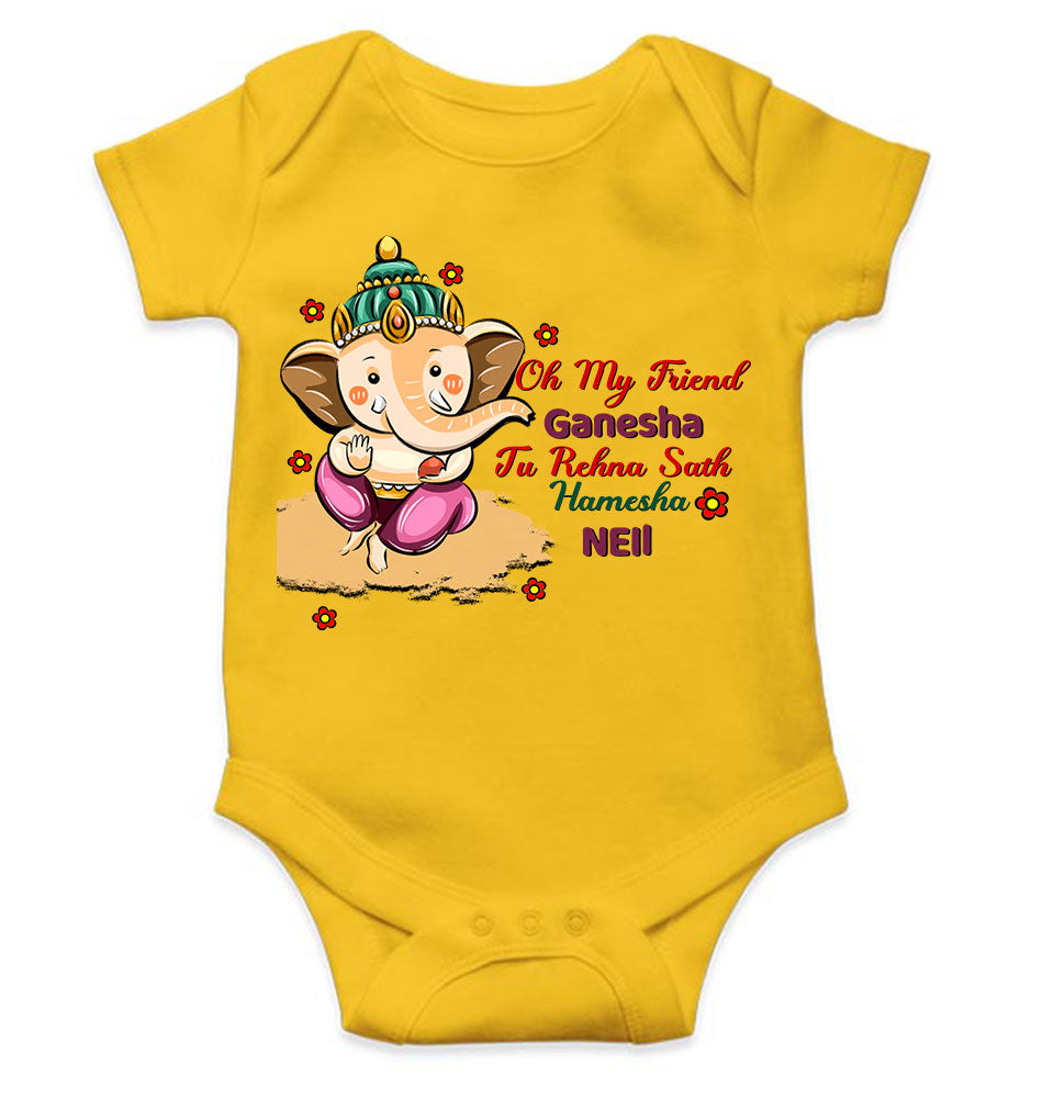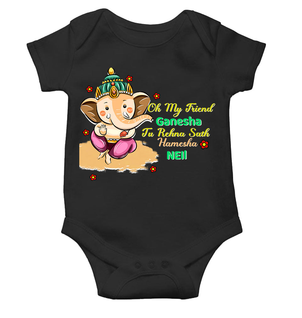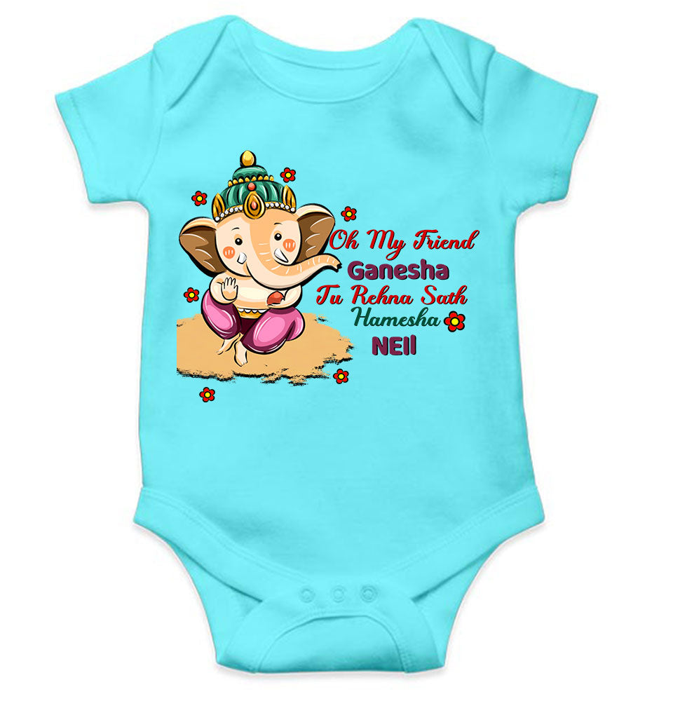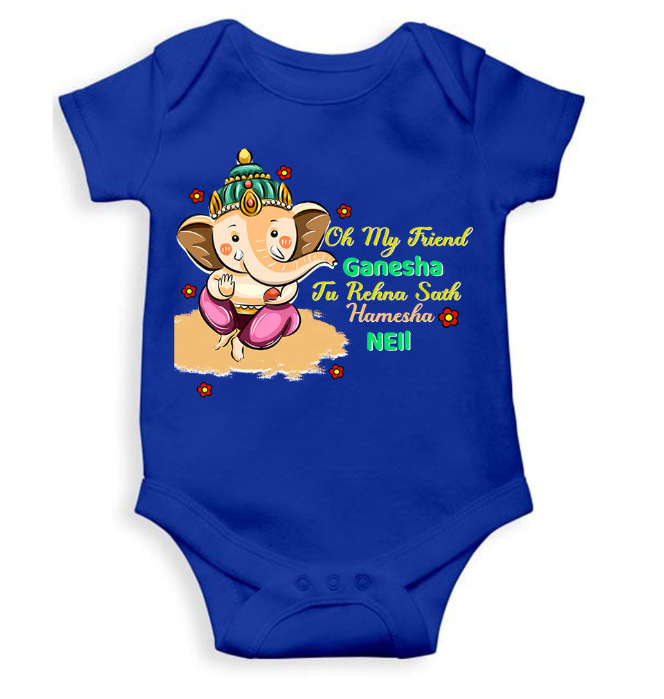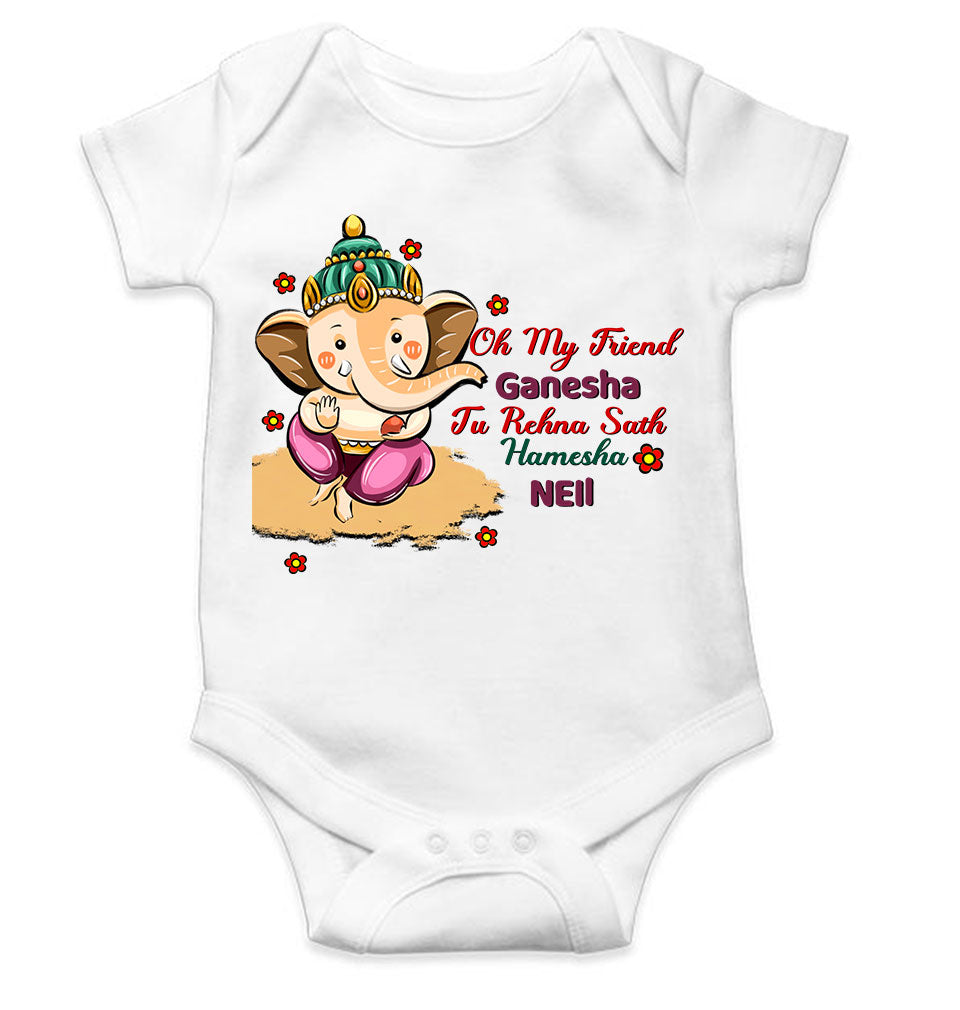 Custom Name Oh My Friend Ganesha Ganesh Chaturthi Rompers for Baby Boy- FashionRazor