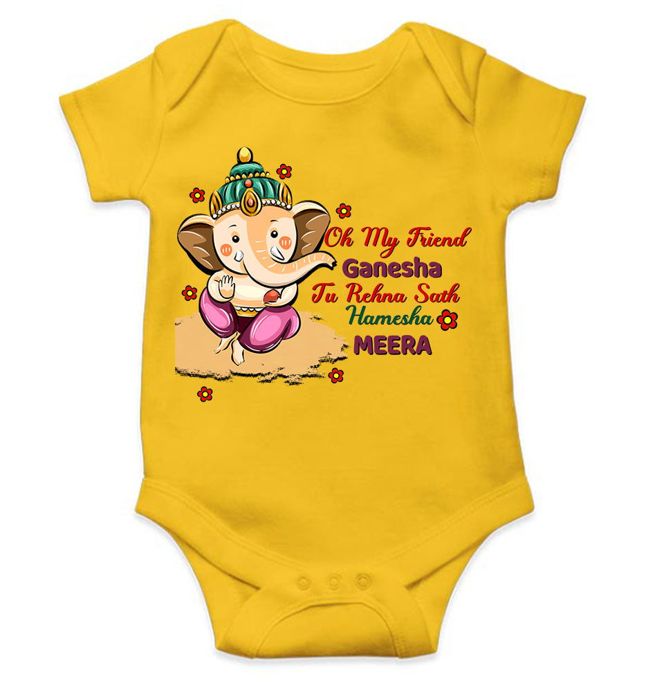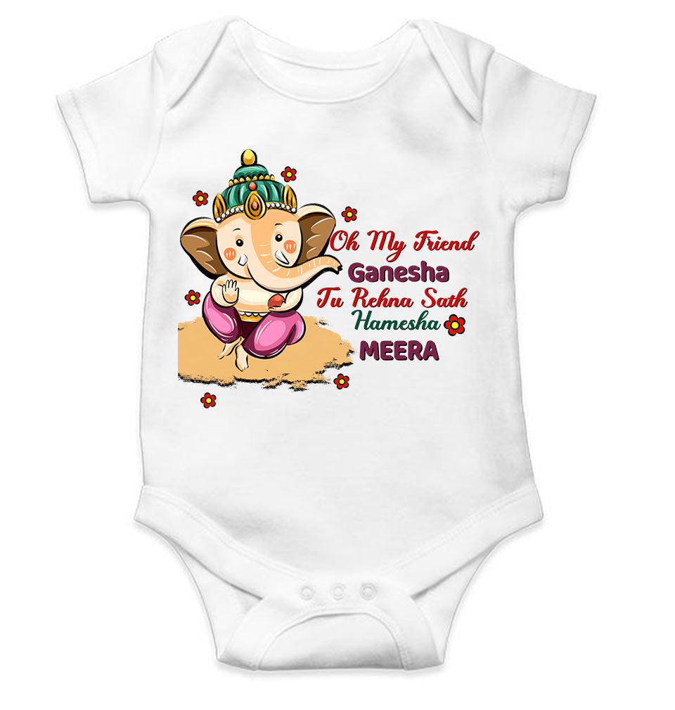 Custom Name Oh My Friend Ganesha Ganesh Chaturthi Rompers for Baby Girl- FashionRazor