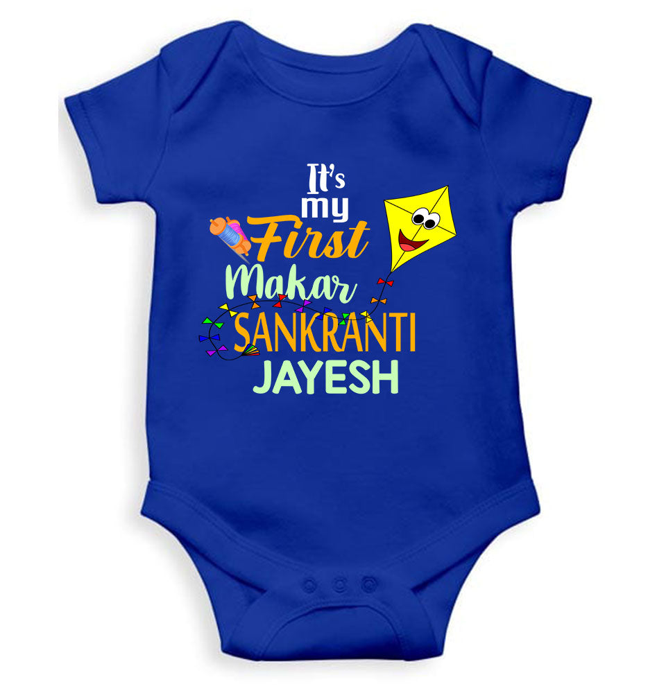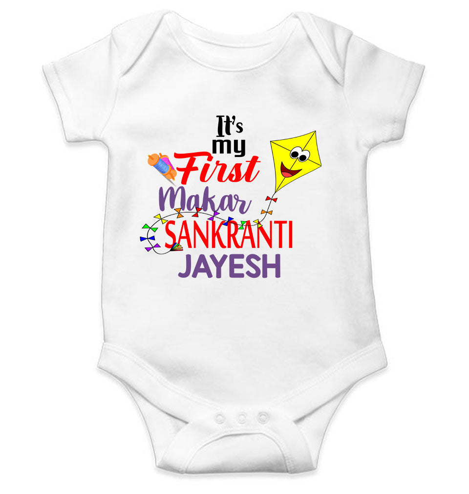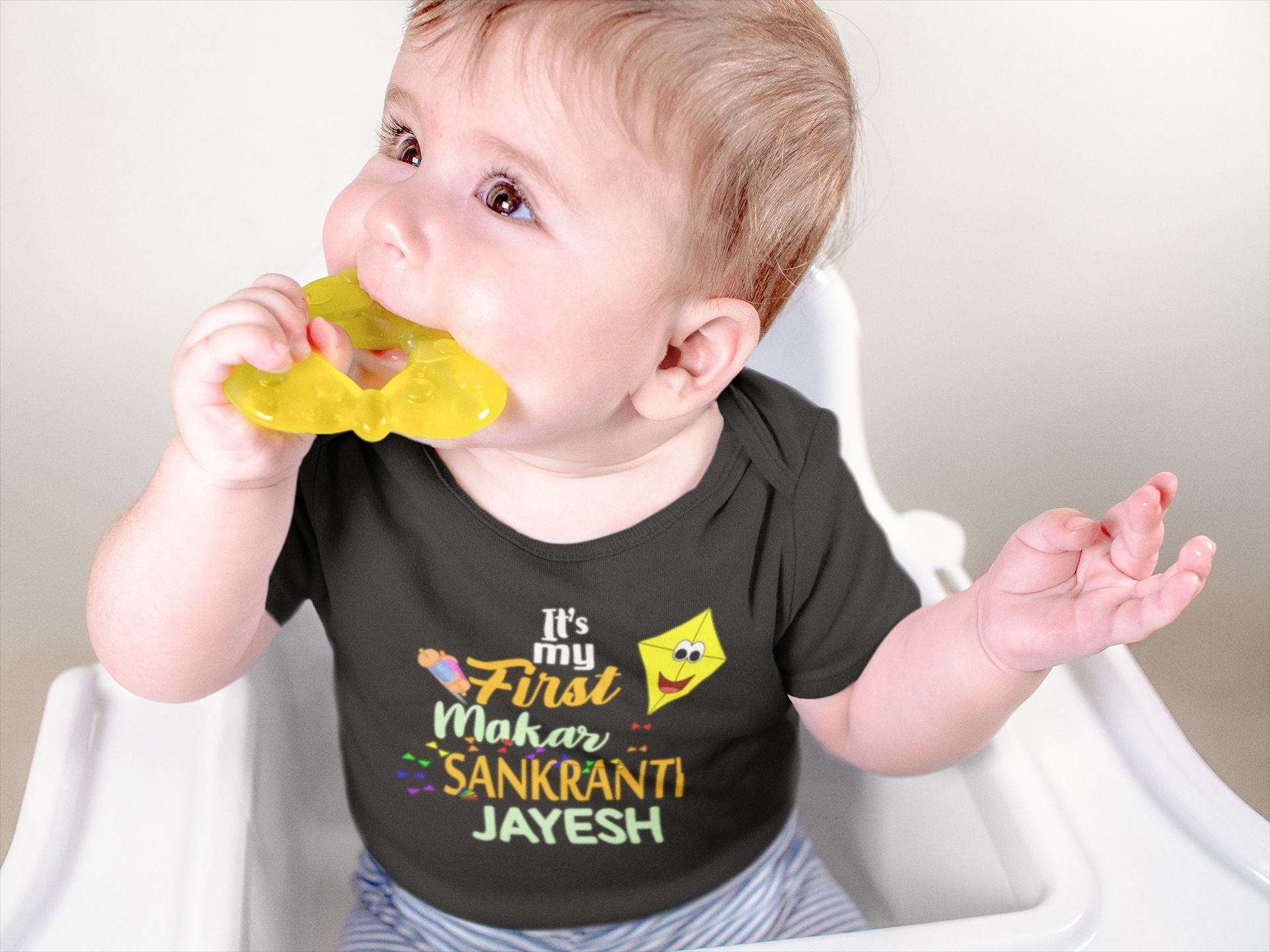 Its My First Makar Sankranti Custom Name Makar Sankranti Rompers for Baby Boy- FashionRazor