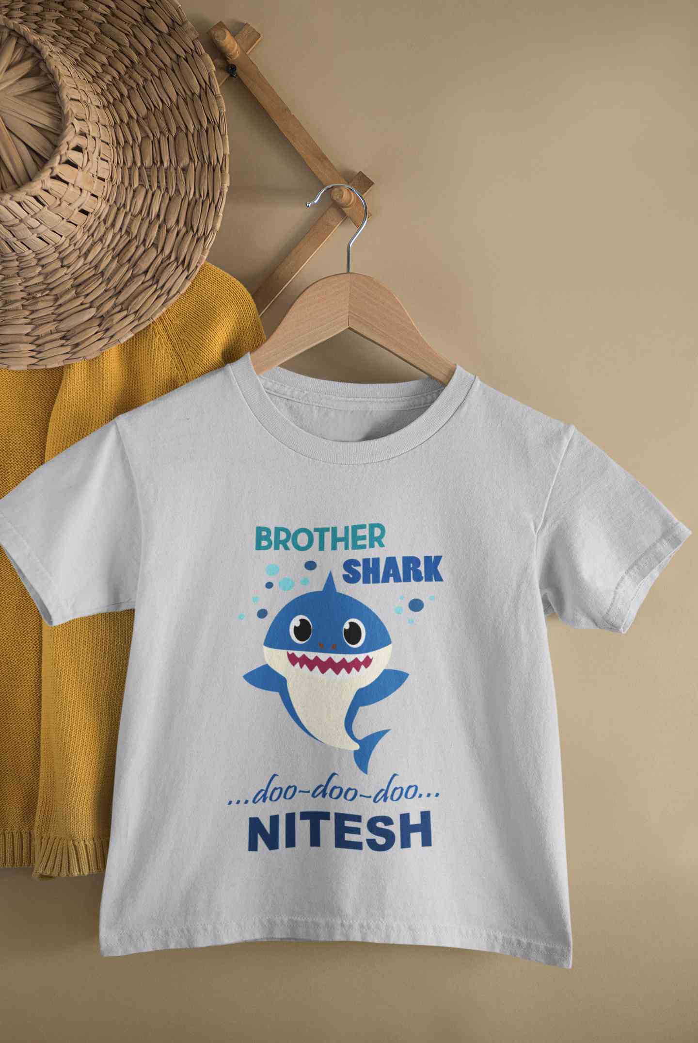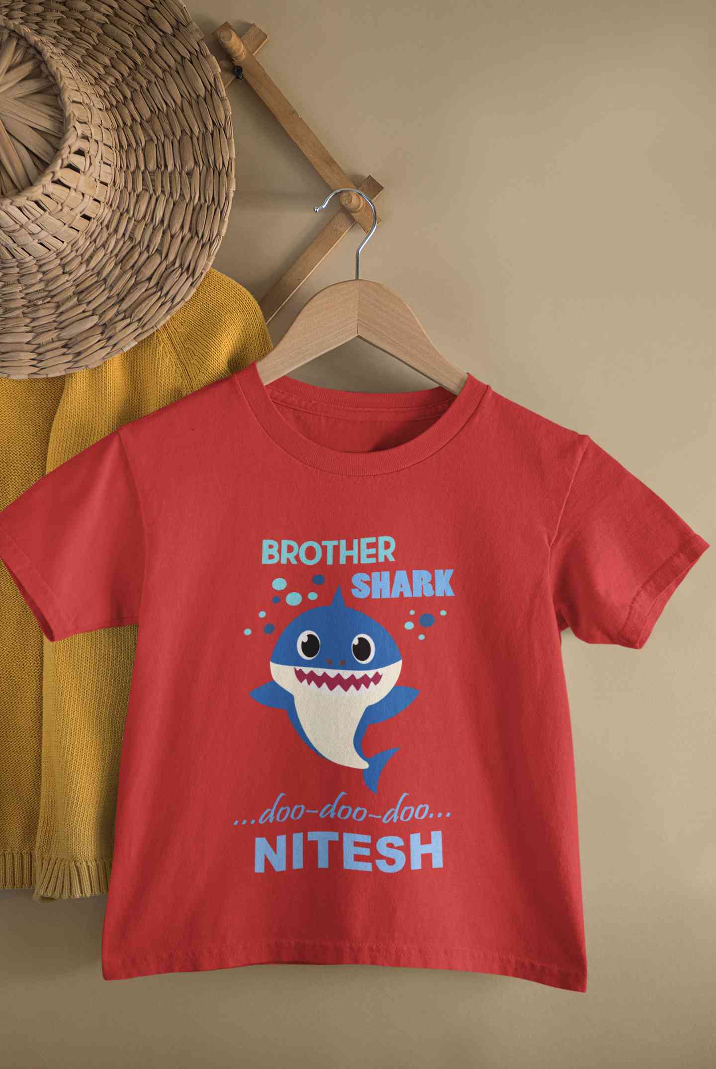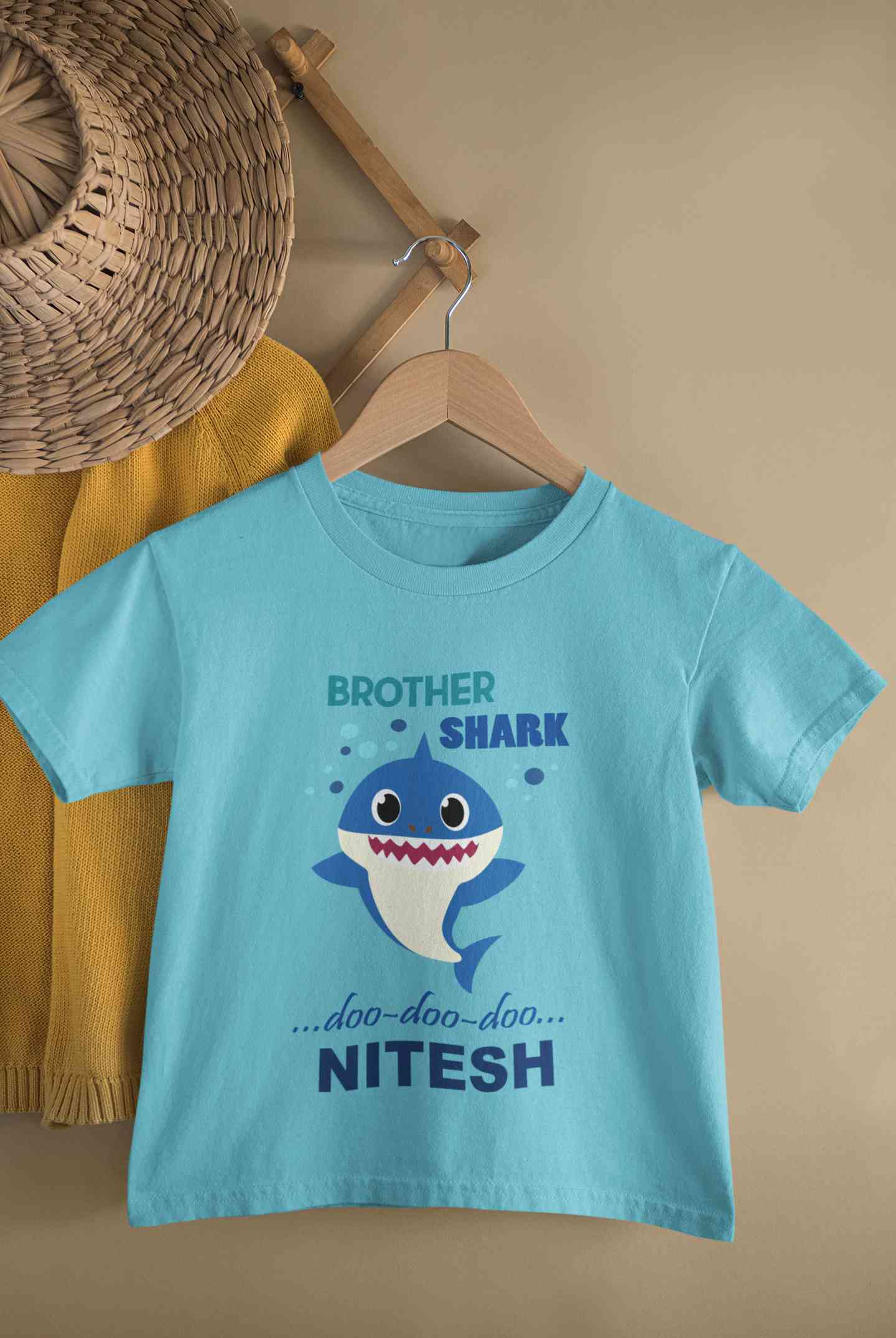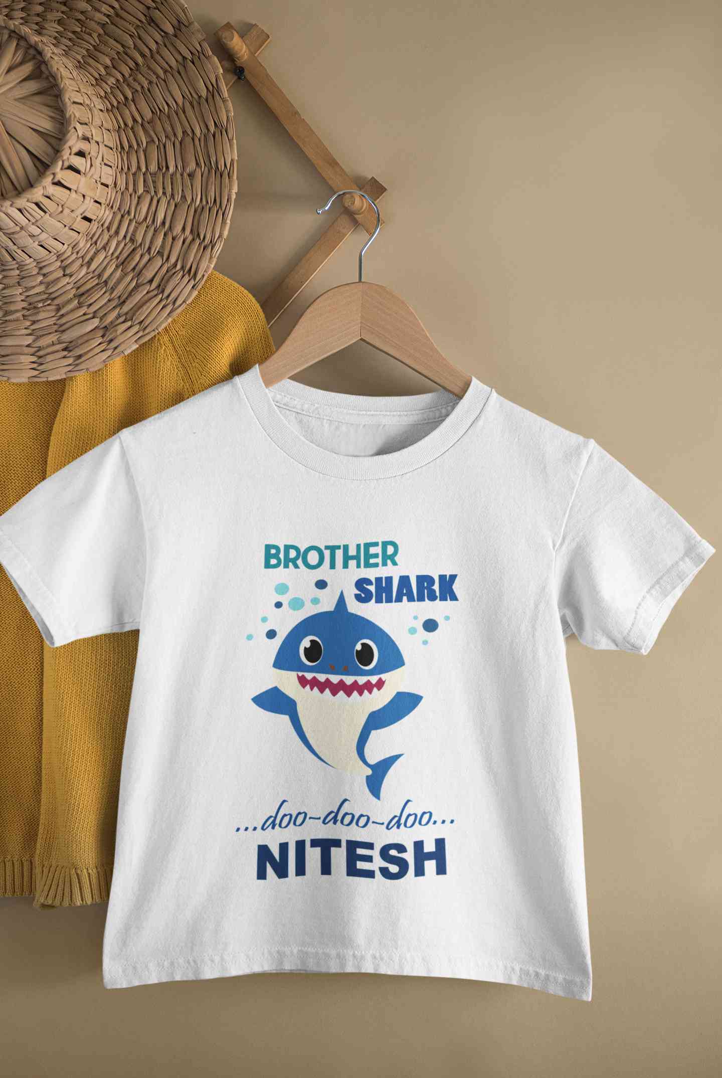 Buy Custom Name Brother Shark Doo Doo Doo Rakhi Half Sleeves T-Shirt for Boy-FashionRazor