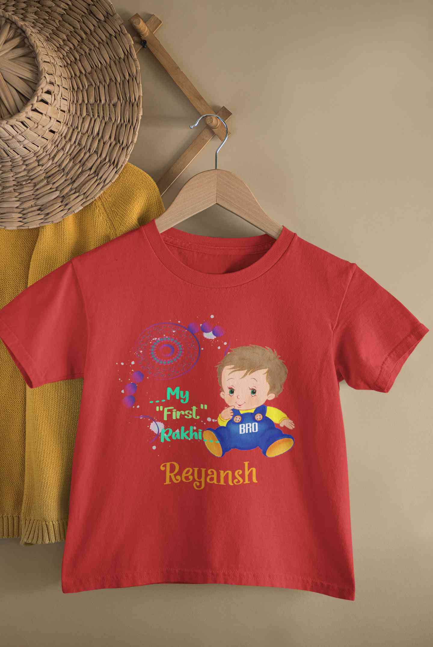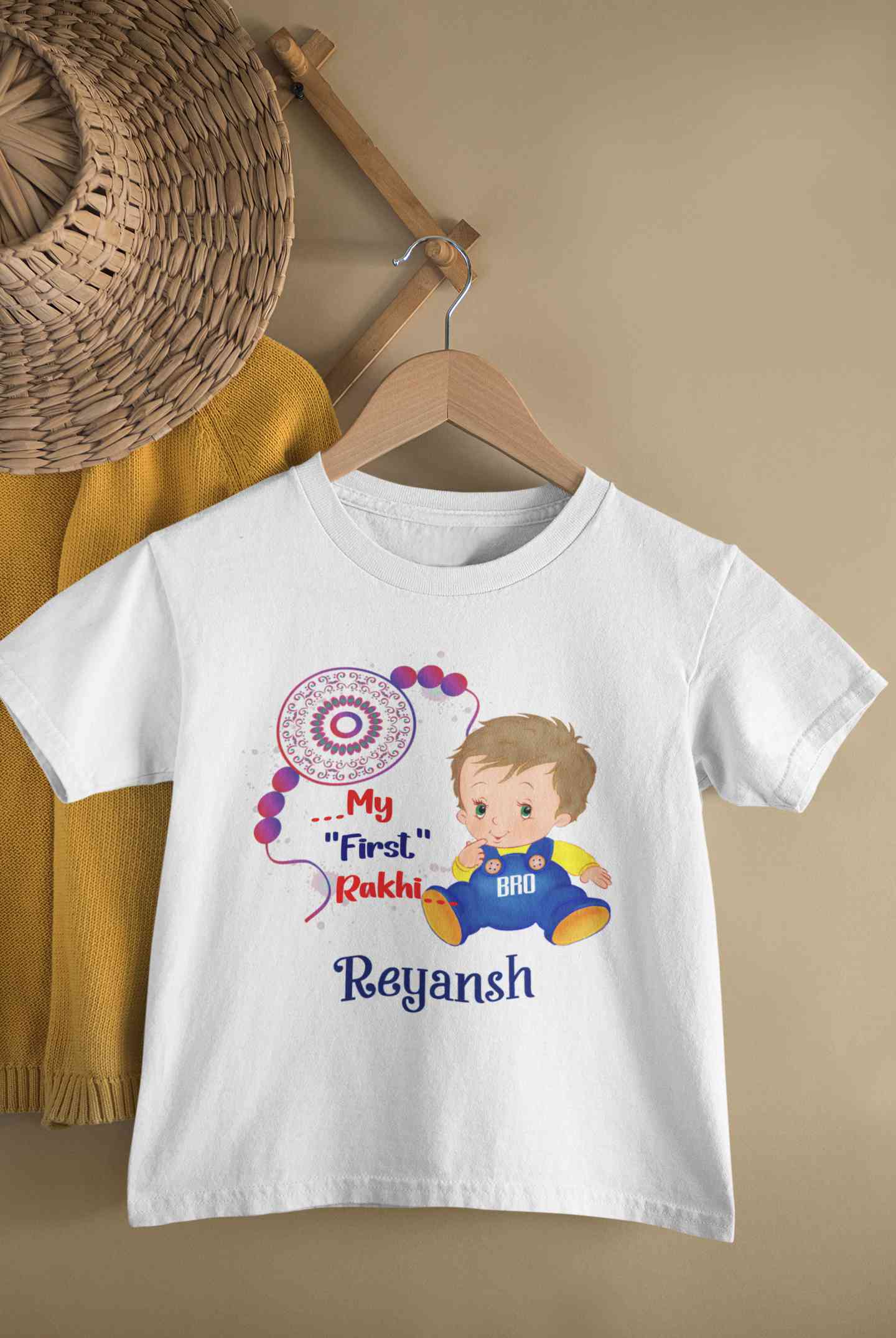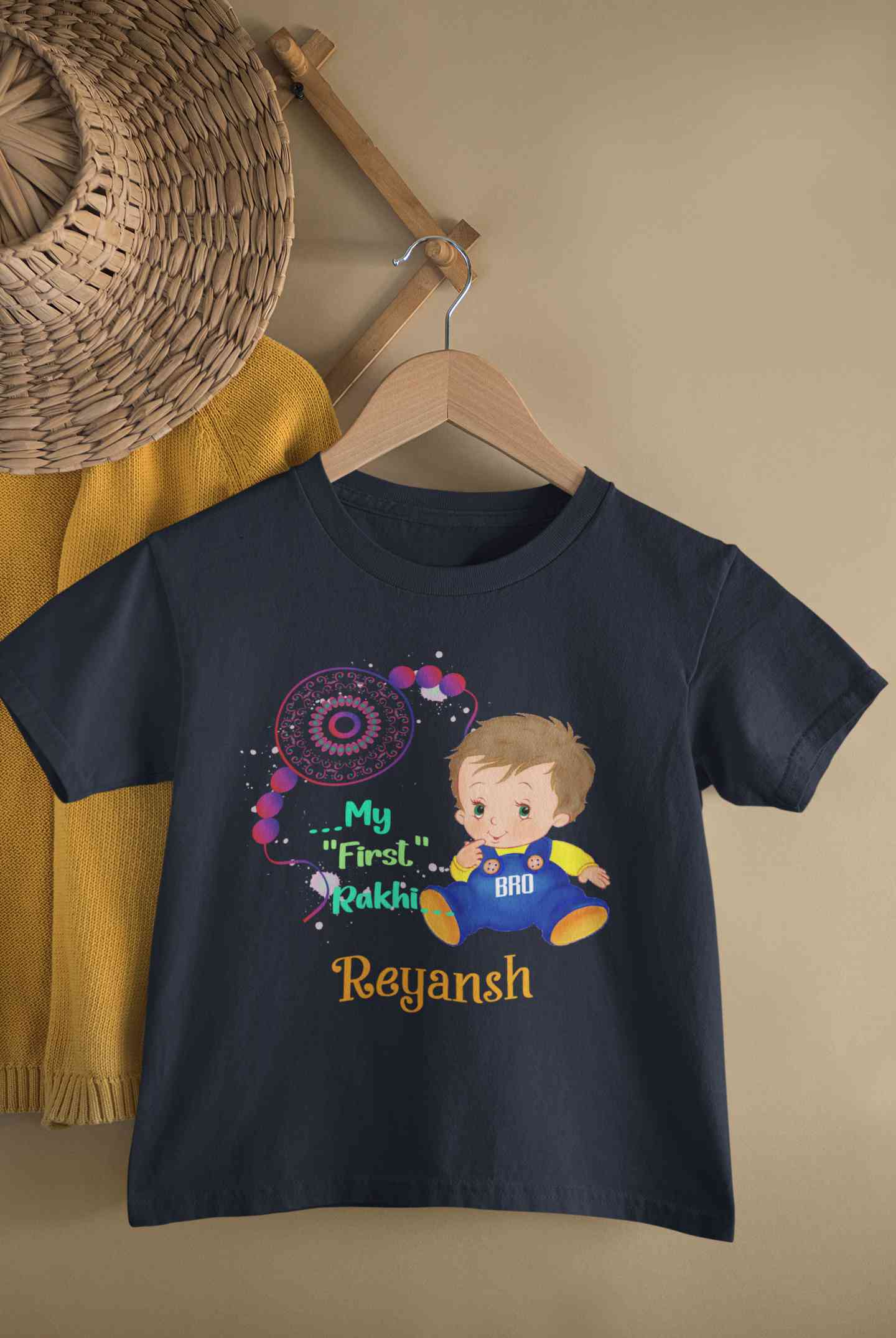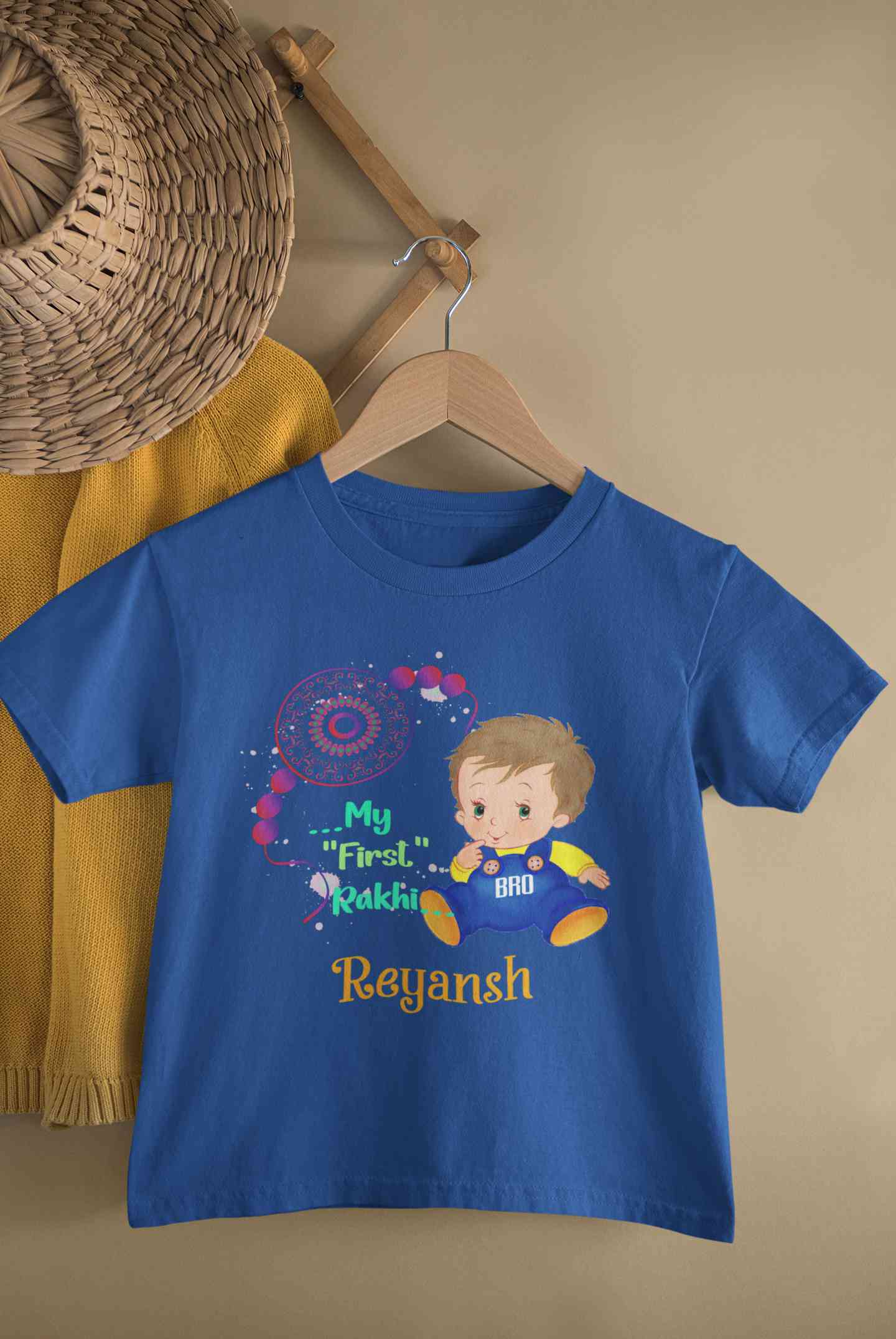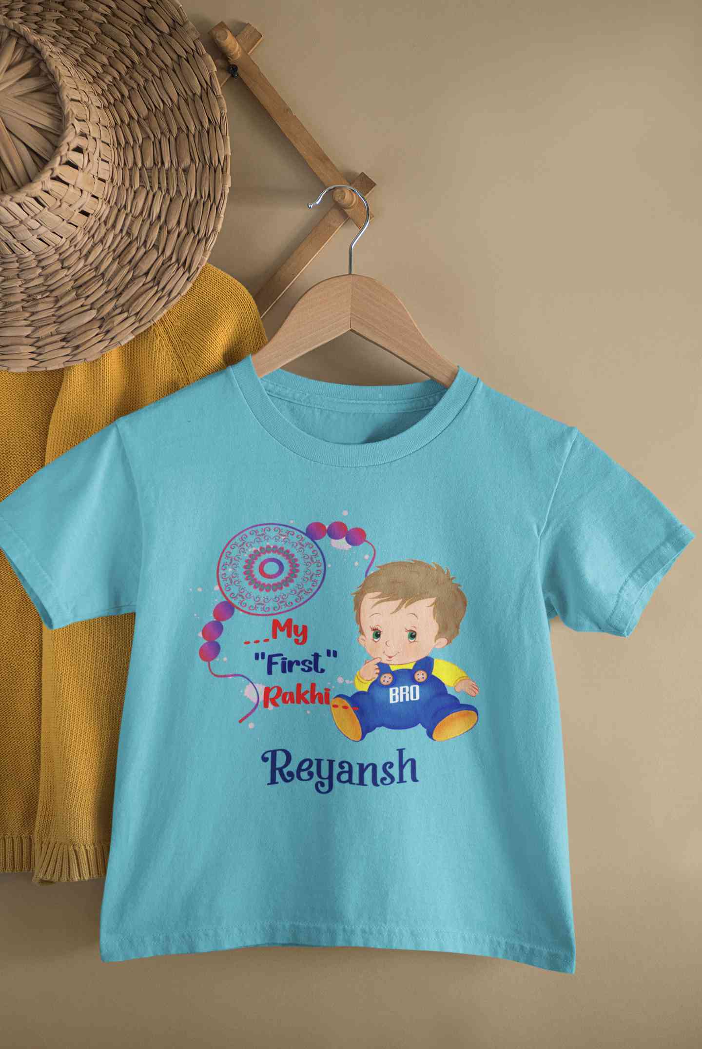 Buy Custom Name My First Rakhi Half Sleeves T-Shirt for Boy-FashionRazor