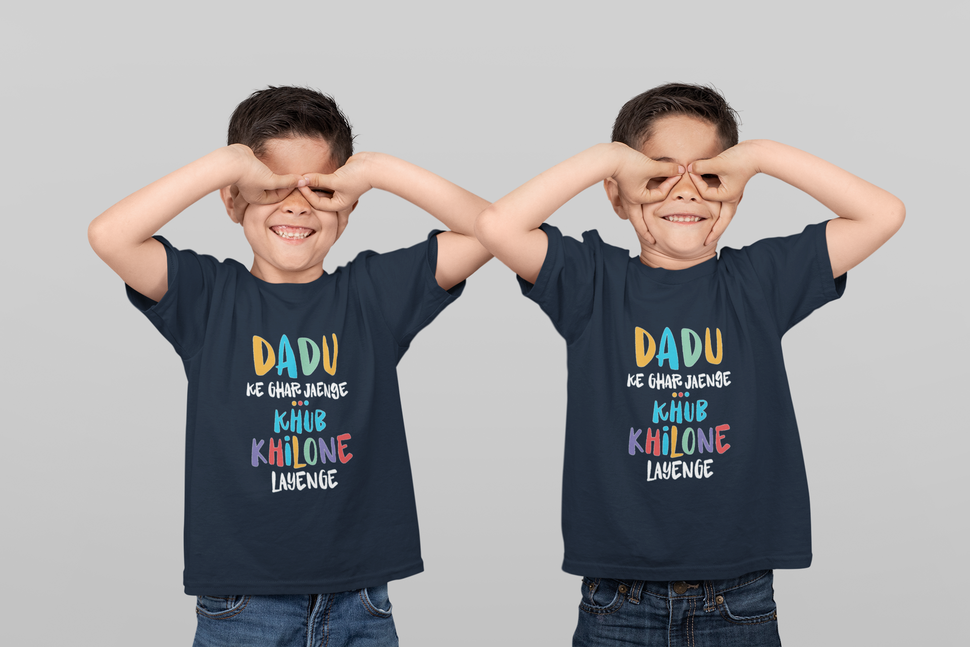 Dadu Ke Ghar Jayege Brother-Brother Kids Half Sleeves T-Shirts -FashionRazor