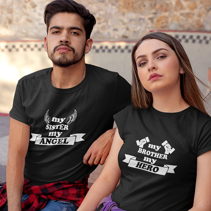 My Brother My Hero my Sister My Angel Brother-Sister Half Sleeves T-Shirts -FashionRazor