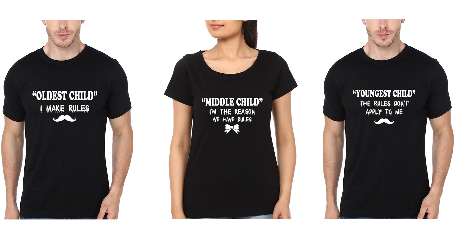 Oldest Middle Youngest Child Brother-Sister Half Sleeves T-Shirts -FashionRazor