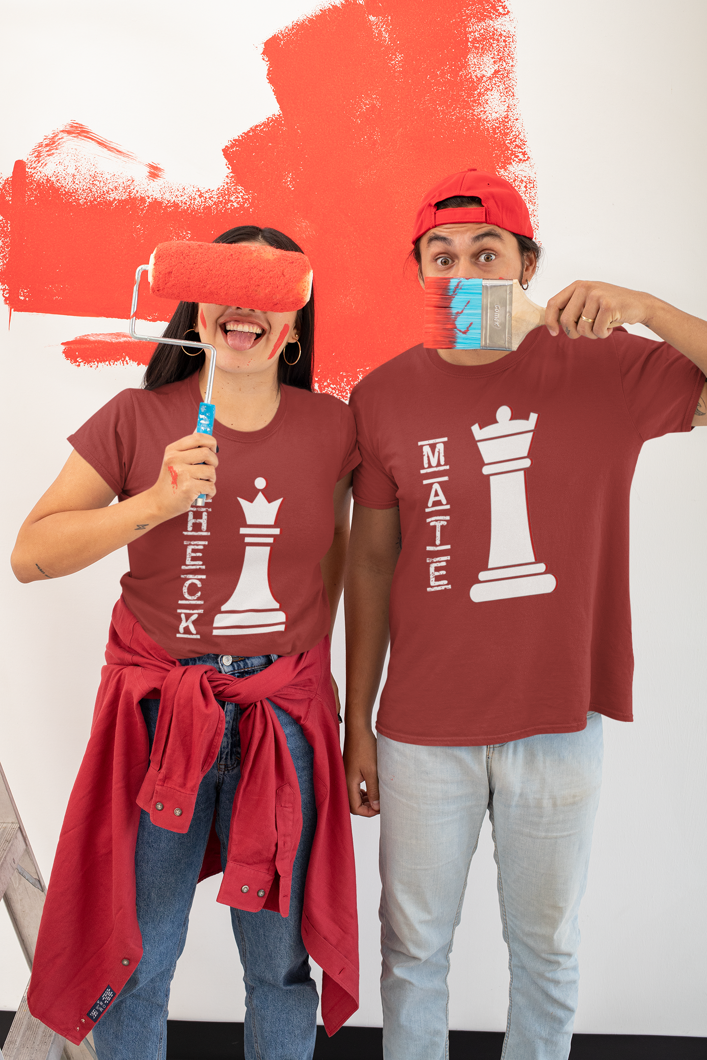 Check Mate Couple Half Sleeves T-Shirts -FashionRazor