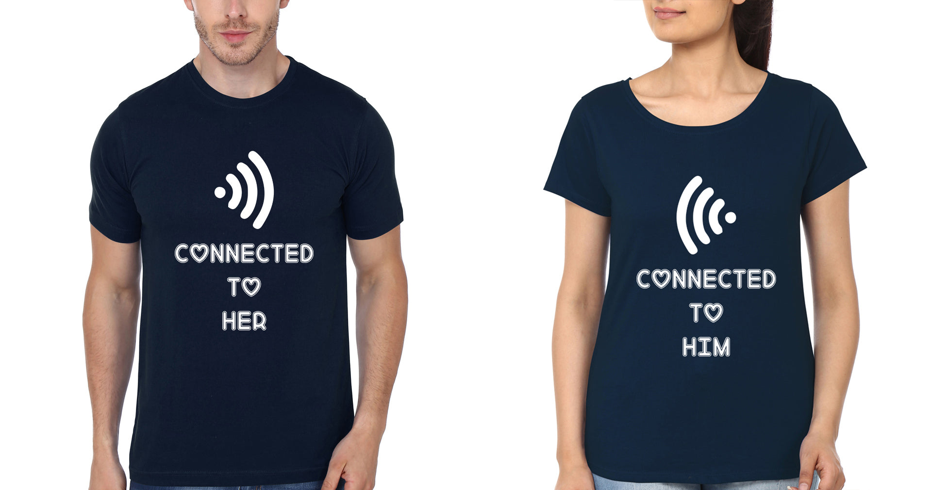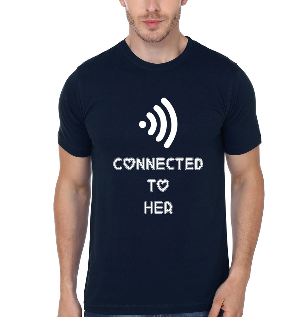 Connected To Her Him Couple Half Sleeves T-Shirts -FashionRazor