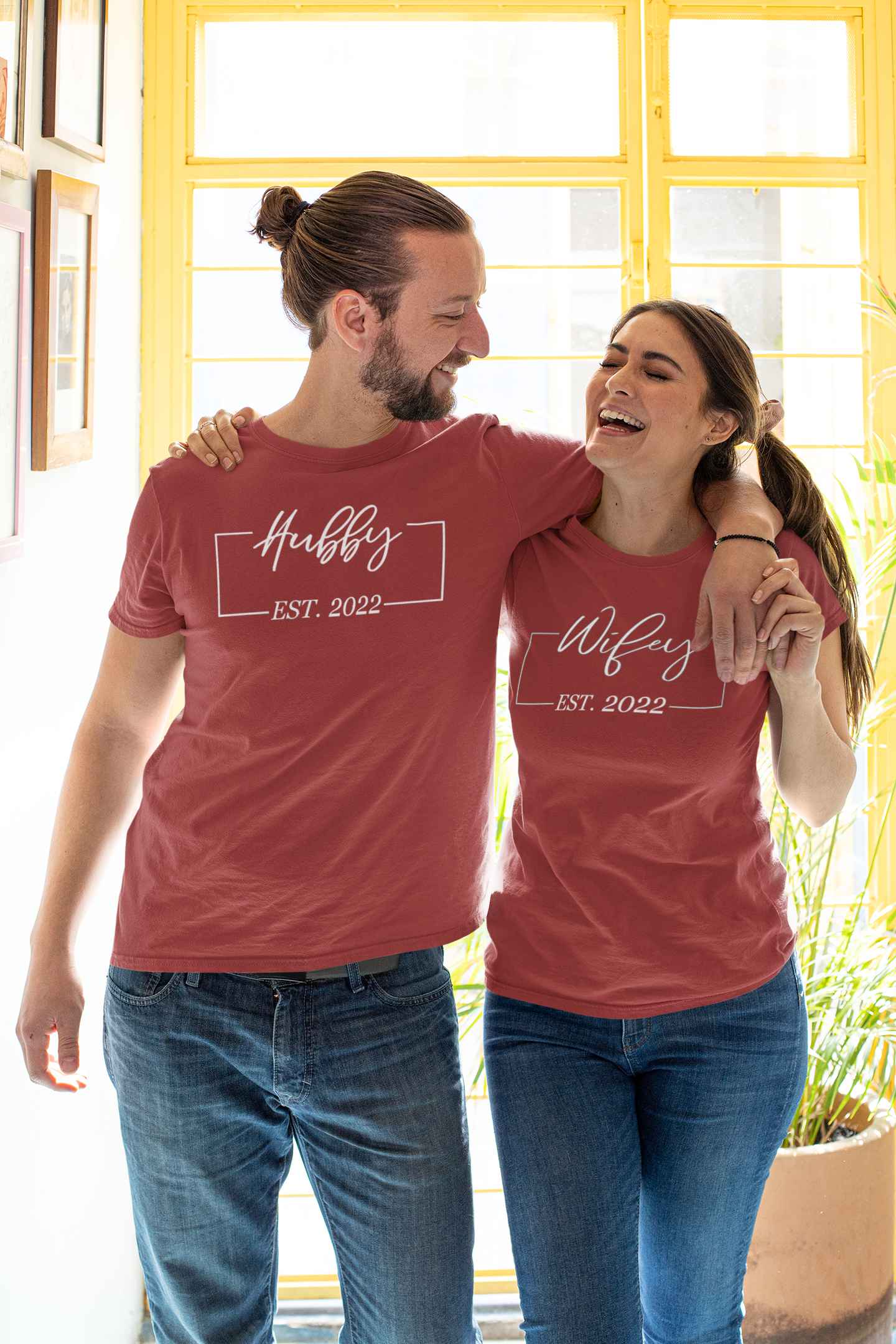 Custom Date Hubby Wife Pre Wedding Photoshoot Half Sleeves T-Shirts -FashionRazor