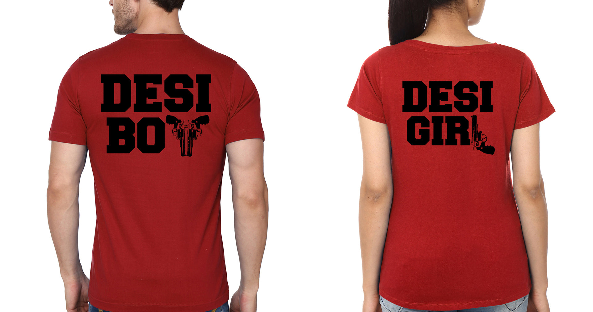 Desi Boy & Desi Girl Couple Half Sleeves T-Shirts -FashionRazor
