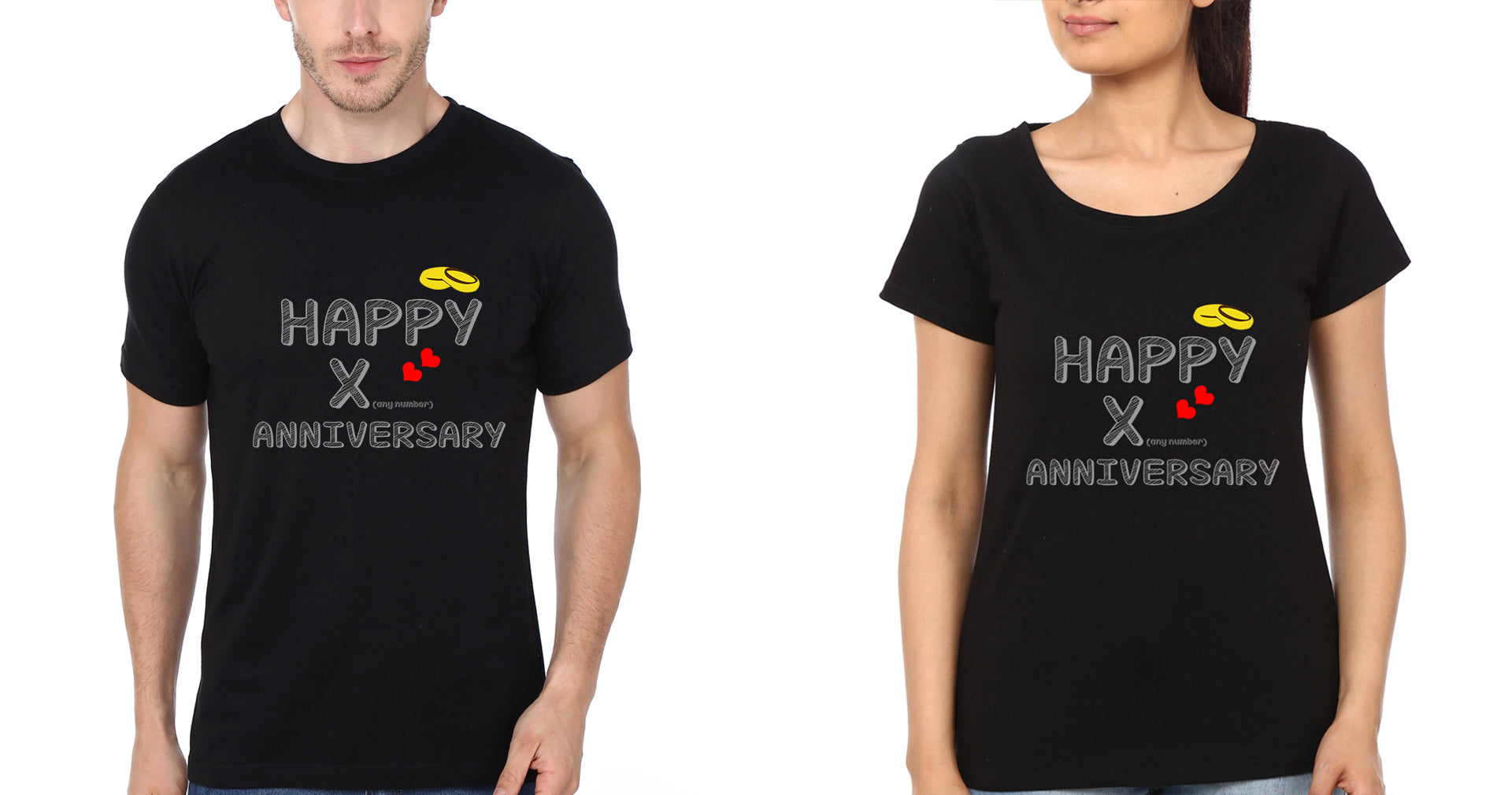 Happy Anniversary Couple Half Sleeves T-Shirts -FashionRazor