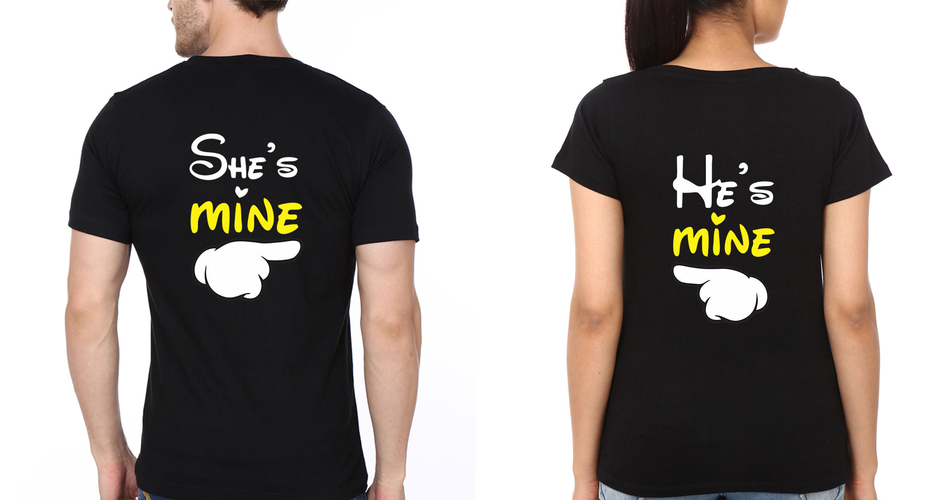 He is Mine and She is Mine Couple Half Sleeves T-Shirts -FashionRazor