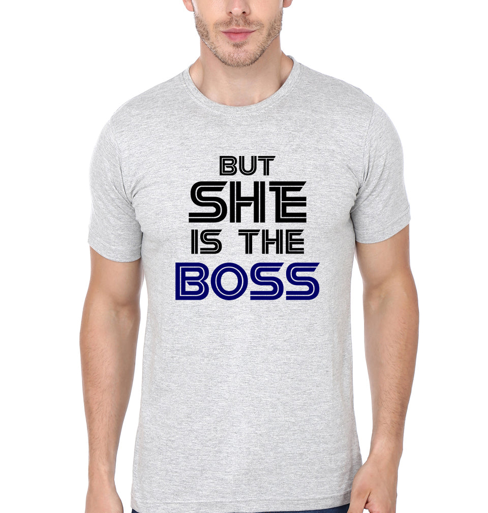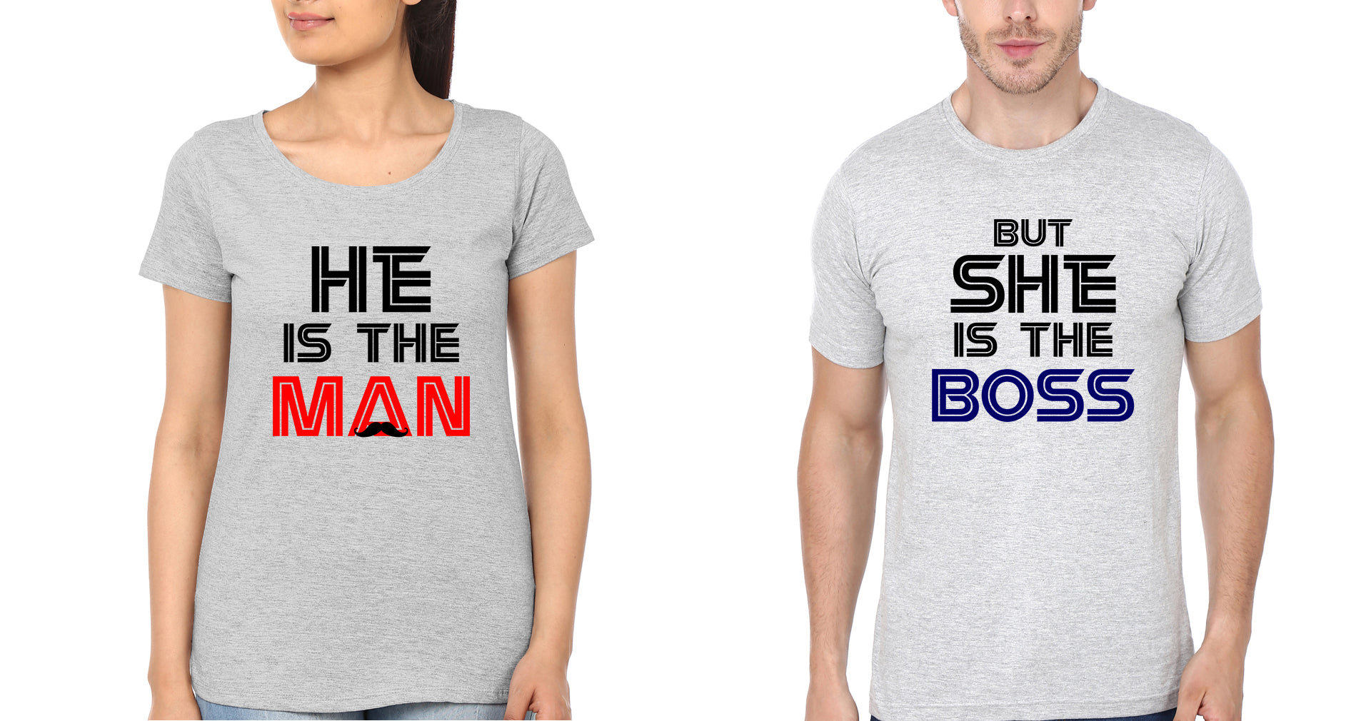 He Is The Man But She Is The Boss Couple Half Sleeves T-Shirts -FashionRazor