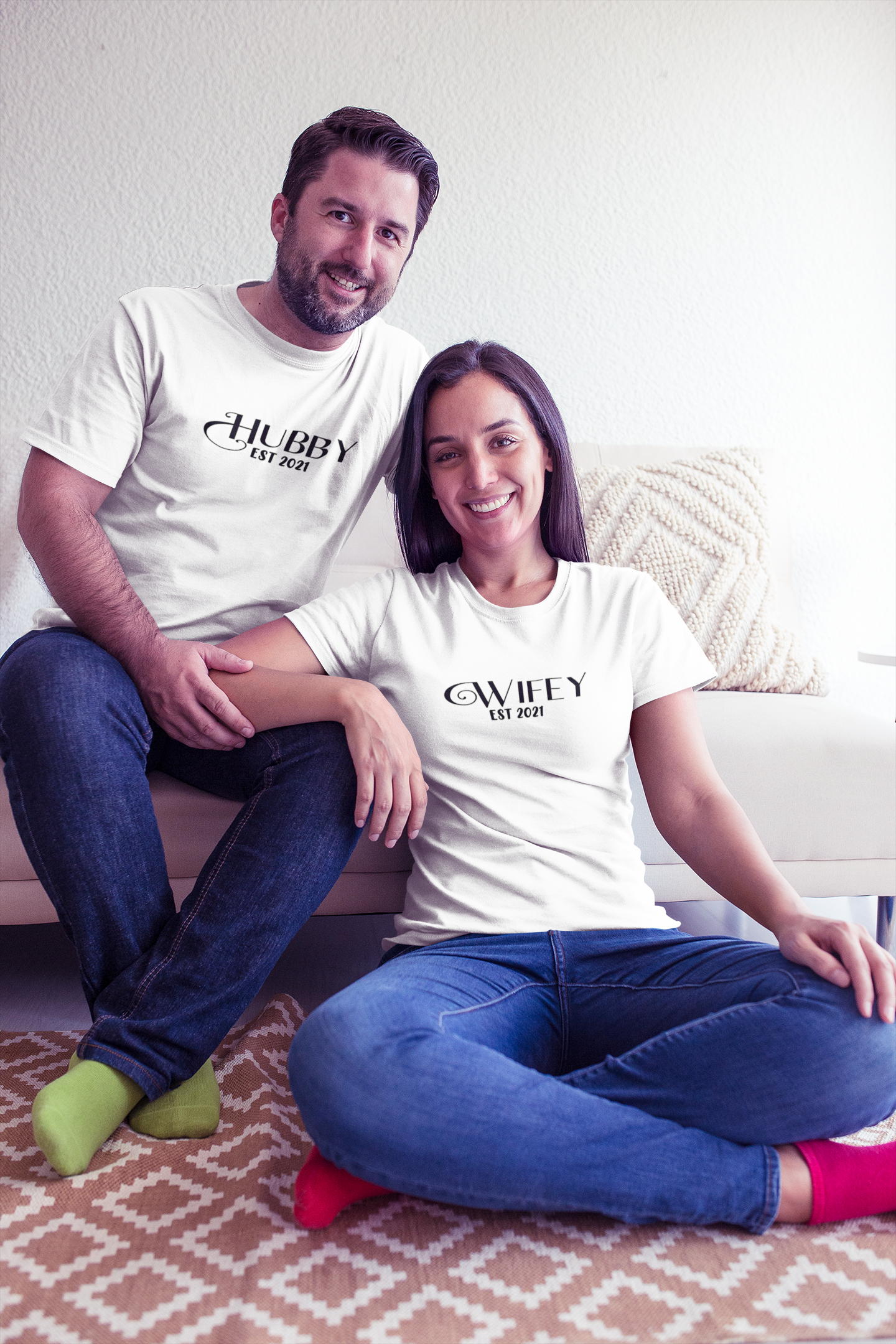 Hubby Wifey Est 2021 Couple Half Sleeves T-Shirts -FashionRazor
